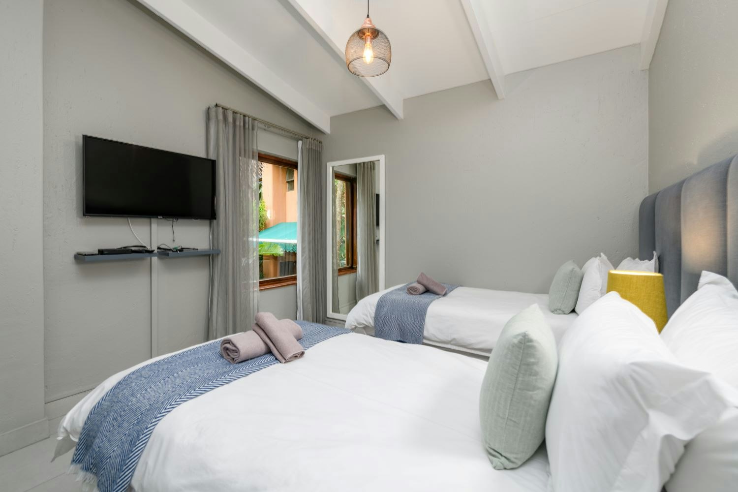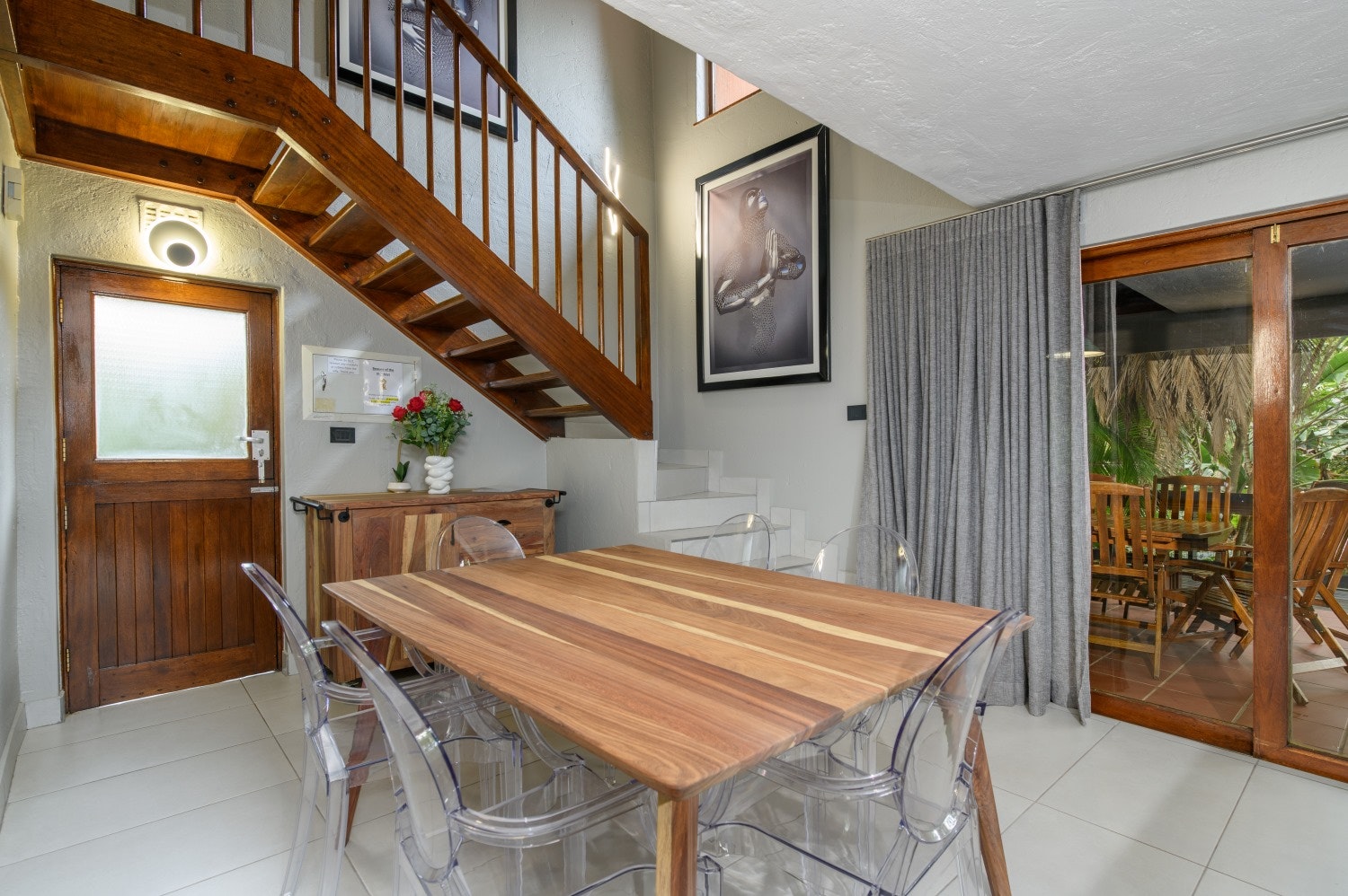 The kitchen is fully equipped for self-catering and contains a stove, an oven, a fridge-freezer, a microwave, cutlery and crockery, as well as tea- and coffee-making facilities. The multi-storey villa also has a dishwasher, a washing machine, and a tumble-dryer. The dining area has seating for 6 people, while the lounge has a comfy lounge suite and a TV with selected DStv channels.
