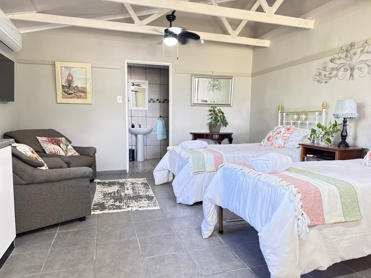 Sanctuary Guesthouse is a charming self-catering cottage located on a picturesque farm just outside Kimberley, offering a peaceful and comfortable retreat for families and friends seeking a tranquil countryside escape.