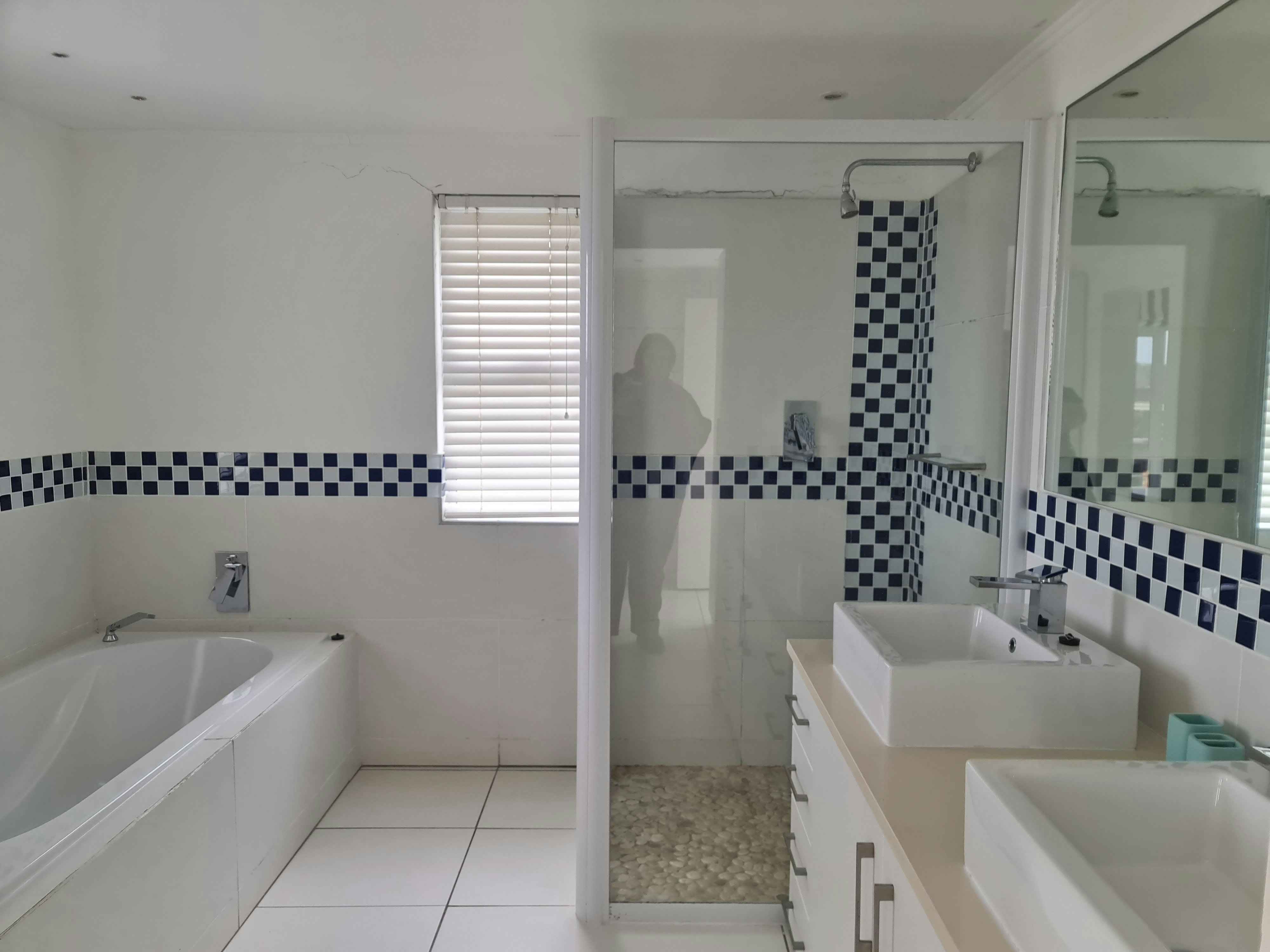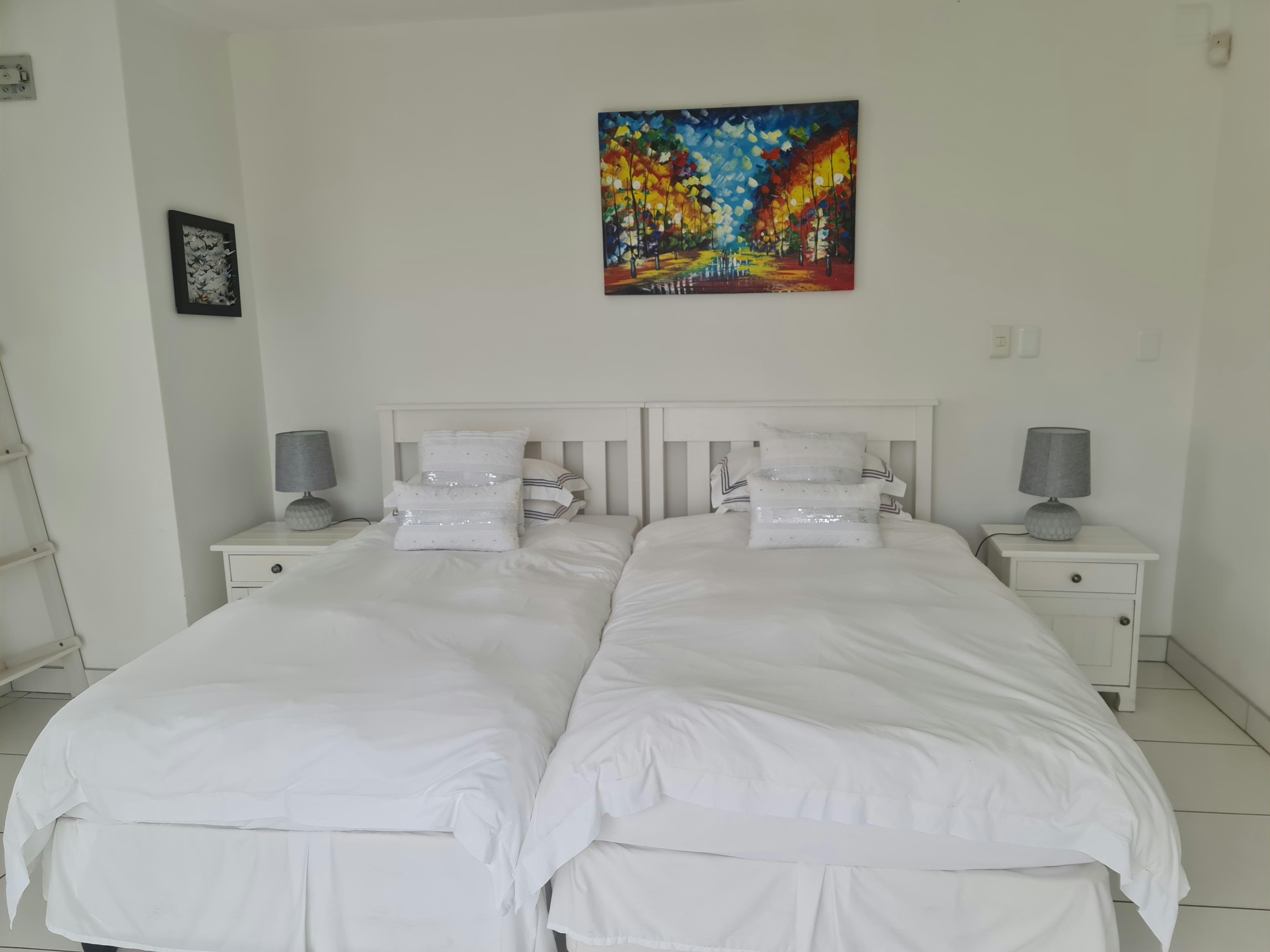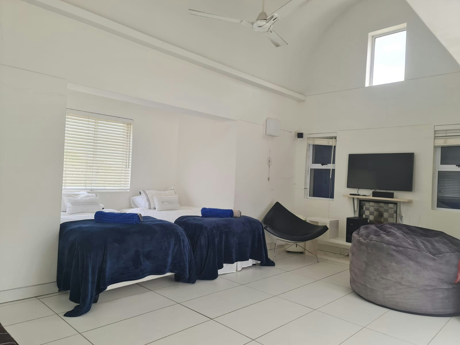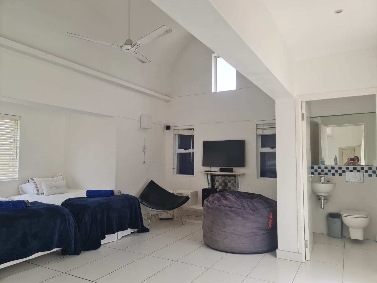 The Oceanview Two Bedroom Upstairs is an option to only book half of the 4 bedroom house. The first room has an ocean view and comprises a double bed and an en-suite bathroom fitted with a shower, toilet and washbasin. The second room has an ocean view and comprises 2 single beds. There is a TV, a bathroom fitted with a toilet, an open plan lounge with a child-only bed and a kitchen area with a dishwasher, gas stove top and microwave. There is also an undercover braai area with a dining table and seating for 8 guests. Free Wi-Fi is subject to signal.