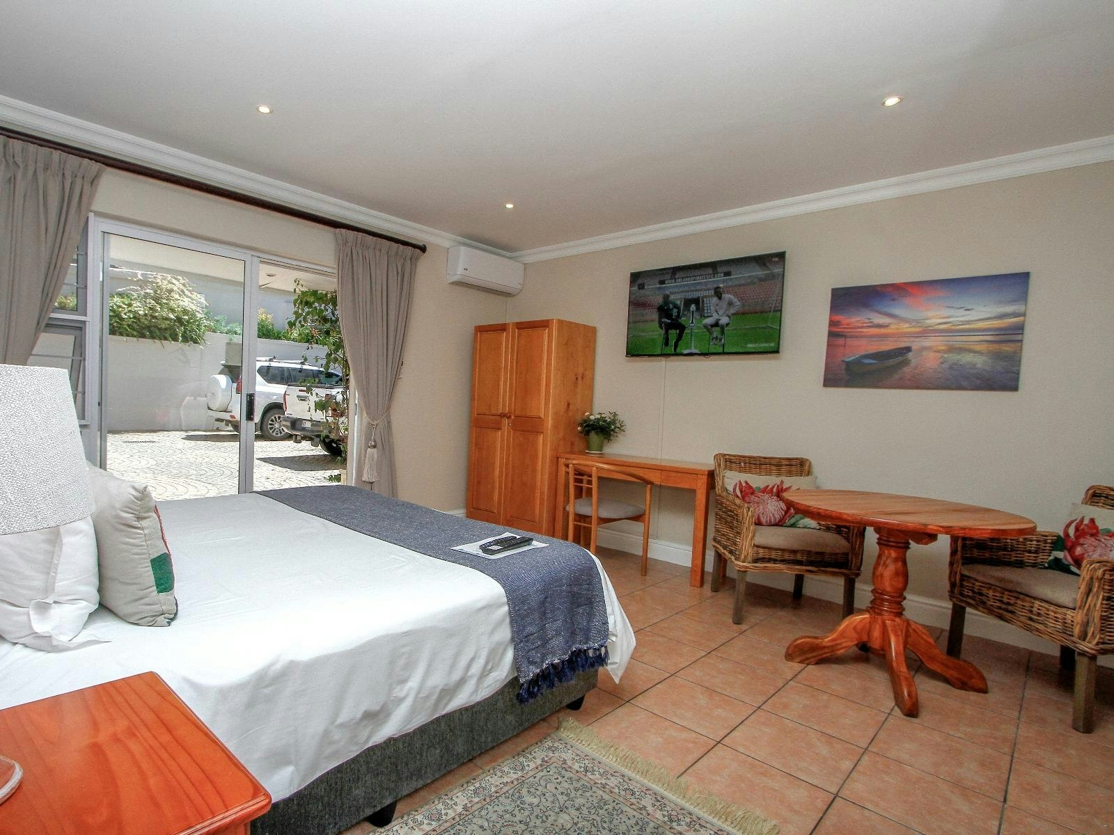 Additional features include a spacious dining room and patio, where guests are treated to a hearty South African breakfast, including a variety of hot options, fruit salad, muffins or croissants, fruit juices, cereals, teas, and Nespresso, fresh filter coffee. The property also boasts a lush garden with a braai area, an inviting swimming pool, and one secure off-street parking bay per room.
