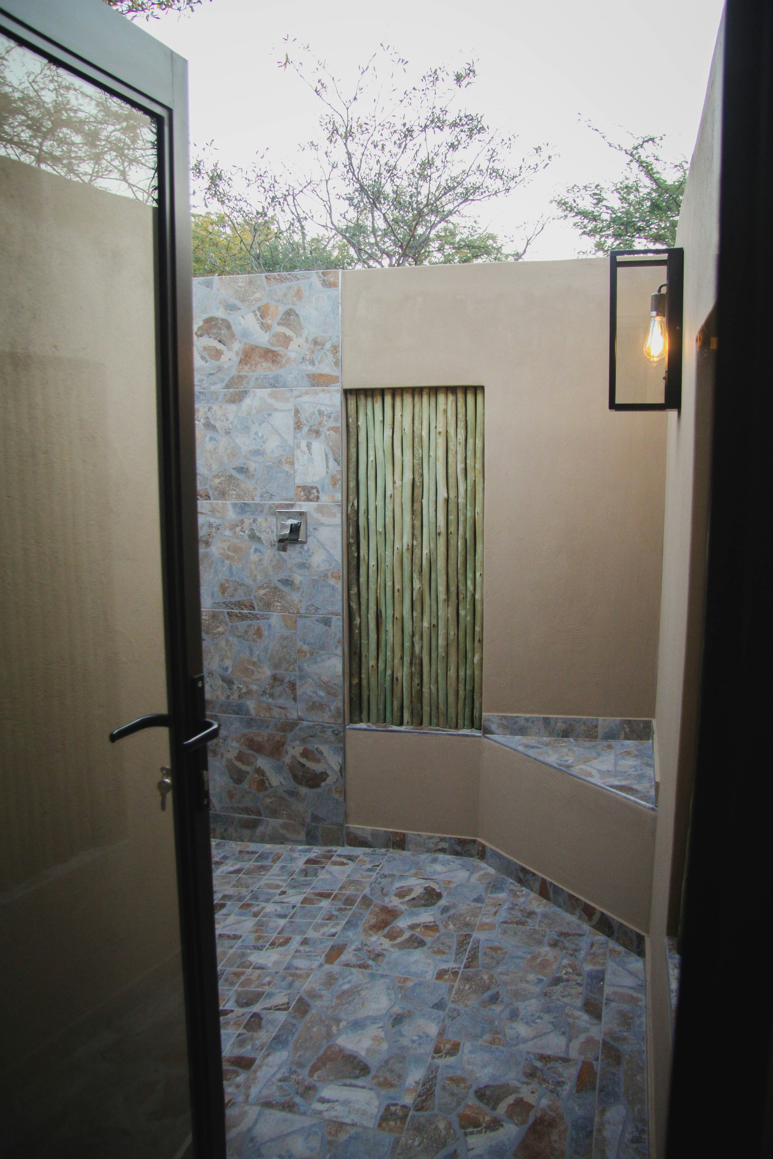 Gaste kan 'n swem in die swembad geniet of ontspan met 'n buitestort wat 'n nouer verbintenis met die natuur bied.