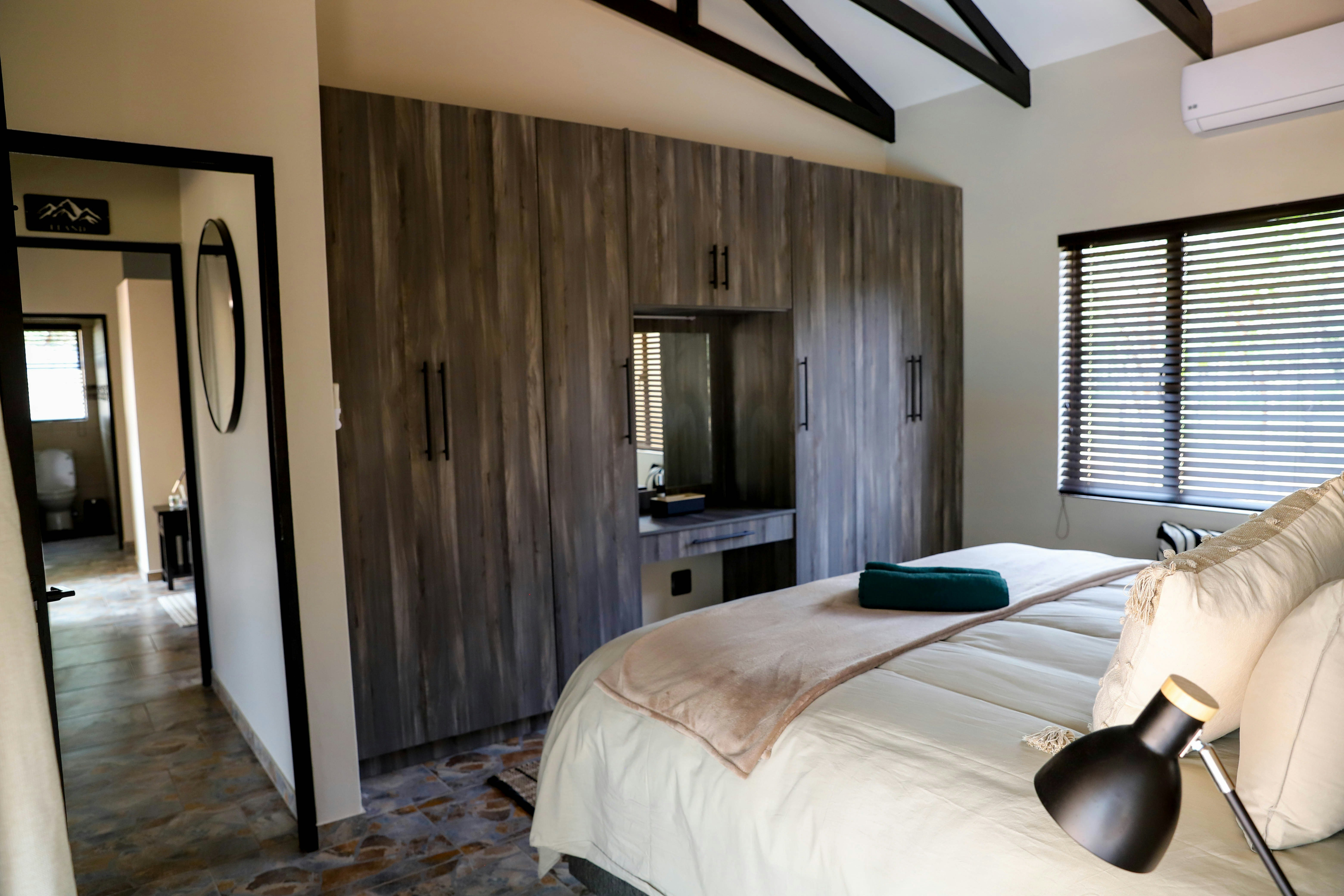 Elke chalet bestaan uit 2 elegante slaapkamers, elk gemeubileer met 'n koninggrootte-bed en 'n en suite-badkamer met 'n bad, stort en toilet.