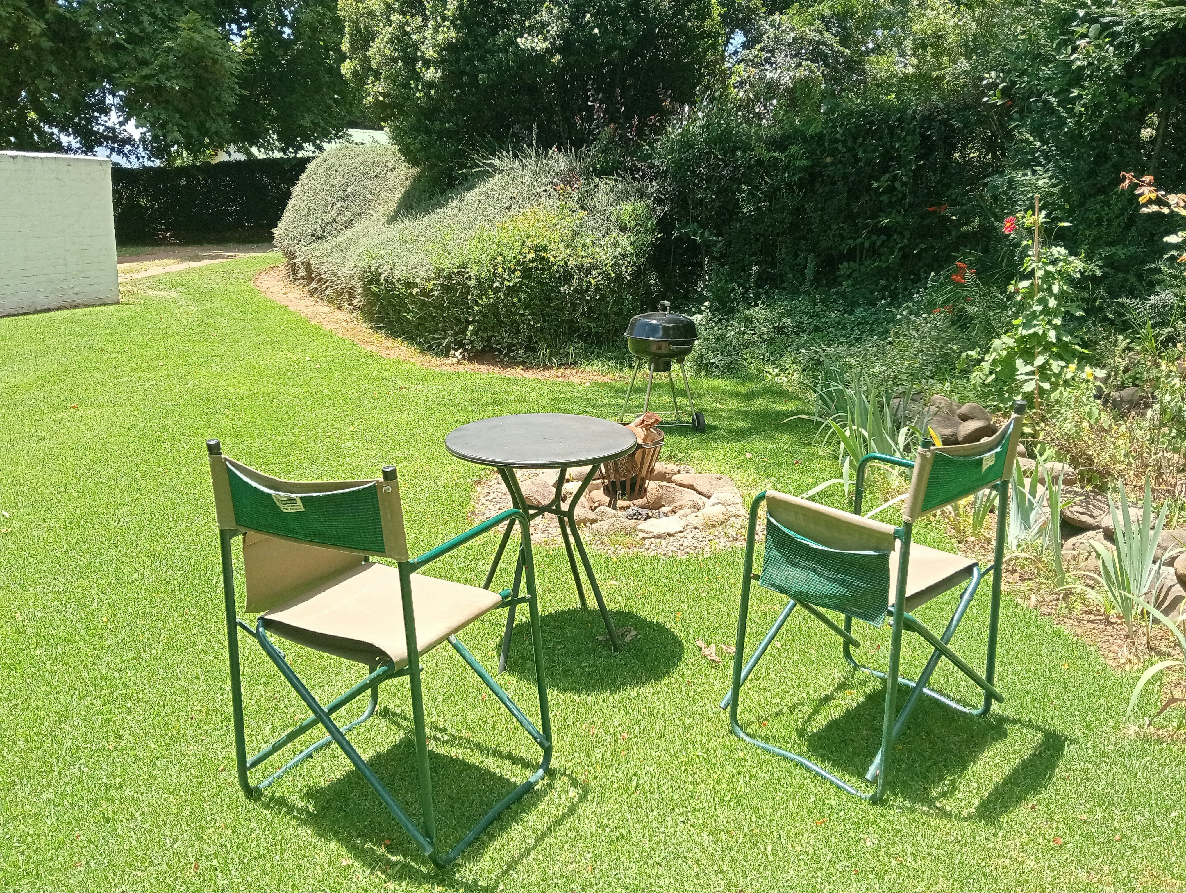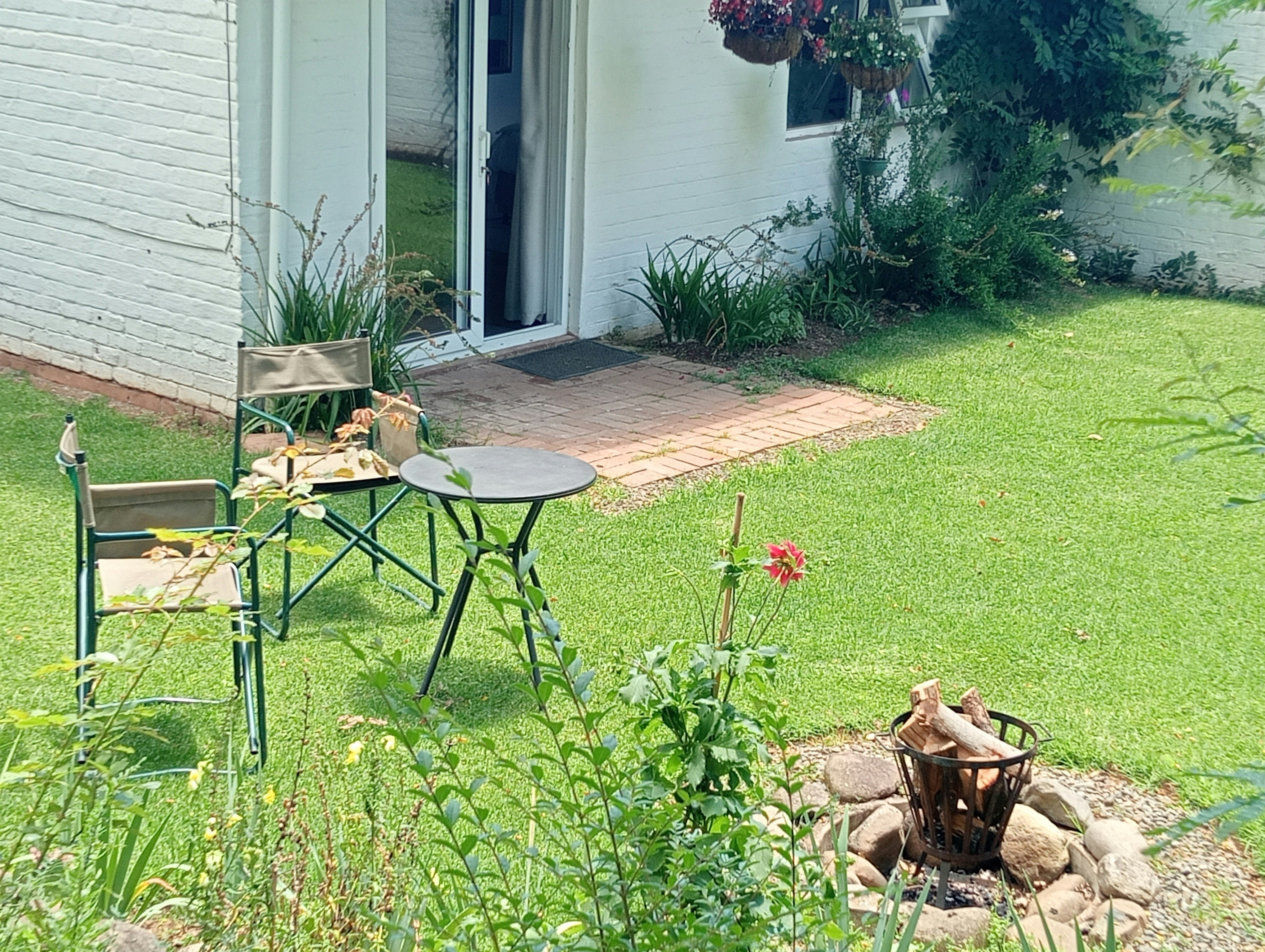 The cottage is located in the garden and can accommodate 1 or 2 adults. This open-plan flatlet is furnished with a queen-size bed and features an en-suite bathroom fitted with a shower. Adjacent to bed is a small lounge area with wicker seating and a TV with full DStv channels and an antique stove fireplace to warm the unit on chilly evenings.