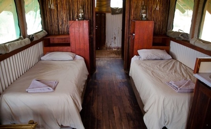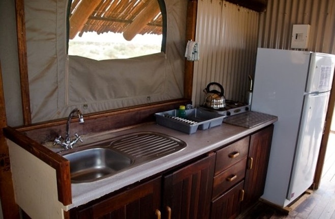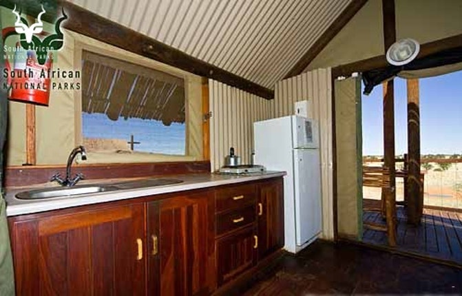 The camp has 4 Log Cabin units, each containing 2 single beds, a bathroom with a shower, a toilet, and a washbasin, and an equipped kitchen with a gas fridge-freezer, cutlery, crockery and cooking utensils. The basins have solar-powered lights, gas for hot water, and braai facilities on the deck. The units are made from a combination of wood, cane and canvas and, like the other wilderness camps, are well-equipped. The water here is very salty, even too salty for cooking, so remember to bring your own.