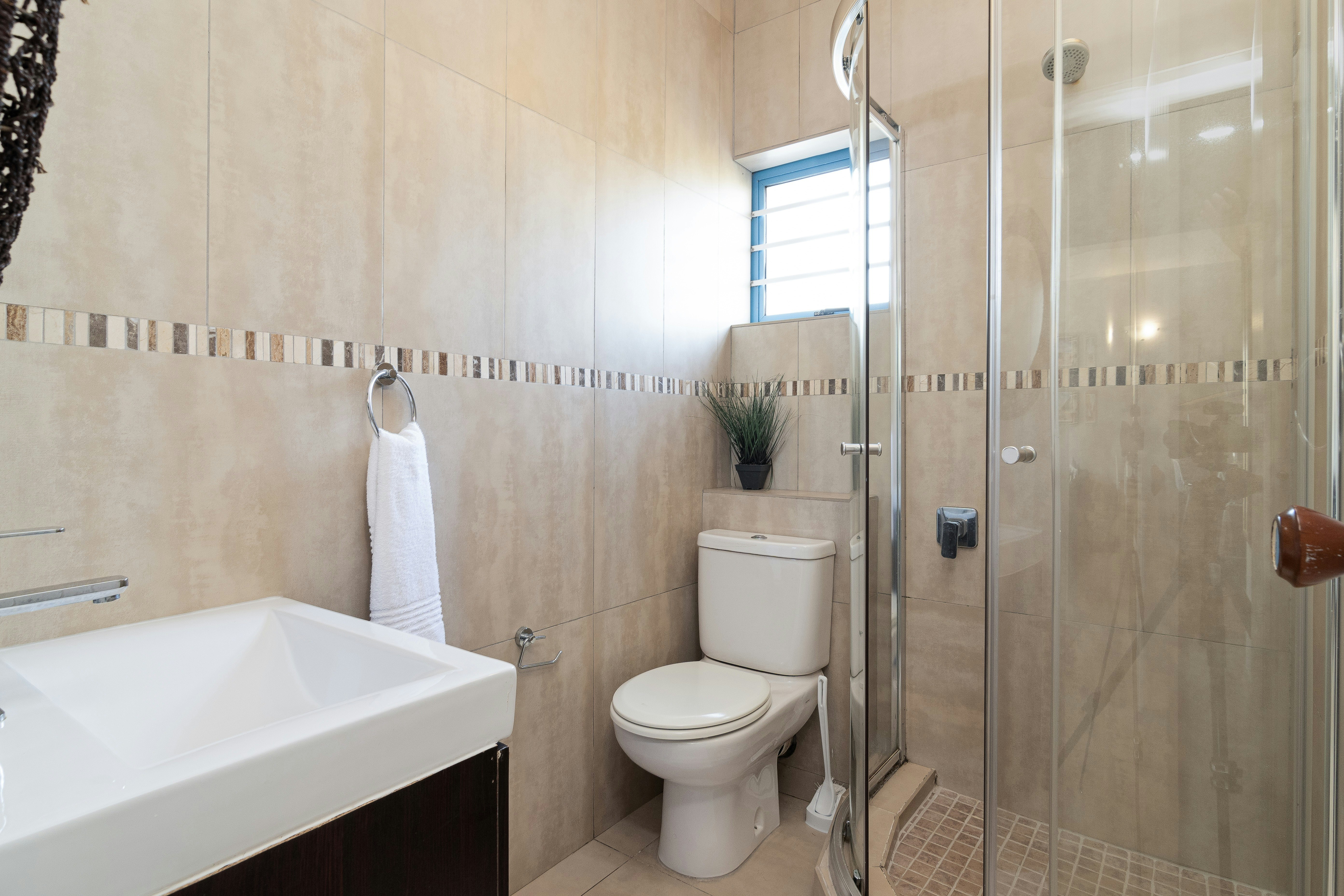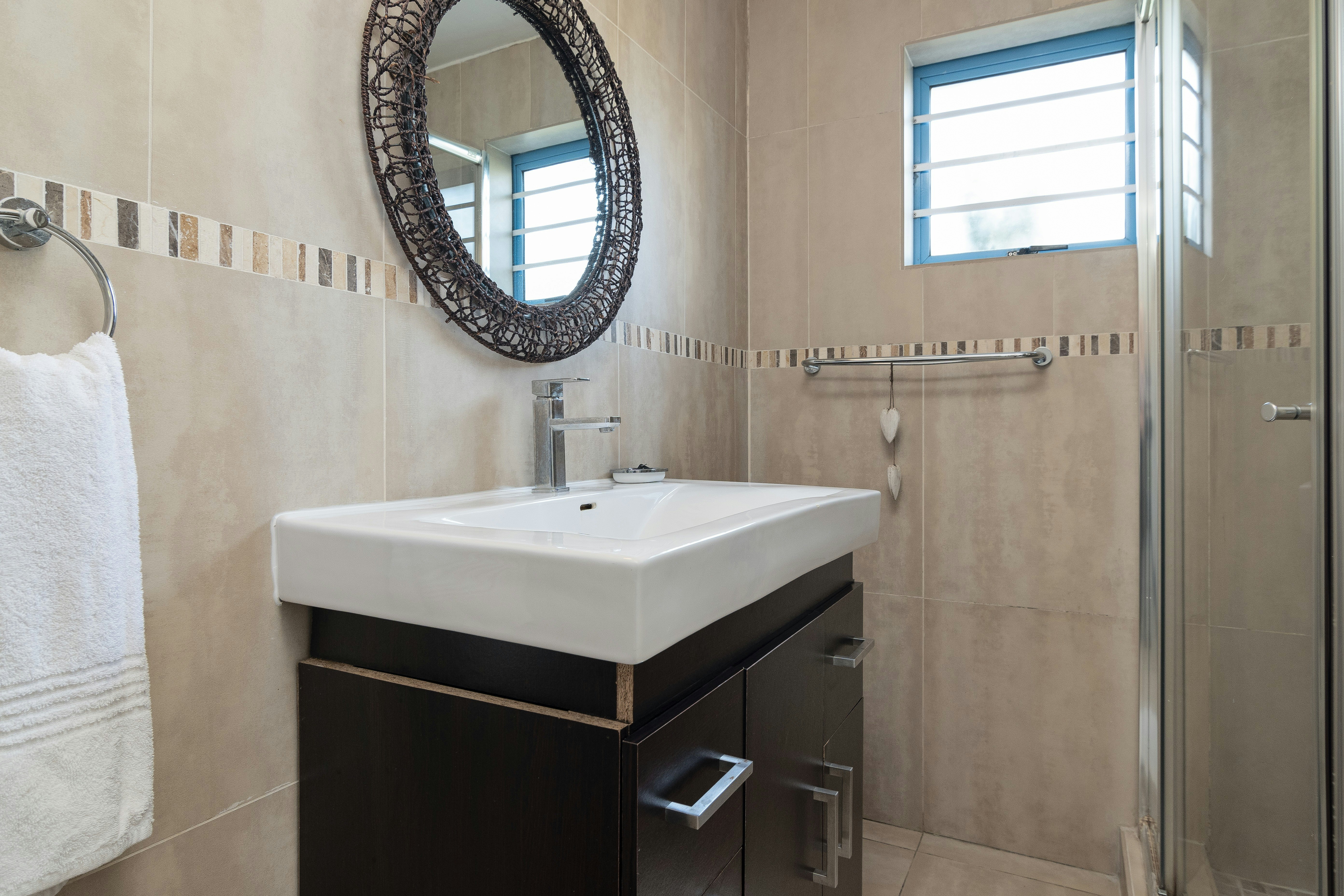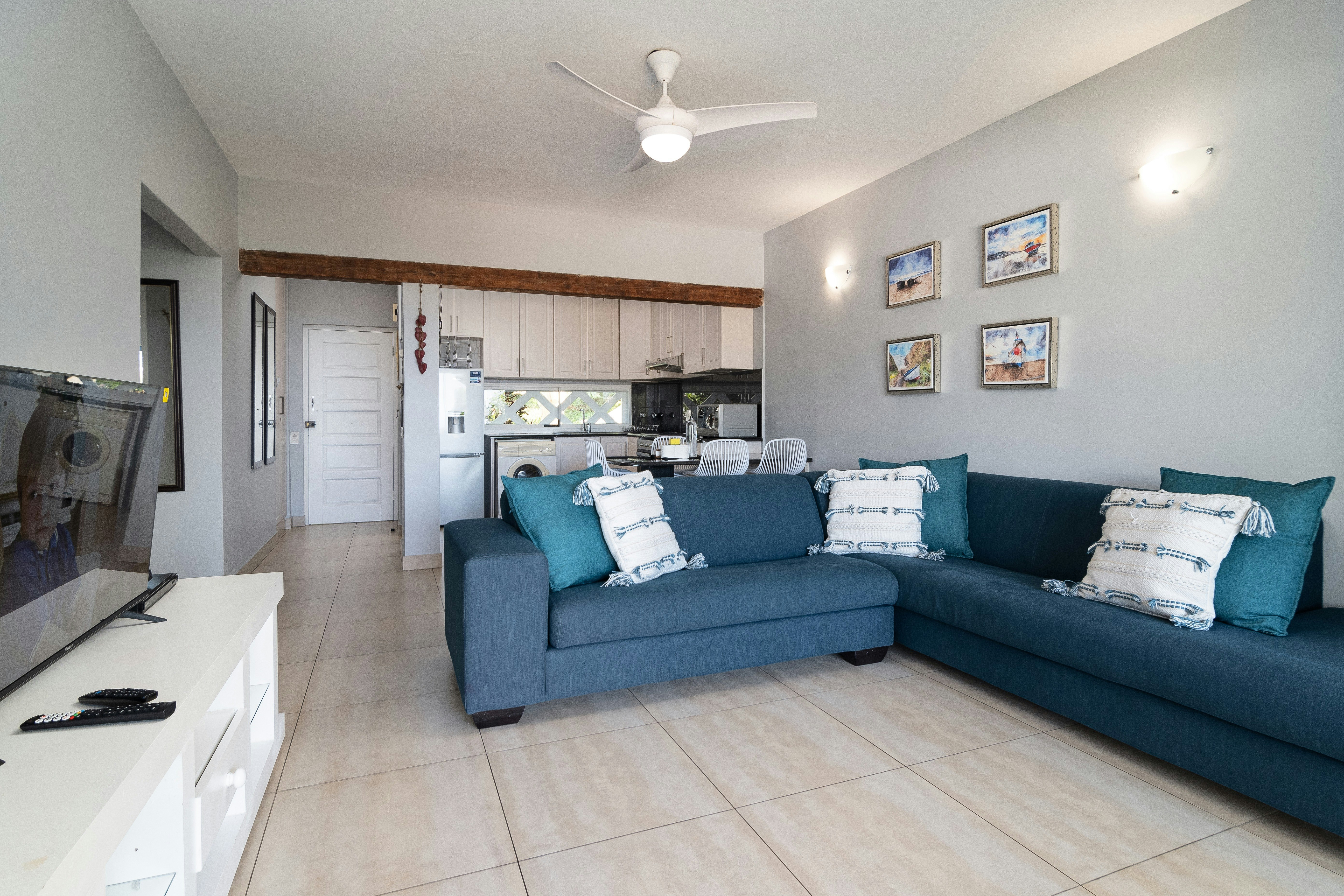 This charming ground-floor apartment is accessible via stairs and can accommodate 4 guests, comprising 2 bedrooms and 2 bathrooms. The main bedroom is furnished with a queen-size bed and has an en-suite bathroom fitted with a shower. The second bedroom is furnished with 2 single beds, ideally suited for kids, and makes use of the guests’ bathroom fitted with a shower, basin, and toilet. Linen and bath towels are provided, however, guests should bring their own beach towels.