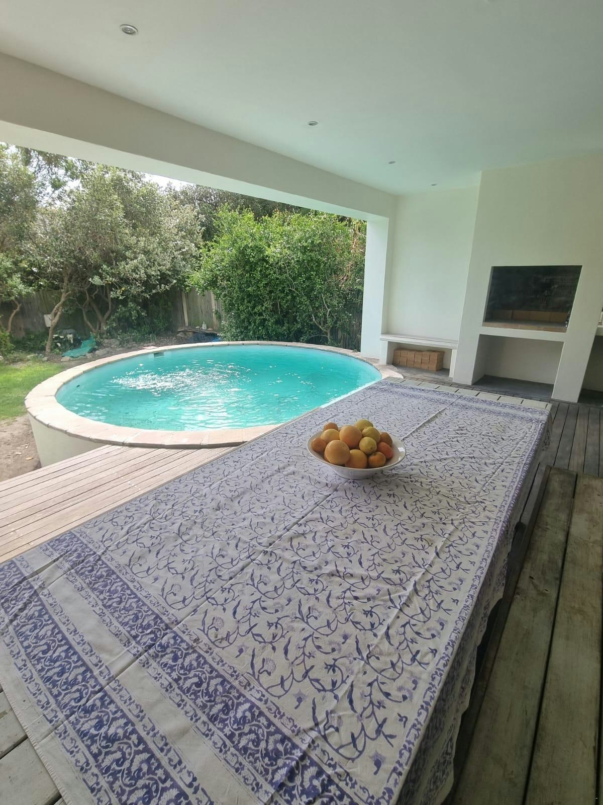 Outside, guests can enjoy meals alfresco on the furnished patio, complete with a braai area overlooking the swimming pool and garden. Secure parking is available for the duration of the stay. For those wanting to explore the area, Scarborough Beach and Schuster’s Kraal are both within walking distance of the house.