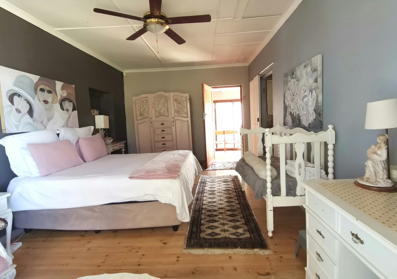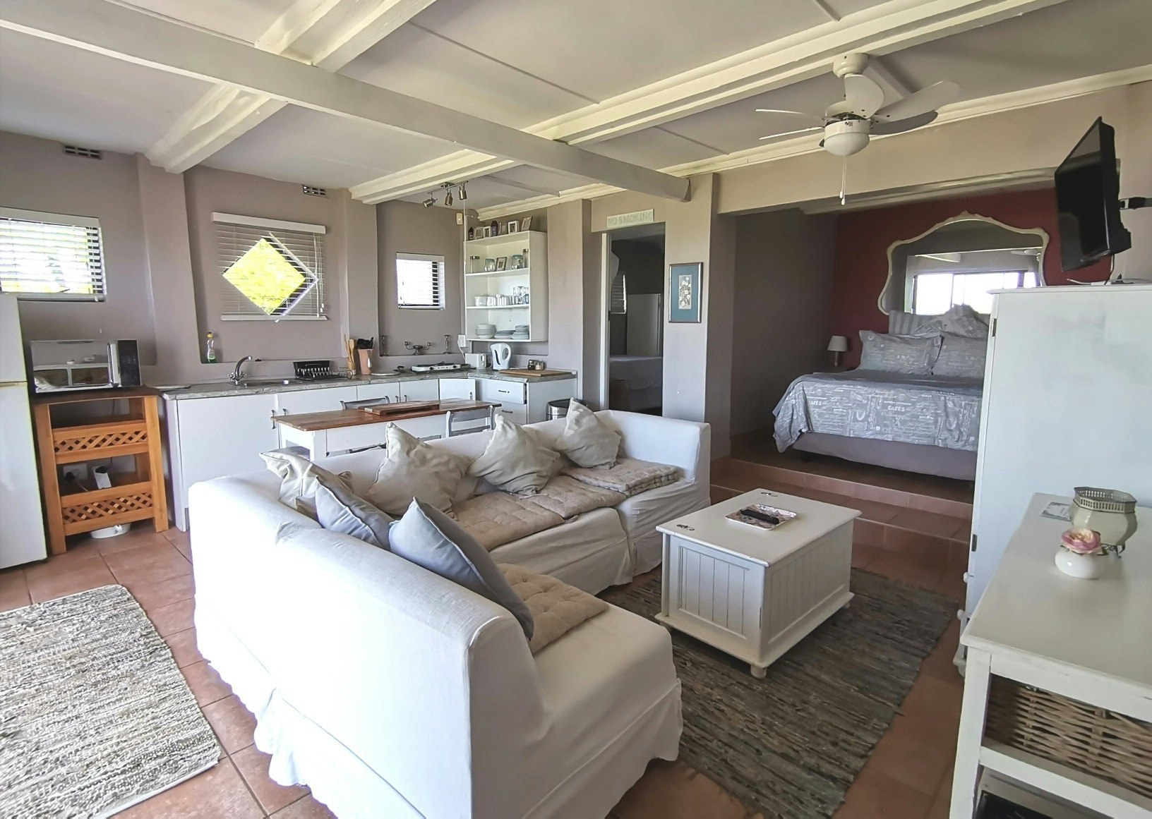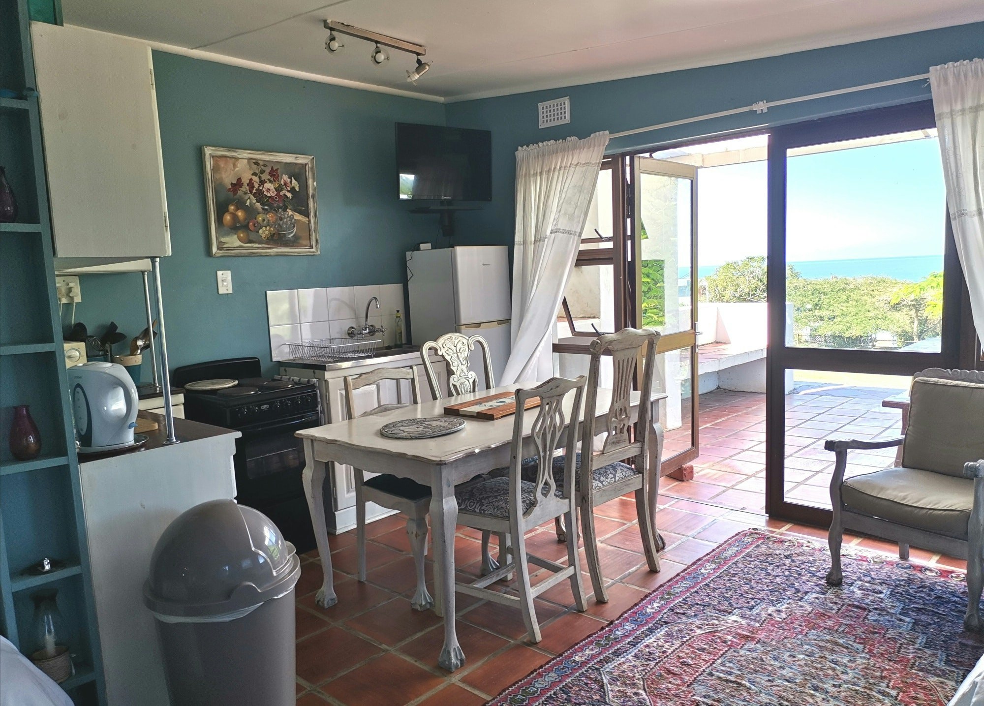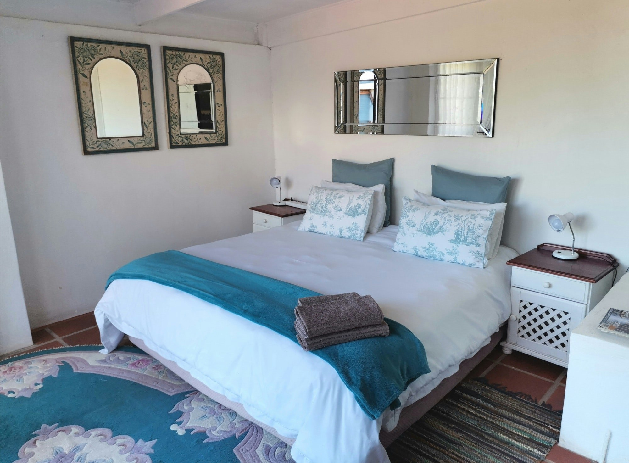 The manor house comprises 3 en-suite rooms, sleeping 2 people in either a king-size or queen-size bed. Two of the rooms have patios, with amazing sea views inside and out. The rooms Seabreeze and Bayview have each a large en-suite bathroom, with separate seating areas and modern shabby chic seaside decor. Oyster Room is more intimate and period decorated to reflect the historic settler roots of Schafli farmhouse.
