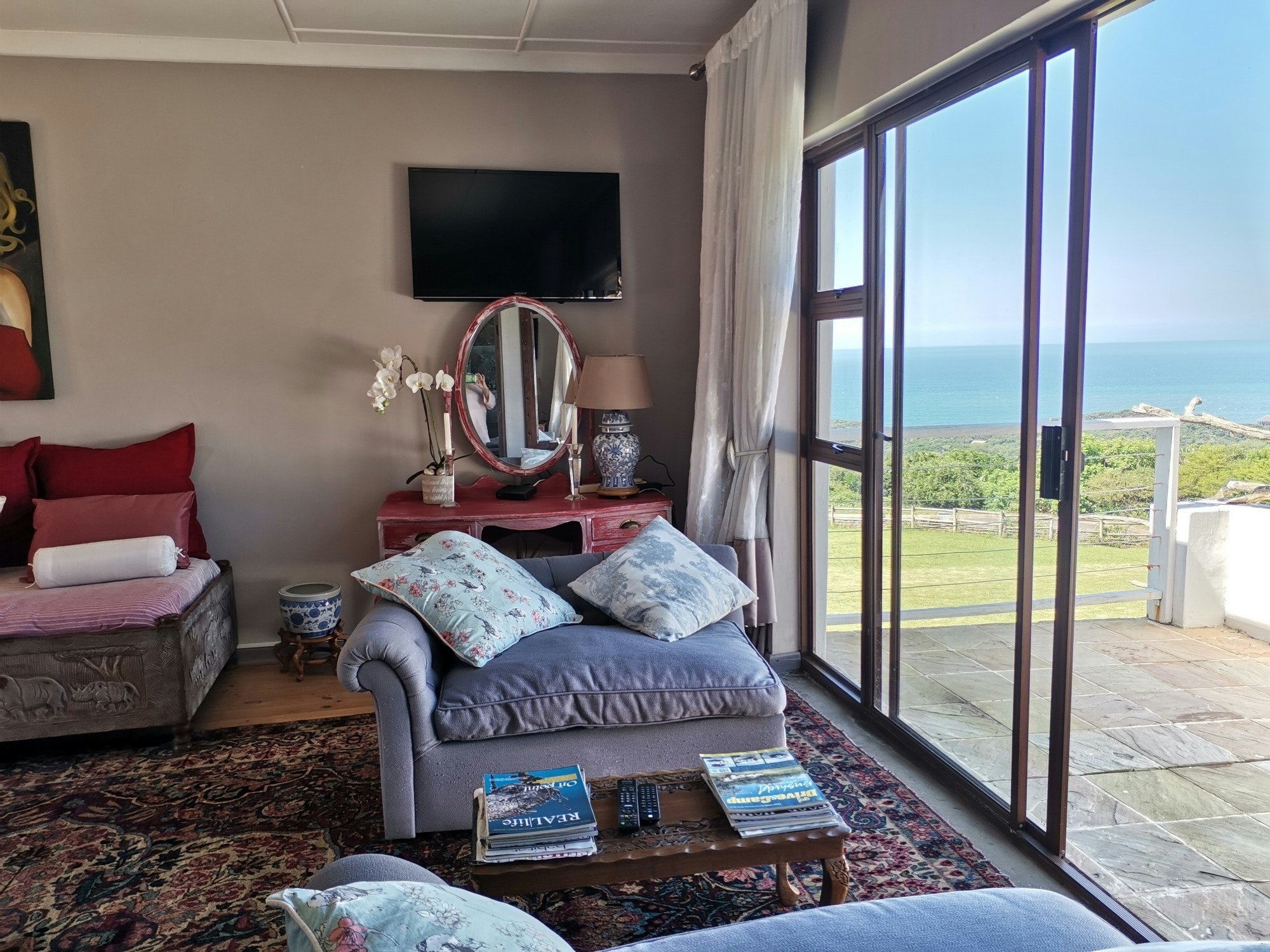 Guests love the eclectic decor and art throughout the property, along with stupendous ocean and valley views from the spacious 6000-square metre property where guest can relax or play.