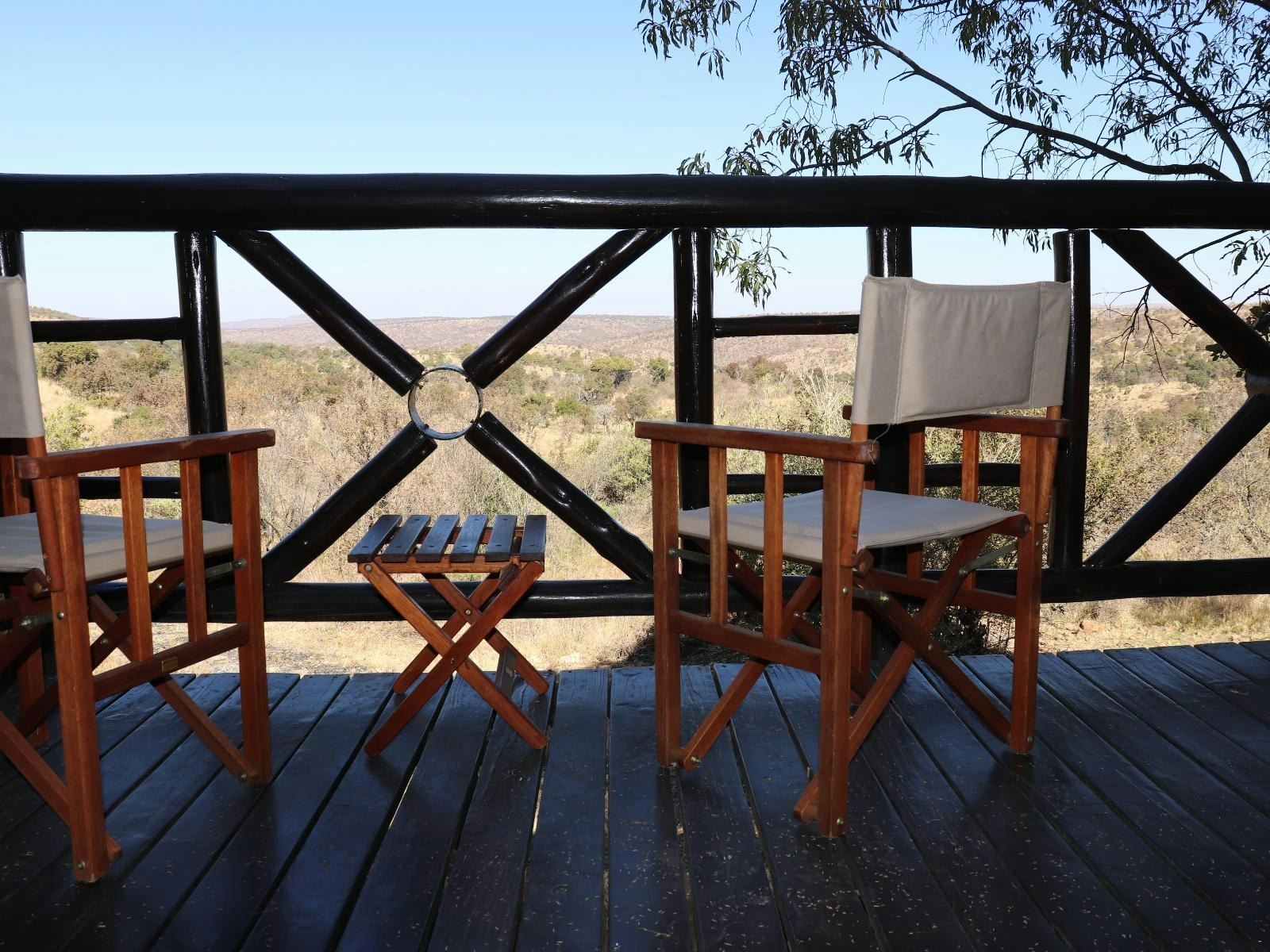 Three of the semi-detached chalets, Zebra, Elephant and Leopard, offer 6 beautifully decorated rooms with private entrance, private bathroom featuring a bath with a view, and an outside shower. The chalets are situated on a path leading away from the lodge. They have private parking. The rooms are furnished with king-size beds that can be converted into single beds, a seating area, a fridge and tea- and coffee-making facilities. The balconies, also north faced, offer a relaxing view of the bushveld and the water hole.