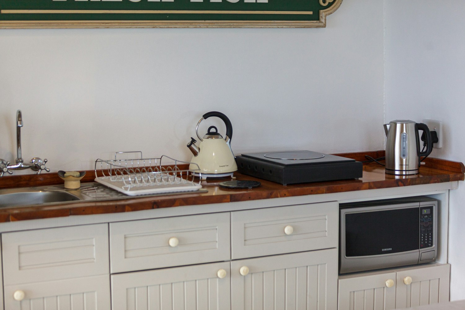 Die leefarea het 'n gemaklike rusbank en 'n kombuisie met 'n induksie-eenplaatstoof, mikrogolfoond, basiese breekware en eetgerei, en tee- en koffiemaakgeriewe. In 'n aparte opwaskamer is daar 'n yskas-vrieskas.