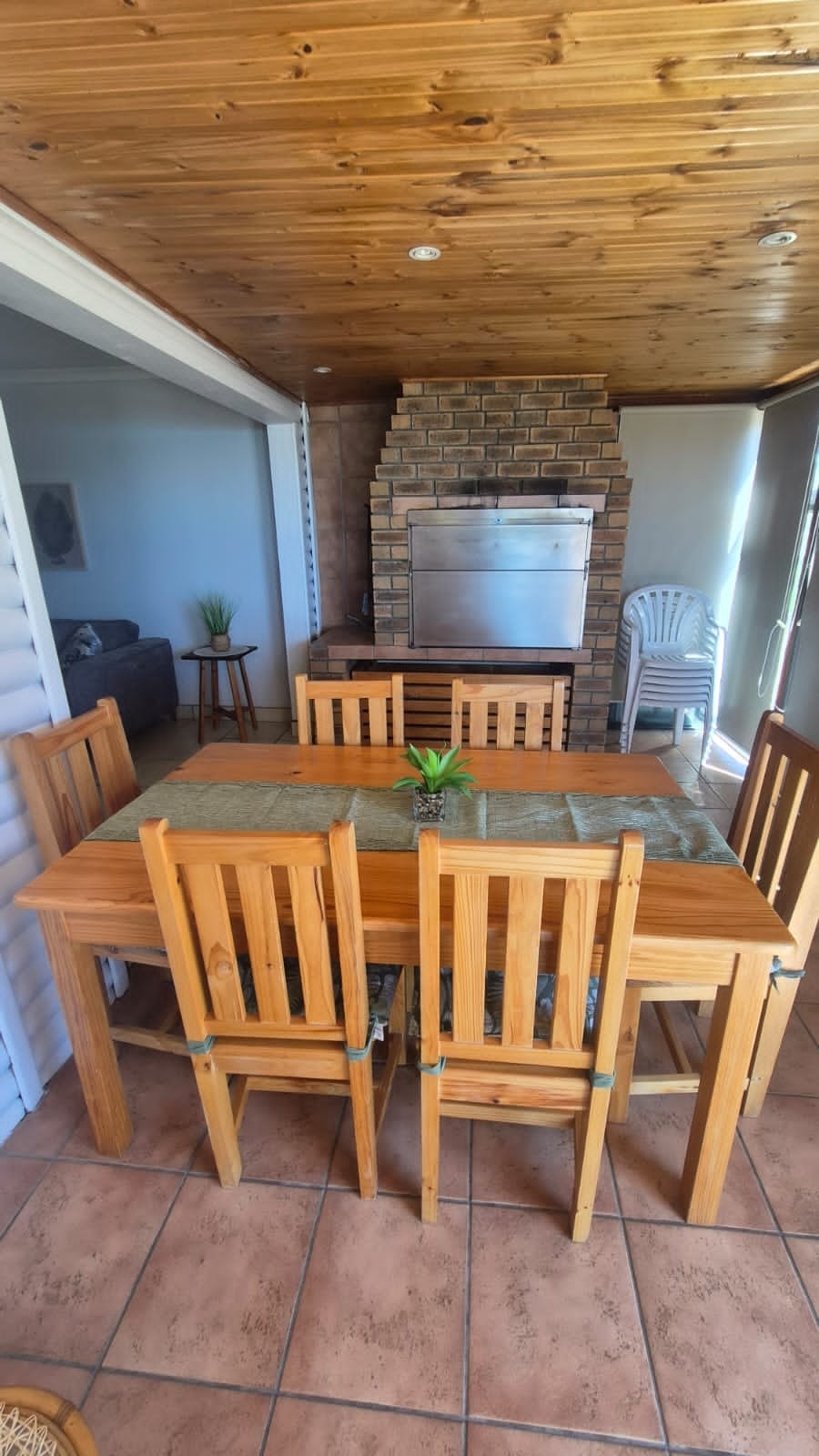 Guests can enjoy sea views from the covered patio, which has a built-in braai and seating. The unit offers secure covered parking for 2 vehicles right next to the house. The complex includes a communal swimming pool, a children’s play area, and direct access to Diaz Beach, making it ideal for peaceful beach walks and seaside activities. The complex ensures a safe environment with controlled access and electric fencing.