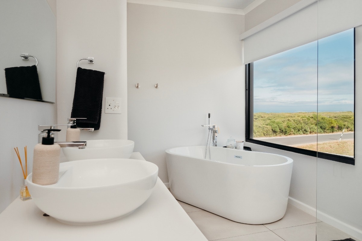 The house can accommodate up to 8 guests and comprises 4 bedrooms and 4 bathrooms. Each bedroom contains a queen-size bed, and the bathrooms are fitted with either a bath and shower or a shower only. Linen and bath towels are provided; however, guests are required to bring their own beach towels.