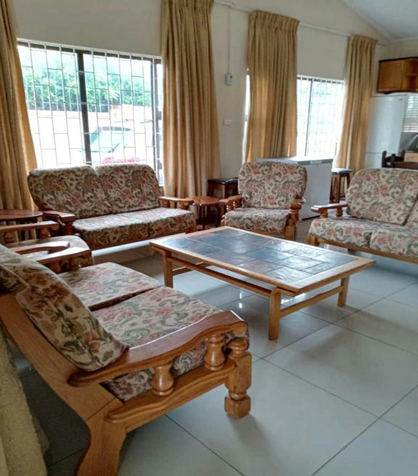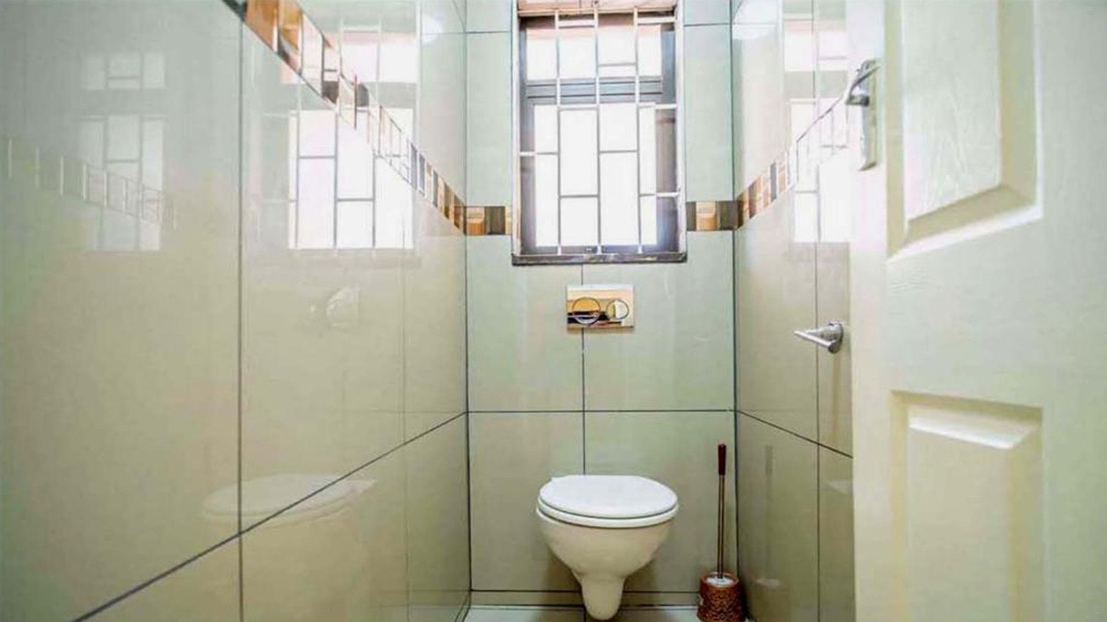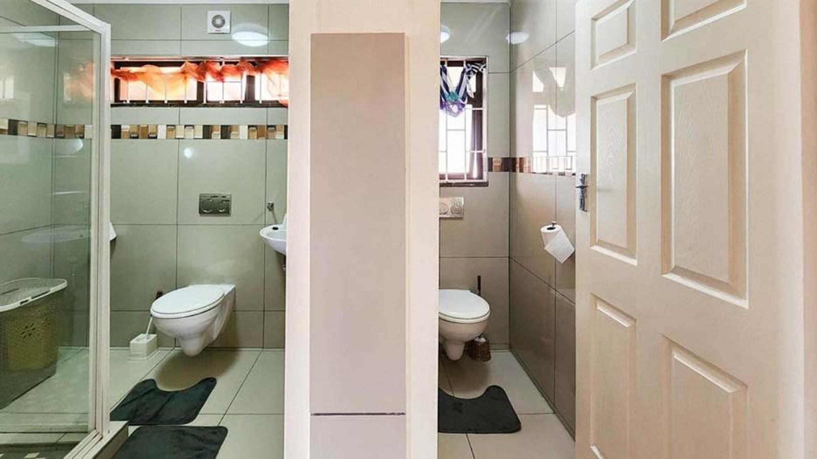 The house offers 4 bedrooms and 3 bathrooms. The main bedroom has a queen-size bed, while the second and third bedrooms each have 2 single beds. One of these bedrooms features an en-suite bathroom with a shower, toilet and basin. The fourth bedroom contains 5 single beds and also has an en-suite bathroom with a shower, toilet and basin. There is an additional bathroom with a shower and toilet, as well as a separate guest toilet.