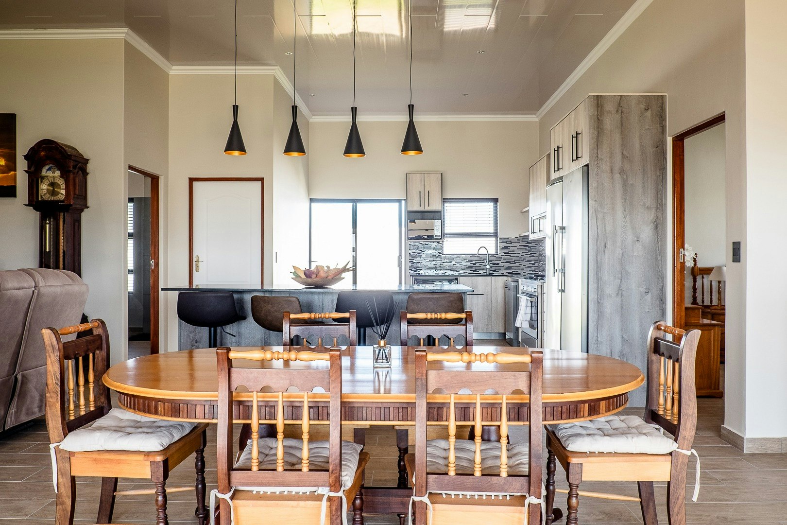 Sea Spray Self-Catering is ideal for families or small groups and is located within walking distance of the beach. The unit accommodates 4 guests across 2 bedrooms. The kitchen is fully equipped with a stove, oven, fridge-freezer, microwave, cutlery, and crockery. The living area includes a dining table, comfortable seating, and a TV, creating a relaxed space to unwind. Additional features include indoor and outdoor living areas, a patio, and a braai area.