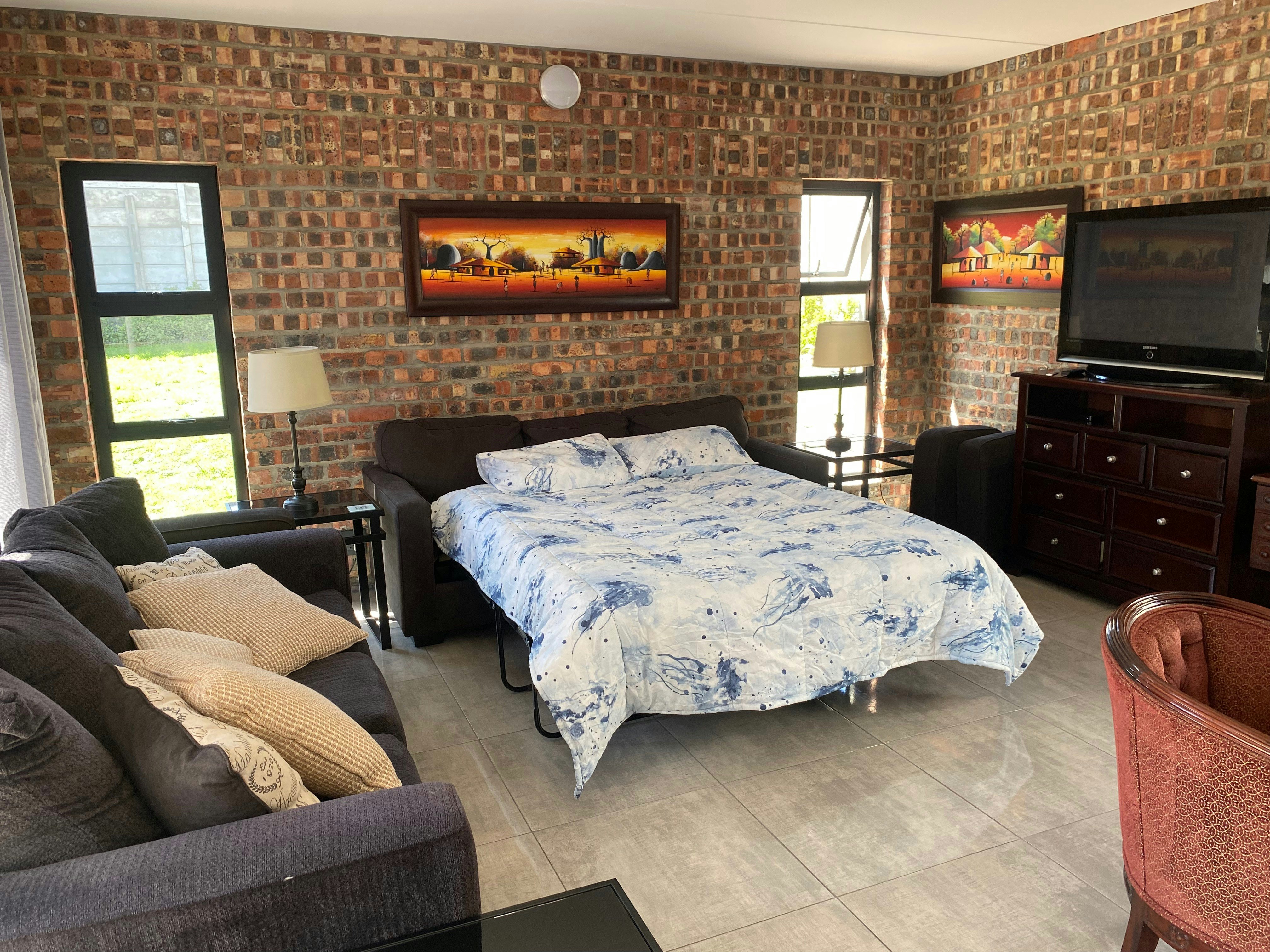 Daar is 'n koningingrootte slaapbank in die sitkamer wat slaapplek bied vir tot 2 kinders.