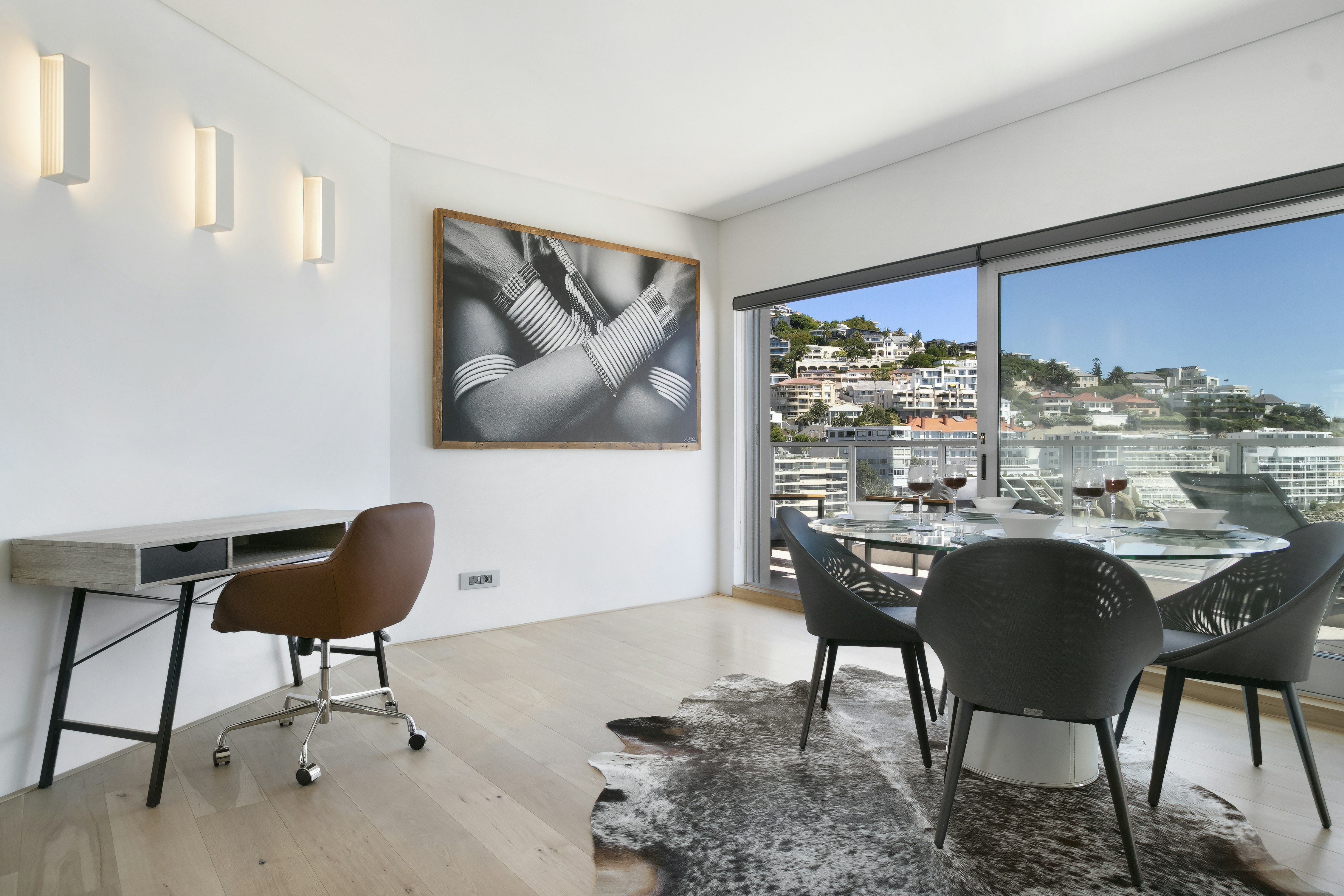 The lounge opens up to the balcony that has outdoor furniture for guests to relax and take in the oceanic views. The shops, restaurants and public transport are on your doorstep.