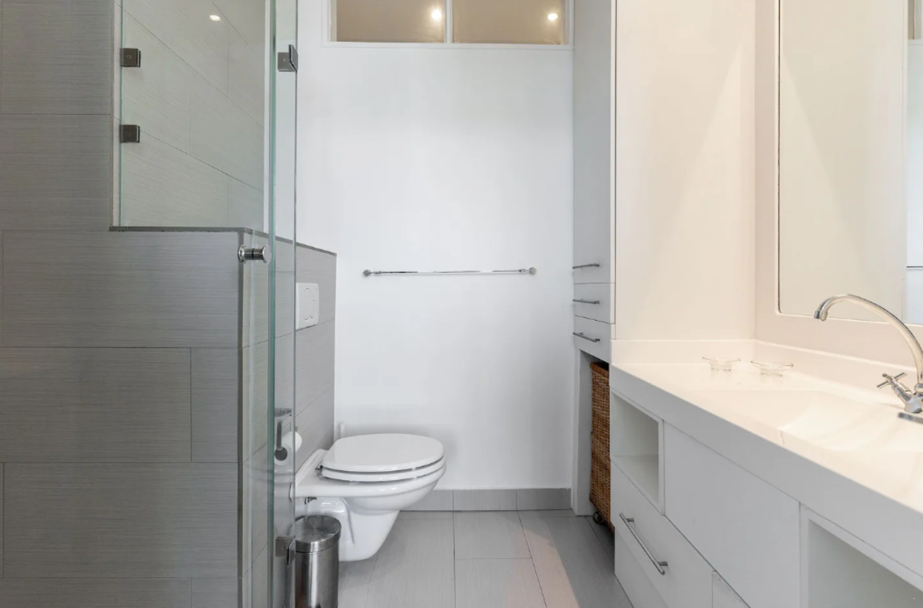 This apartment can accommodate 4 guests and comprises 2 bedrooms and 2 bathrooms. The first bedroom is furnished with a double bed and has an en-suite bathroom fitted with a shower over the bath, washbasin, and toilet. The second bedroom contains a queen-size bed and also has an en-suite bathroom fitted with a shower, washbasin, and toilet.