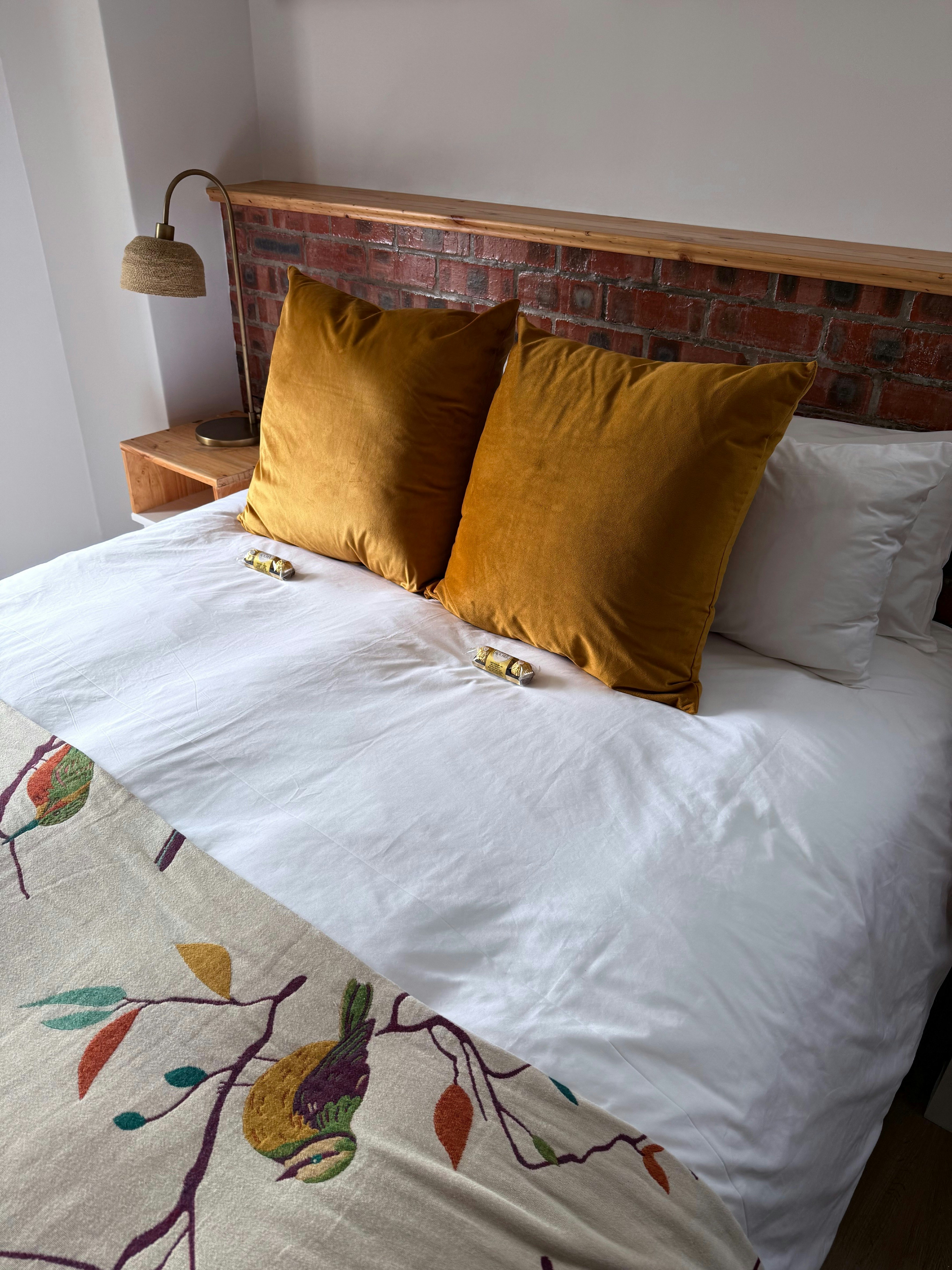 Die eenheid bestaan uit 2 slaapkamers; die hoofslaapkamer is ingerig met 'n koningingrootte-bed, en die tweede slaapkamer is ingerig met 2 enkelbeddens. Die gedeelde badkamer is toegerus met 'n stort, bad, toilet en wasbak.