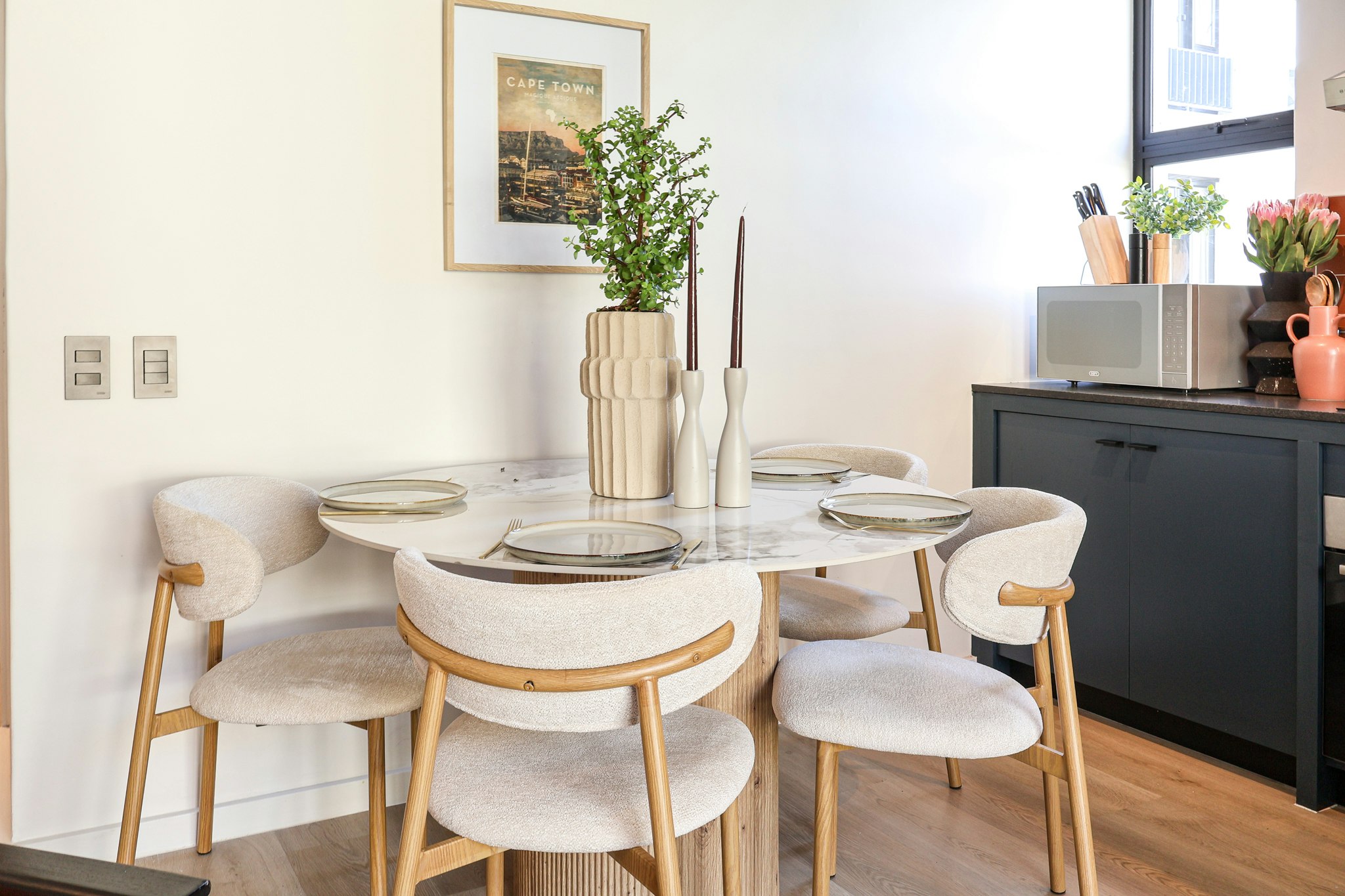 For those working remotely, the property provides high-speed fibre, workspaces, and access to nearby cafés and restaurants that can double as offices for the day. Loadshedding solutions ensure minimal disruption, with a generator powering common areas and elevators, a portable power station for devices, UPS-backed Wi-Fi for uninterrupted connectivity, LED lighting, and assistance from the on-site concierge team.