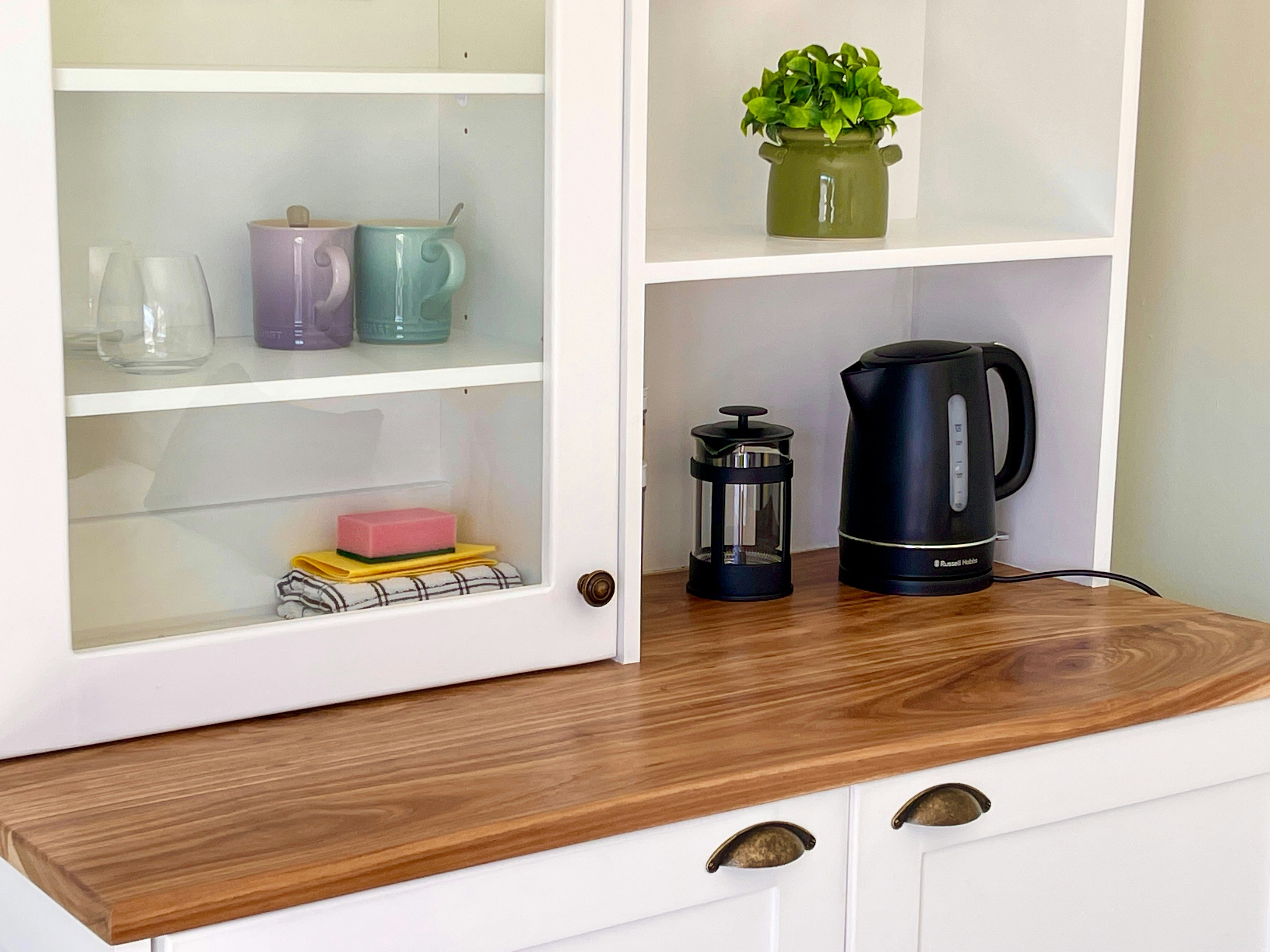Die kombuis is volledig toegerus vir selfsorg en bevat 'n stoof, oond, yskas-vrieskas, skottelgoedwasser, mikrogolfoond, eetgerei en breekware. Die leefarea beskik oor 'n eetkamertafel, gemaklike sitplek en 'n TV.
