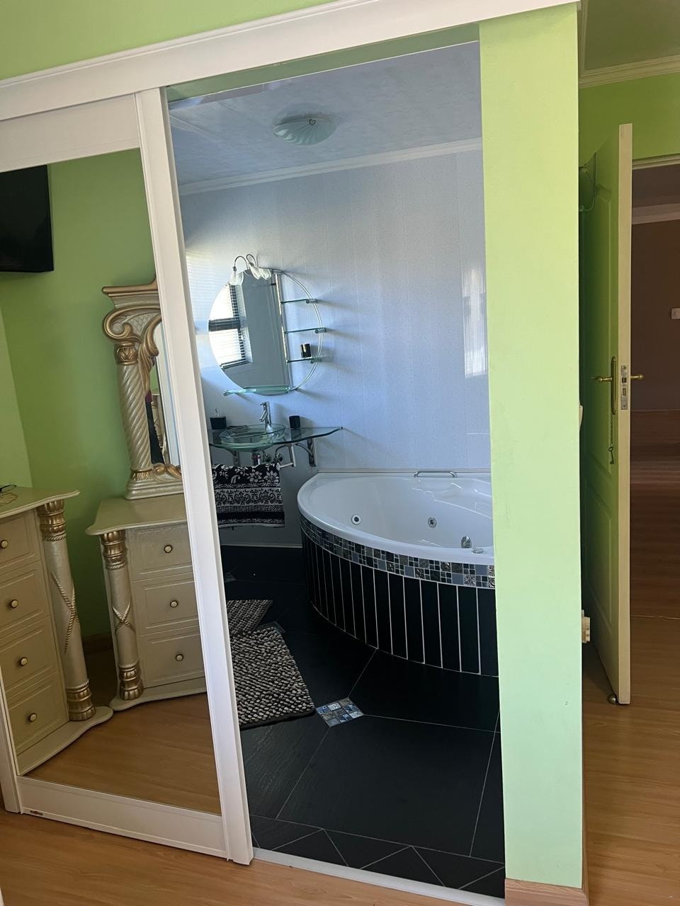 Apartment 1 comprises 2 bedrooms, an en-suite bathroom, another bathroom, a guest toilet, kitchen and a lounge area. The first bedroom is on the first floor and has a double bed, built-in cupboards and a dressing table. The second bedroom has a double bed, built-in cupboards and an en-suite bathroom. There is another bathroom with a large bath and a shower. Ironing facilities and a clothes railing are available. The open-plan kitchen is on the ground floor and is equipped with a stove and oven, a microwave, a fridge, as well as tea- and coffee-making facilities. Meals can be enjoyed at the dining table and guests can relax in the lounge which is equipped with a TV with OpenView. The guest toilet is on the ground floor.