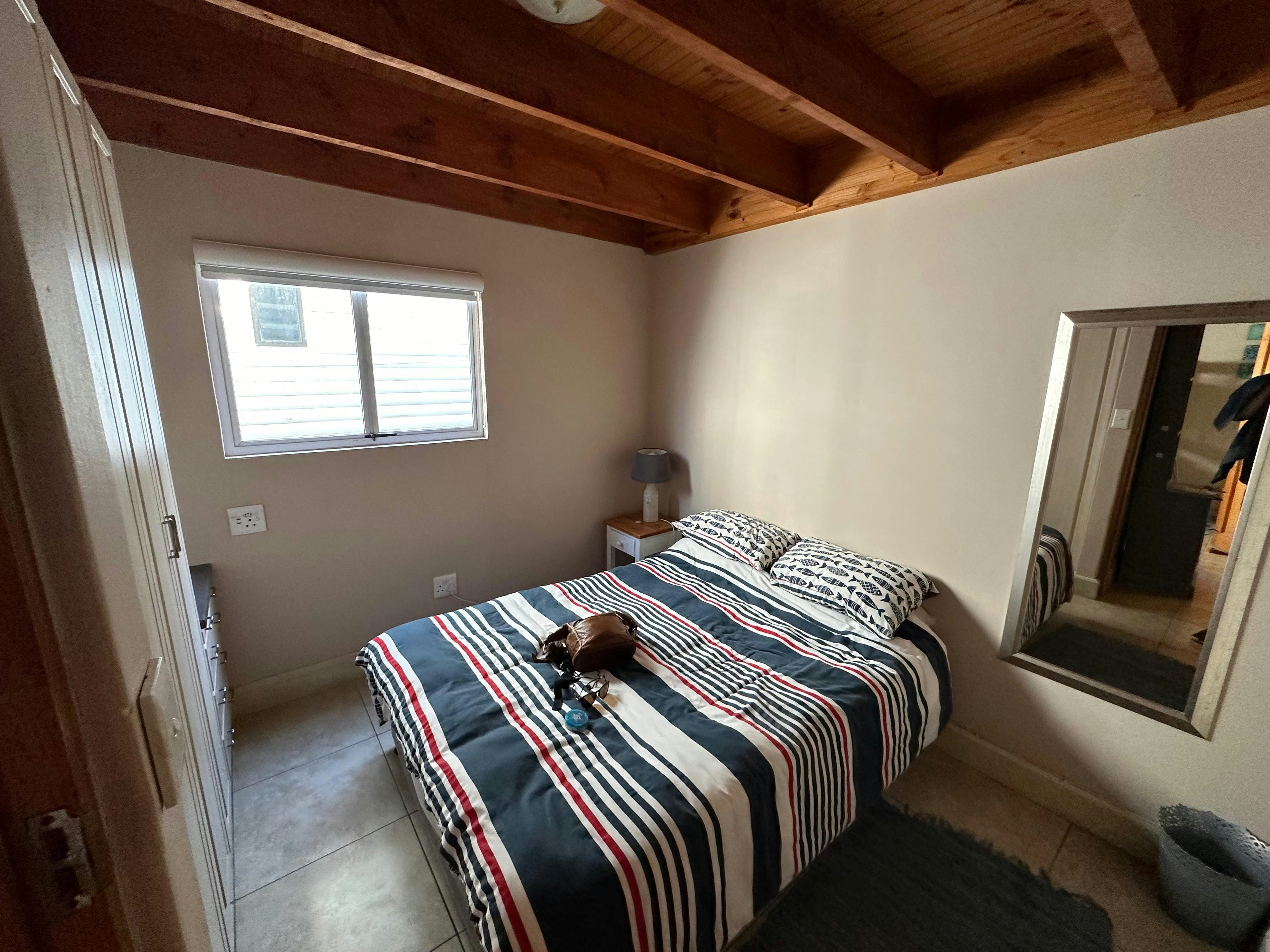 The master bedroom is on the second floor, tastefully furnished with a double bed, bedside tables, lovely spacious built-in cupboards and fitted with en-suite bathroom.