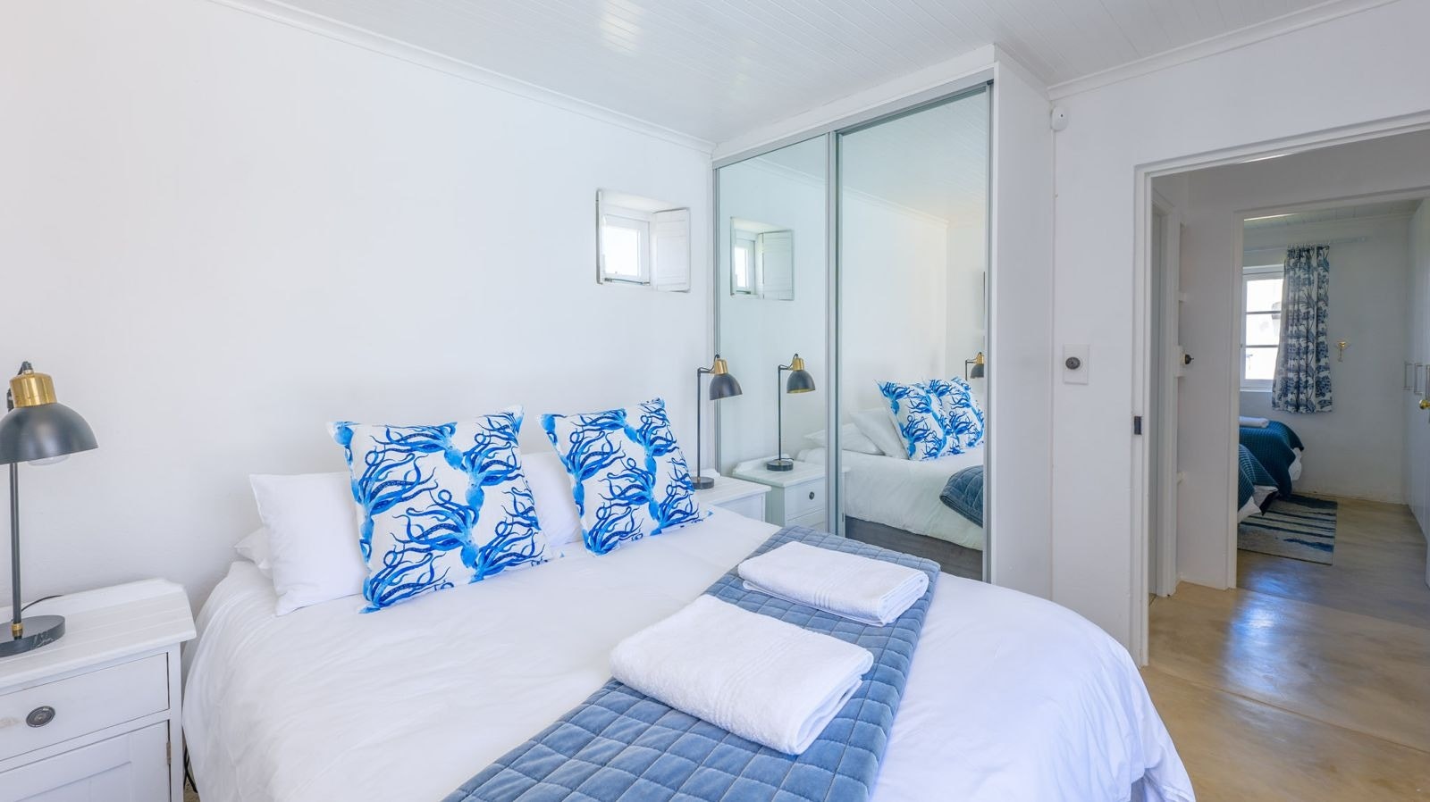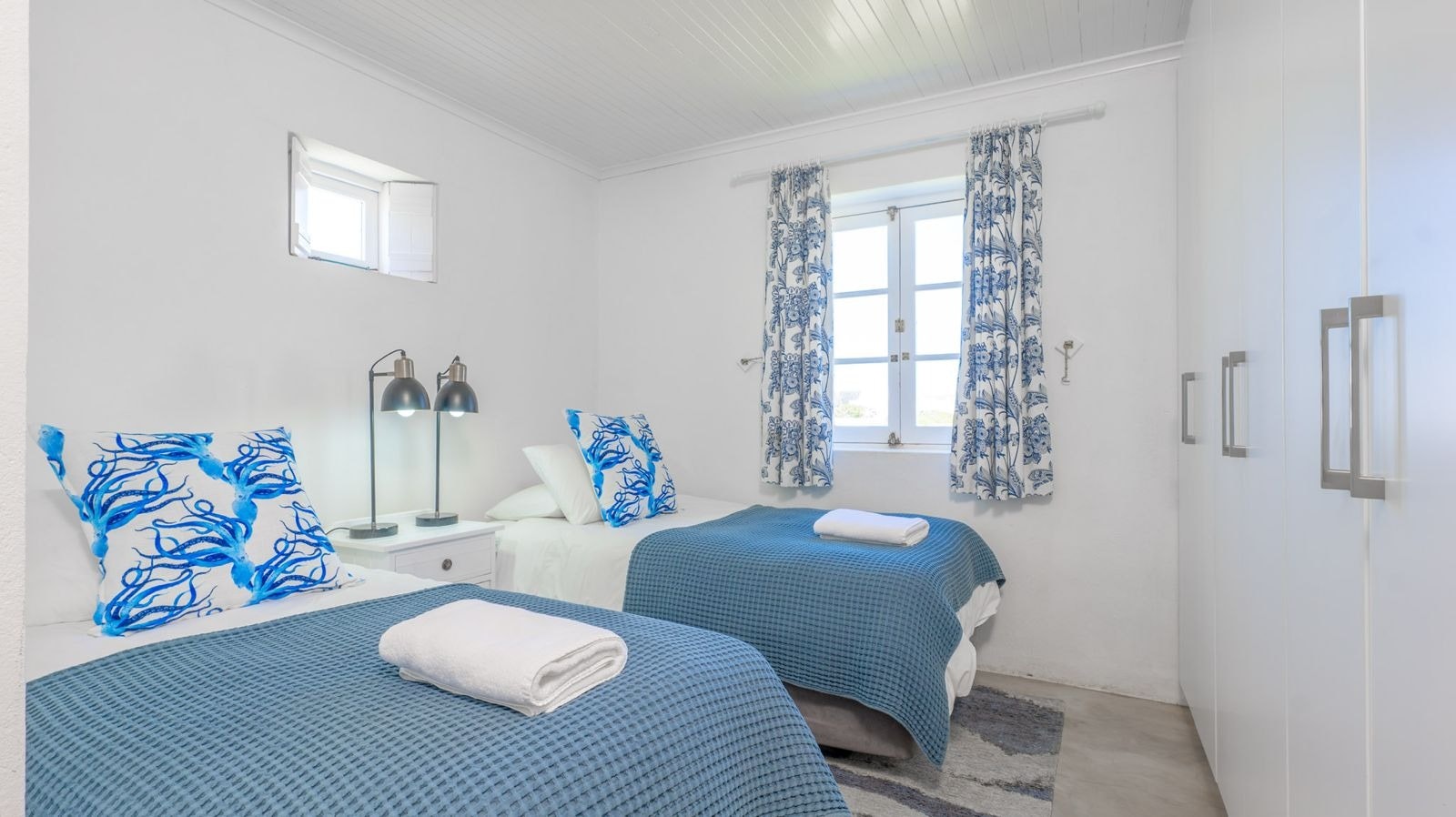 This property can comfortably accommodate a total of 8 guests at a time comprising 4 bedrooms and 4 en-suite bathrooms. The main bedroom is furnished with a queen-size bed and features a full en-suite bathroom with a bath and a shower. There are another 2 bedrooms with 2 single beds and an en-suite shower in each, while the fourth bedroom has a queen-size bed and an en-suite shower.