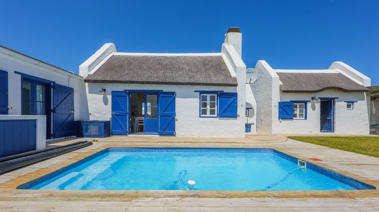 Seekat is a beautiful self-catering holiday home located in the Langezandt Fishermans Village in Agulhas. This is an ideal option for a coastal getaway in the Overberg as this property is a short distance from the beach and has a lovely outdoor braai area.