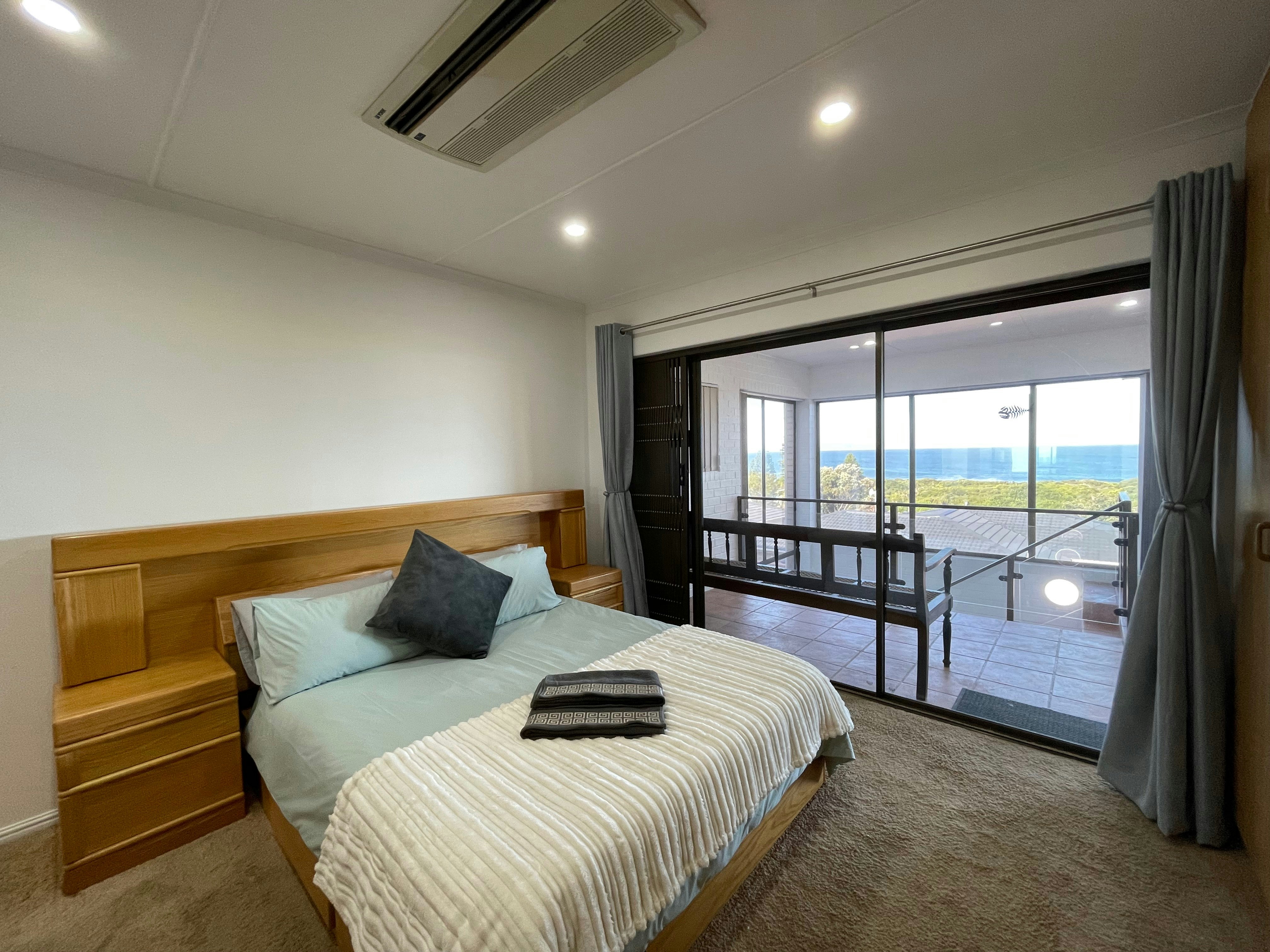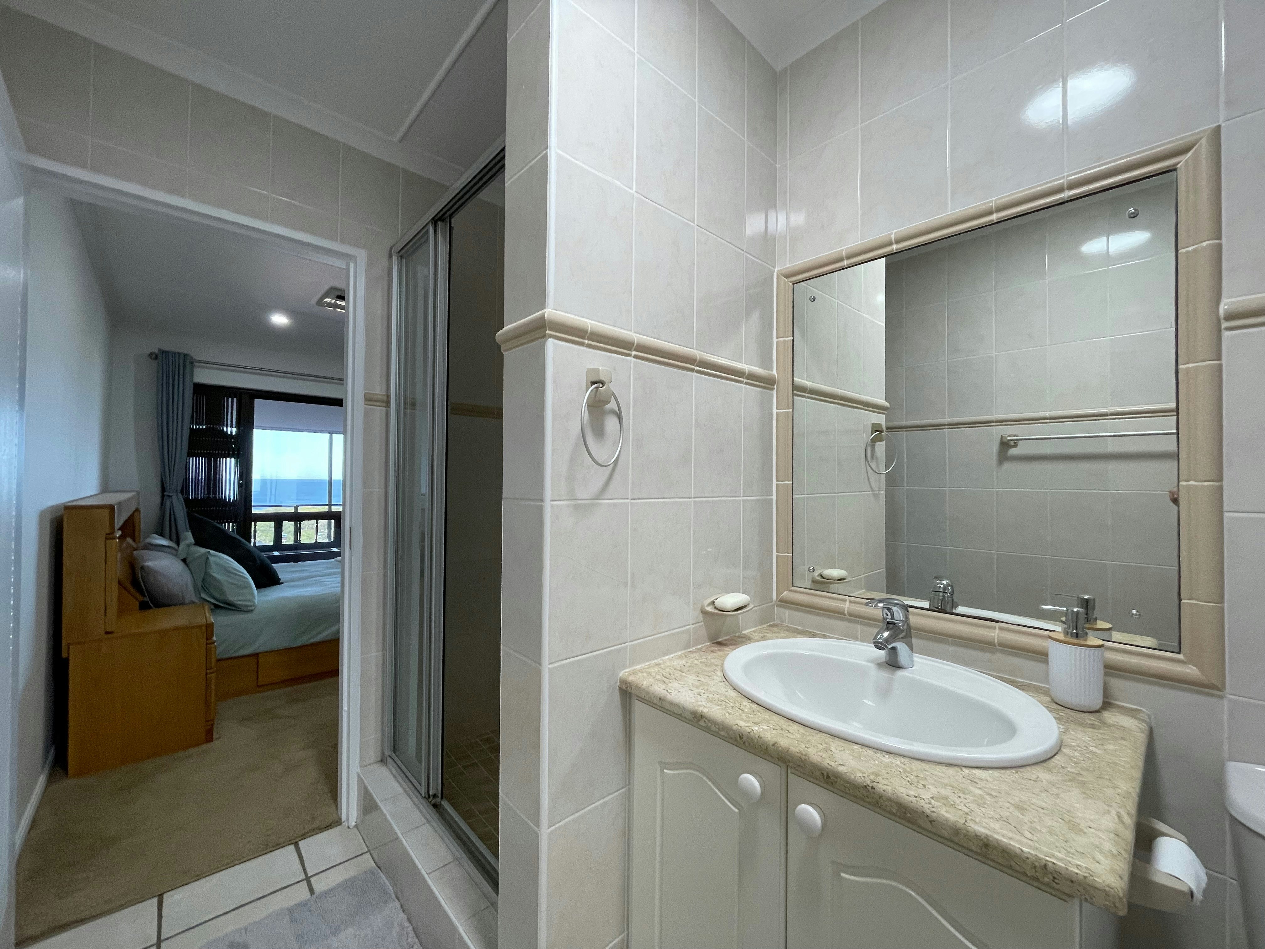 Die huis bestaan uit 3 slaapkamers en 2 badkamers, met 'n ekstra en suite-slaapkamer beskikbaar indien meer as 6 gaste bly. Die hoofslaapkamer met en suite-badkamer is gemeubileer met 'n dubbelbed, ruim ingeboude kaste, 'n volledige spieëltafel en 'n kluis vir waardevolle items. Die tweede slaapkamer het ook 'n dubbelbed en ingeboude kaste, 'n volledige spieëltafel, terwyl die derde slaapkamer gemeubileer is met 2 enkelbeddens, 'n bedkassie en 'n ingeboude kinderspieëltafel. Die tweede en derde slaapkamers deel 'n badkamer met 'n stort, wasbak en toilet. Beide die hoof- en tweede slaapkamers maak oop na 'n ingeslote privaat patio met 'n binnebraai-area en panoramiese see-uitsigte.