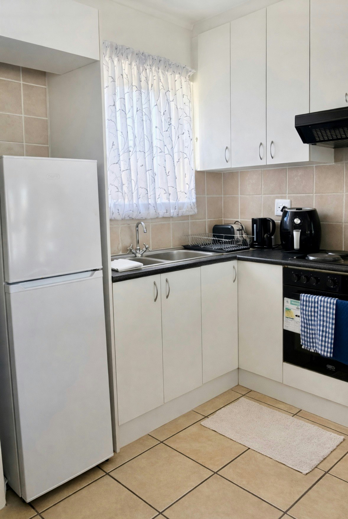 The kitchen is equipped with a fridge-freezer, stove, oven, microwave, air fryer, cutlery and crockery and tea- and coffee-making facilities. The lounging area is furnished with comfortable seating and a smart TV with streaming services like Netflix. Access to Wi-Fi is available.