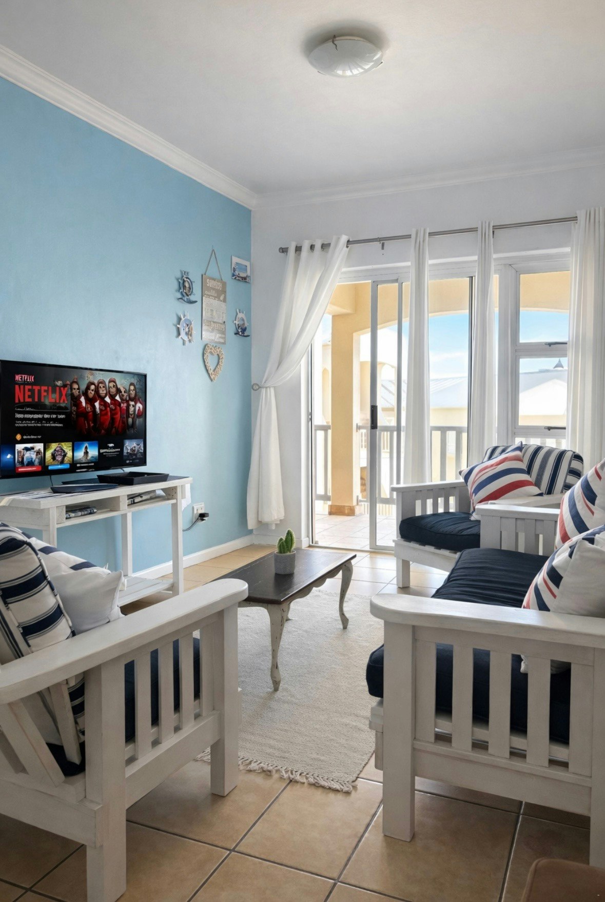 SeeRus @ Sunset Heights is a lovely self-catering holiday apartment situated in a secure complex in Mykonos, Langebaan. It is ideal for friends and family who are looking for a peaceful and comfortable homebase from where they can explore and enjoy this coastal town.