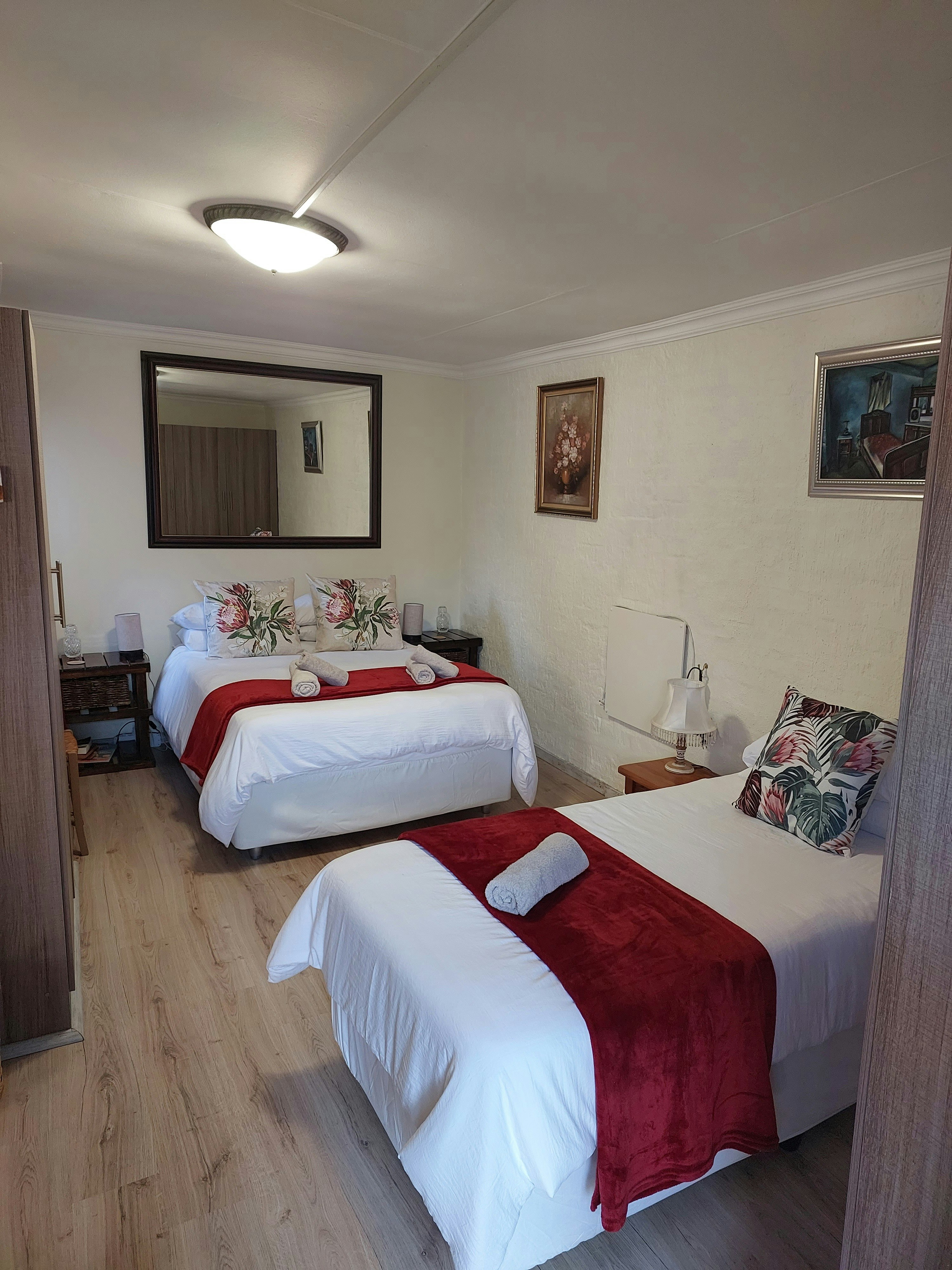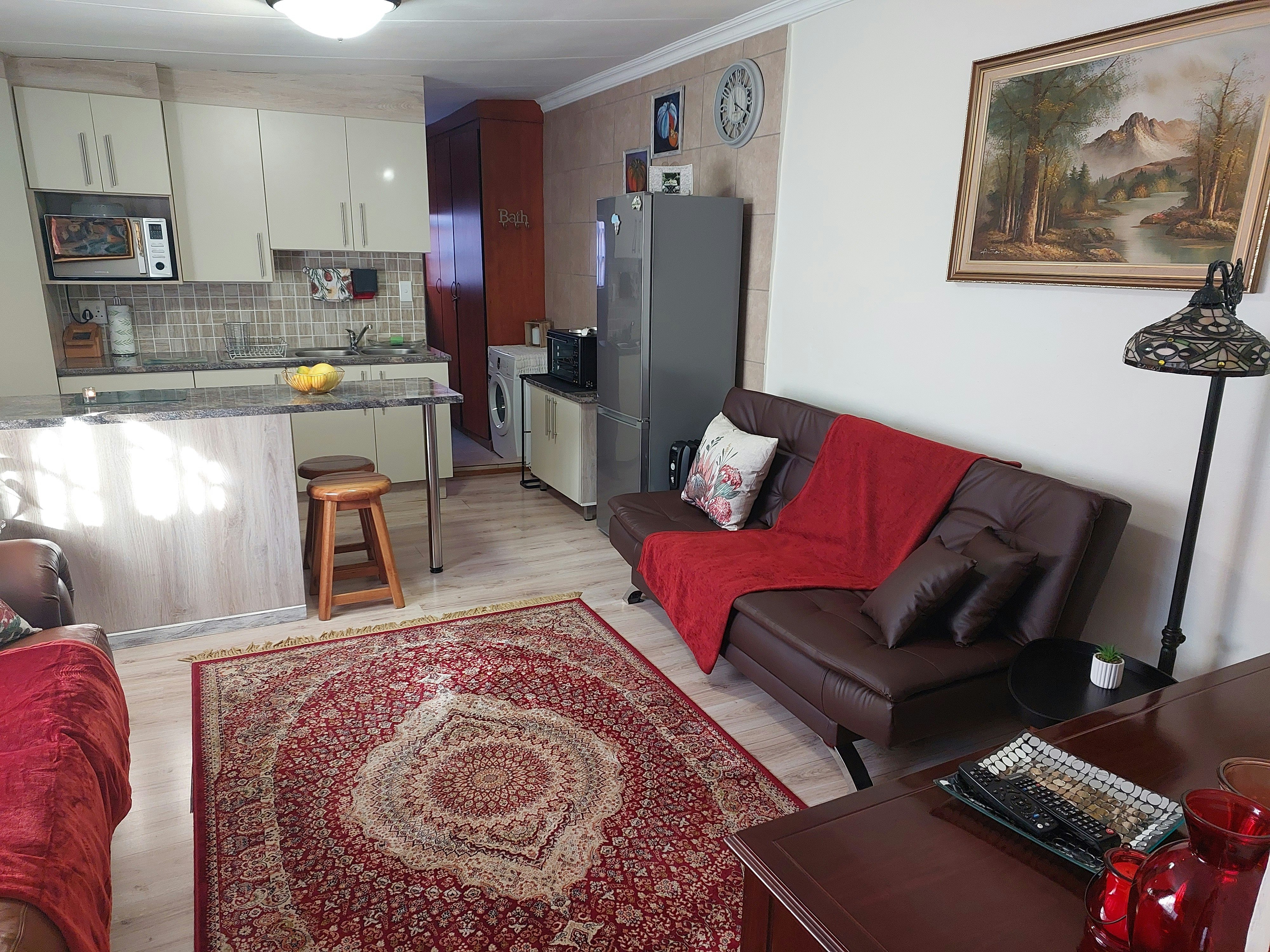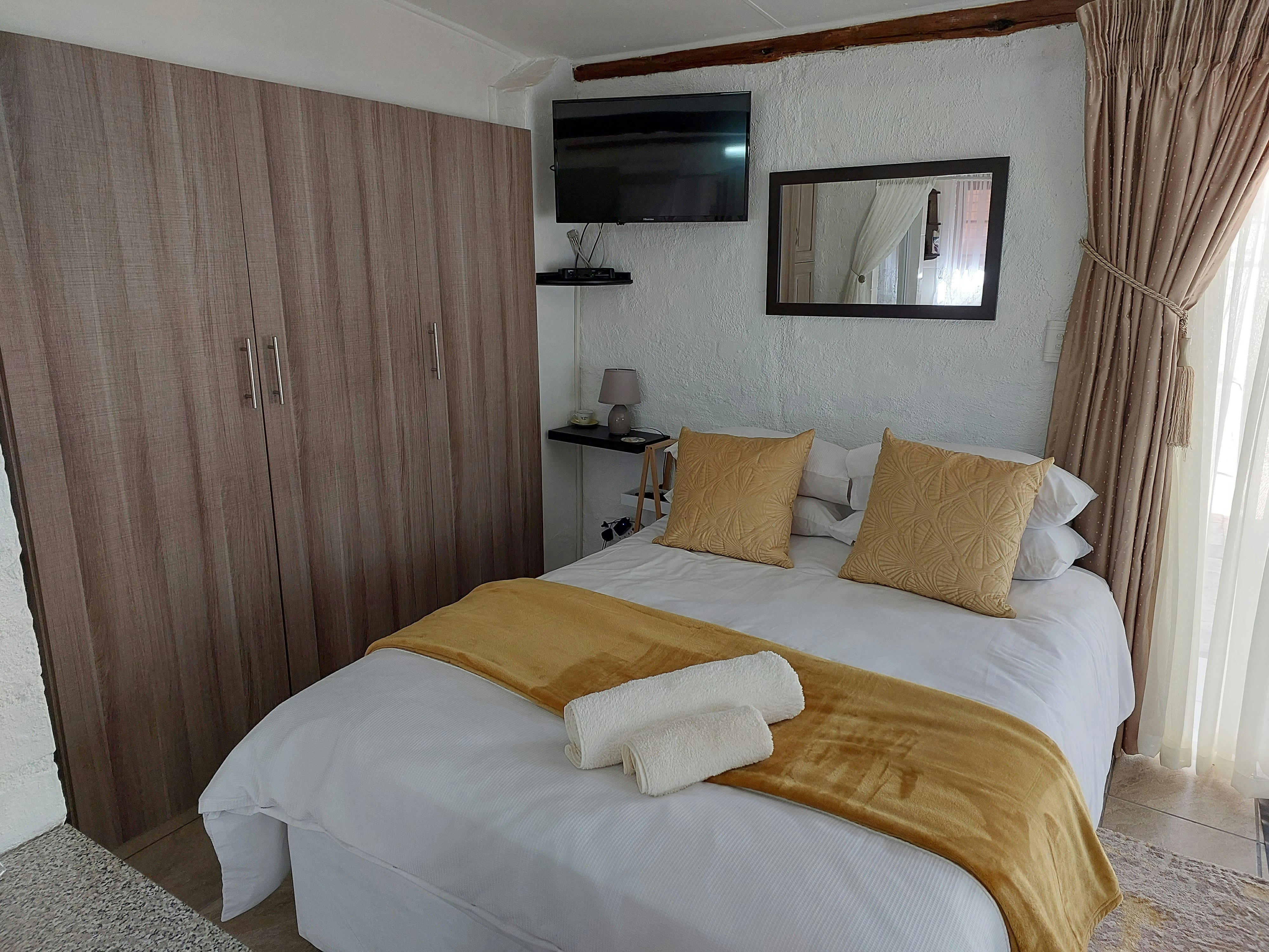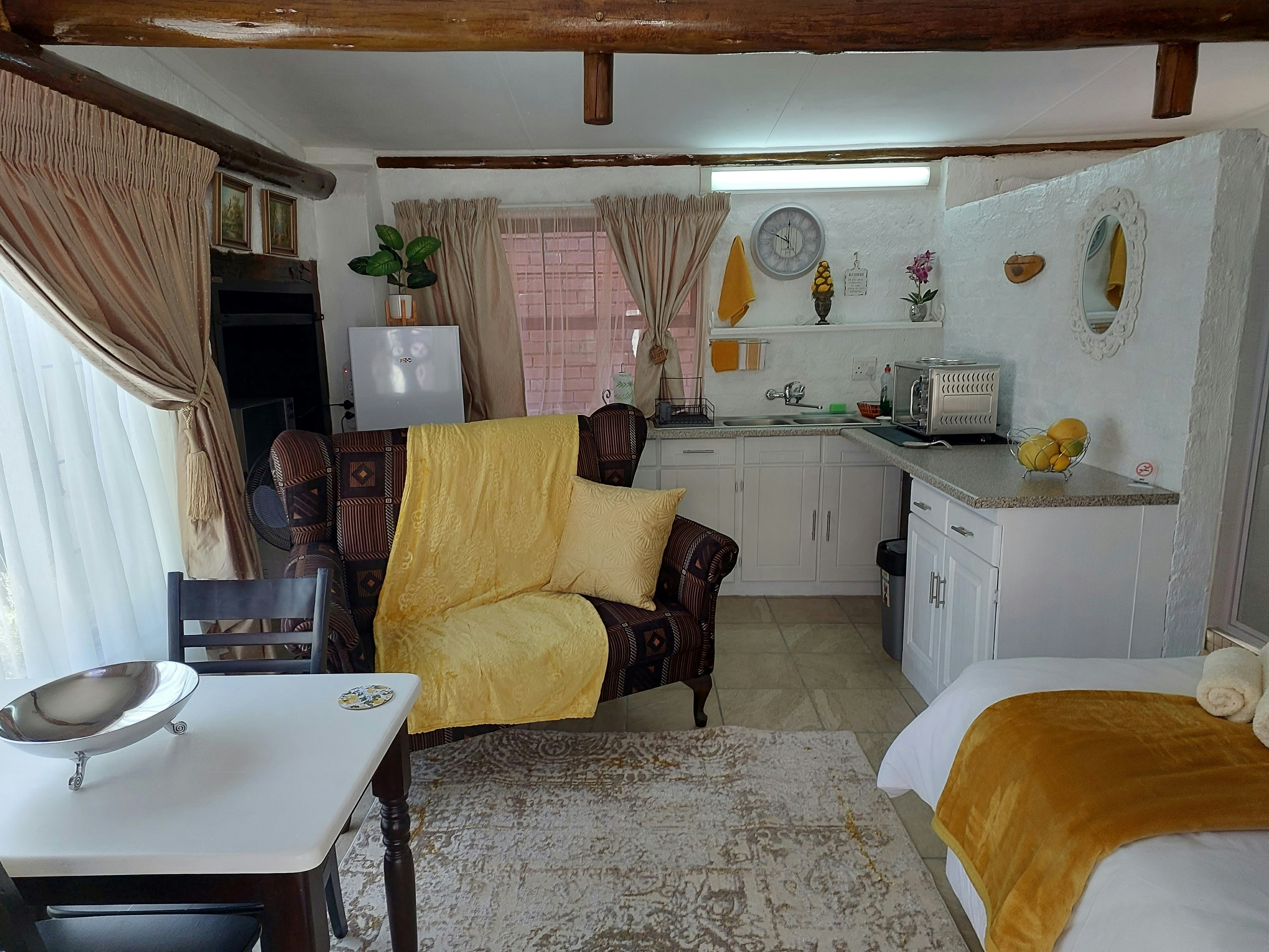 Bachelor Selfsorg Eenheid bied slaapplek vir 2 gaste en beskik oor 'n dubbelbed en 'n badkamer met 'n stort, wasbak en toilet. Skoon linne en handdoeke word voorsien, en toegang tot WiFi en volledige DStv is ingesluit. Die kombuis is volledig toegerus met breekware, mikrogolfoond, ketel, strykyster en strykplank, tweeplaatstoof met oond, yskas en 'n tweesitplekbank met 'n tafel en stoele. Braaigeriewe is op die perseel beskikbaar, en die eenheid word daagliks skoongemaak teen geen ekstra koste nie, met bykomende wasgoeddienste wat teen 'n billike tarief aangebied word.
