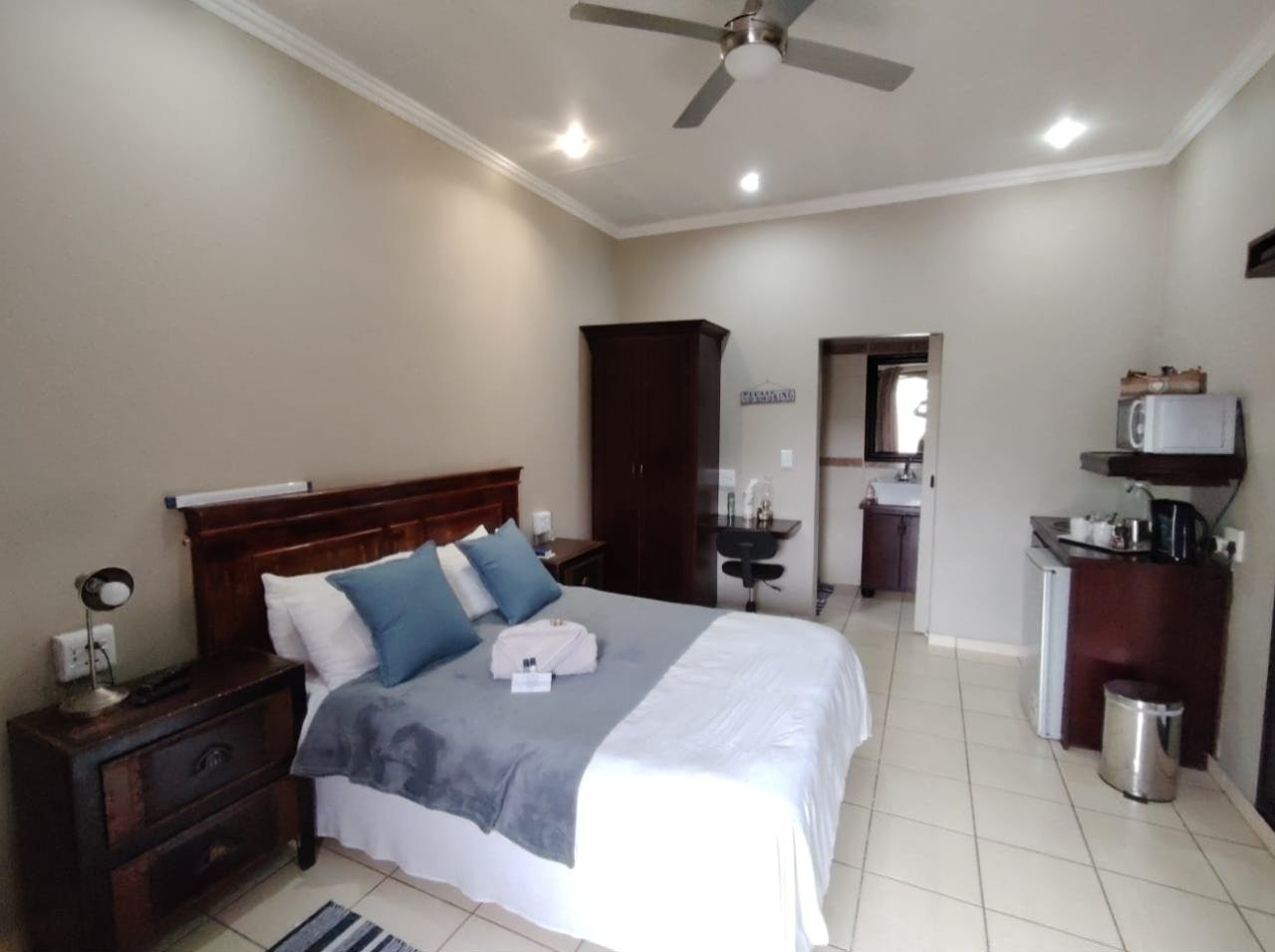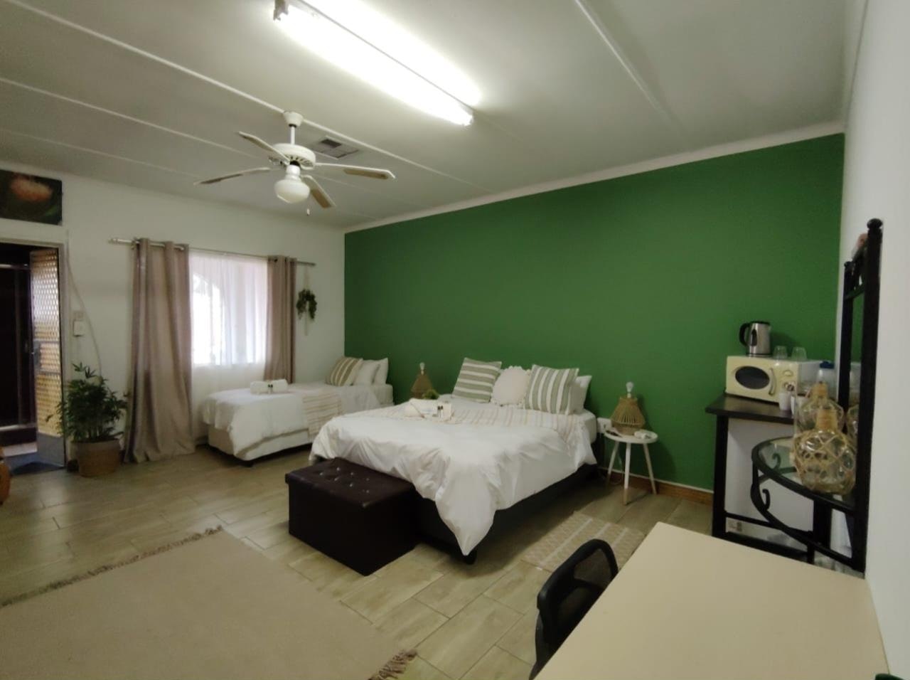Pietersielie is furnished with a double bed and 1 single bed. This room has access to a private bathroom fitted with a shower, a basin, a toilet, and free toiletries. This room contains air-conditioning, tea- and coffee-making facilities, free Wi-Fi access, and other amenities.