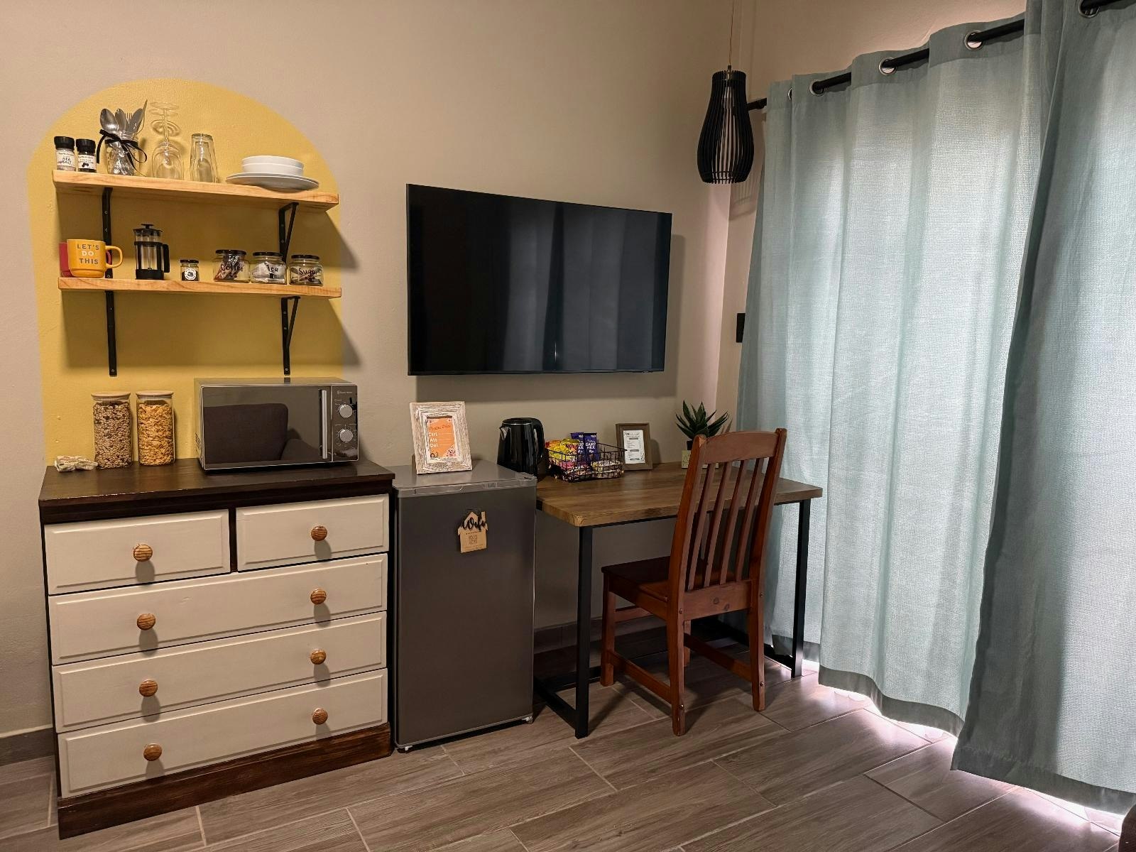 Die kombuisie is toegerus met 'n yskas-vrieskas, mikrogolfoond en tee- en koffiemaakgeriewe. 'n TV met Netflix en 'n lessenaar is in elke woonstel beskikbaar.