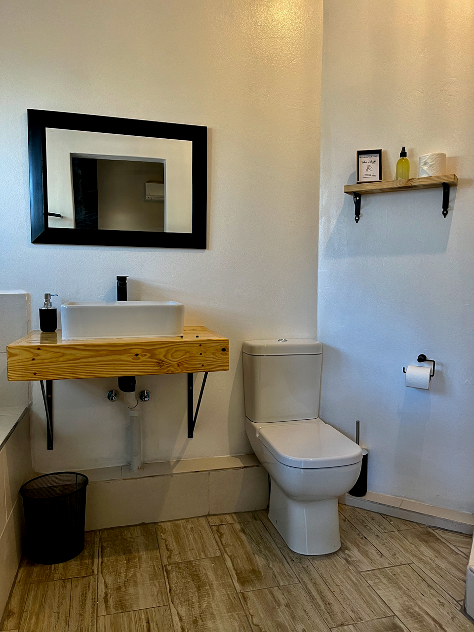 Die slaapkamerarea is ingerig met 'n koningingrootte-bed en beskik oor 'n en suite-badkamer elk, waarvan 1 toegerus is met 'n bad met 'n handstort, toilet, stort en wasbak, en die tweede woonstel met 'n stort, toilet en wasbak.