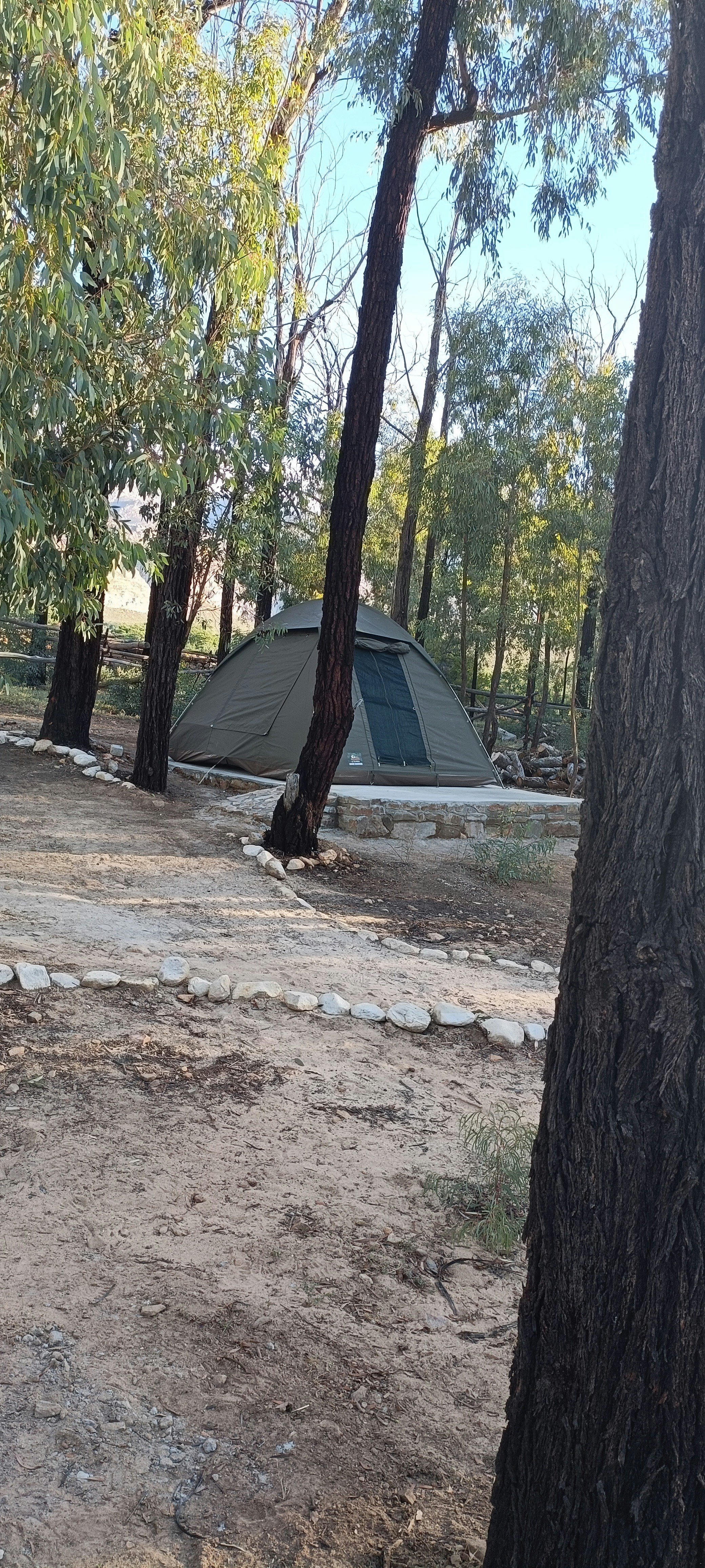 The campsites are all situated near a dam with nice grassy spots and lovely large gum trees. There is no electricity in the campsite, and warm water is generated by gas geysers. The communal ablution block has separate ladies and gents facilities. Both fitted with showers, toilets and basins.