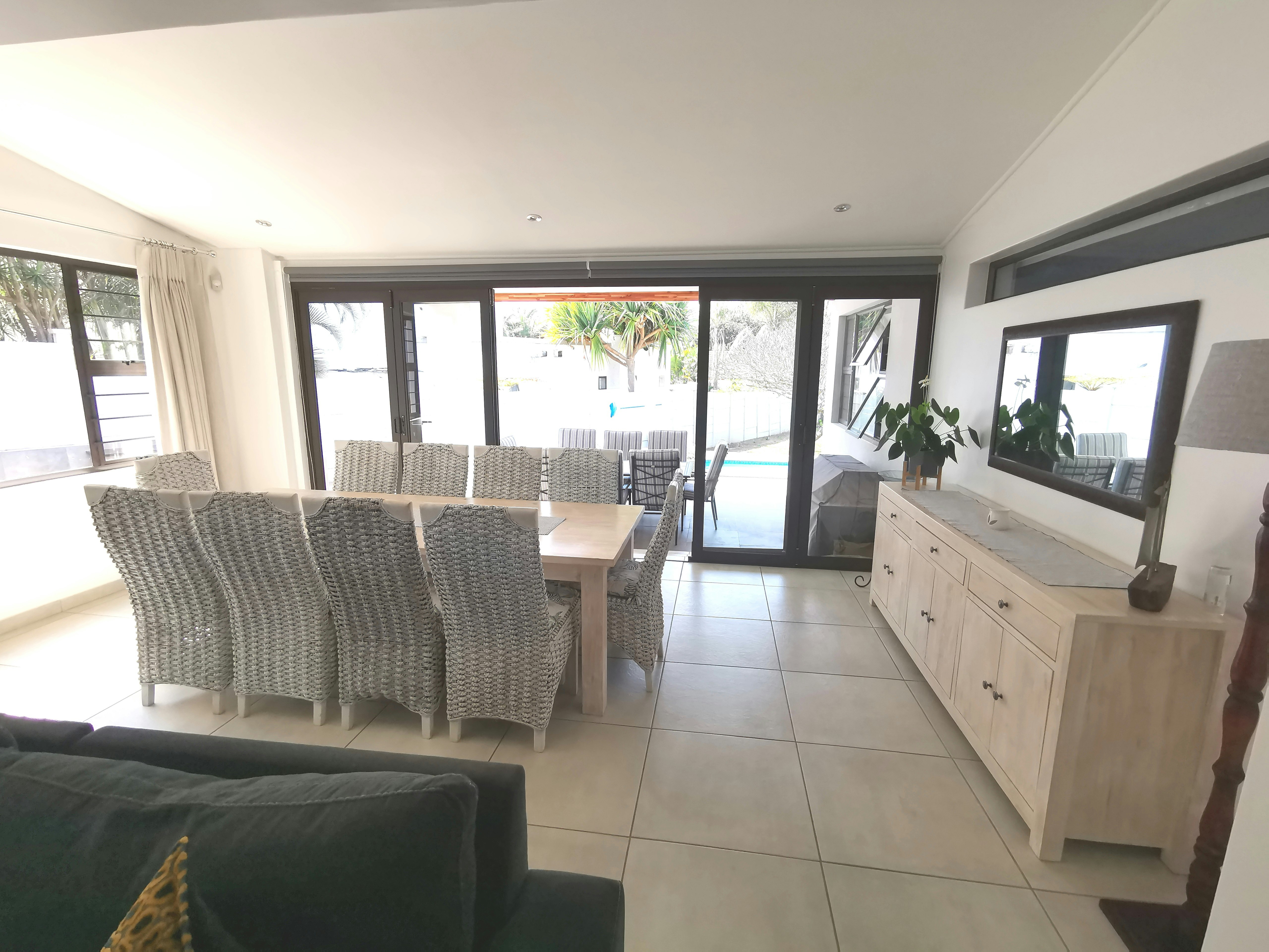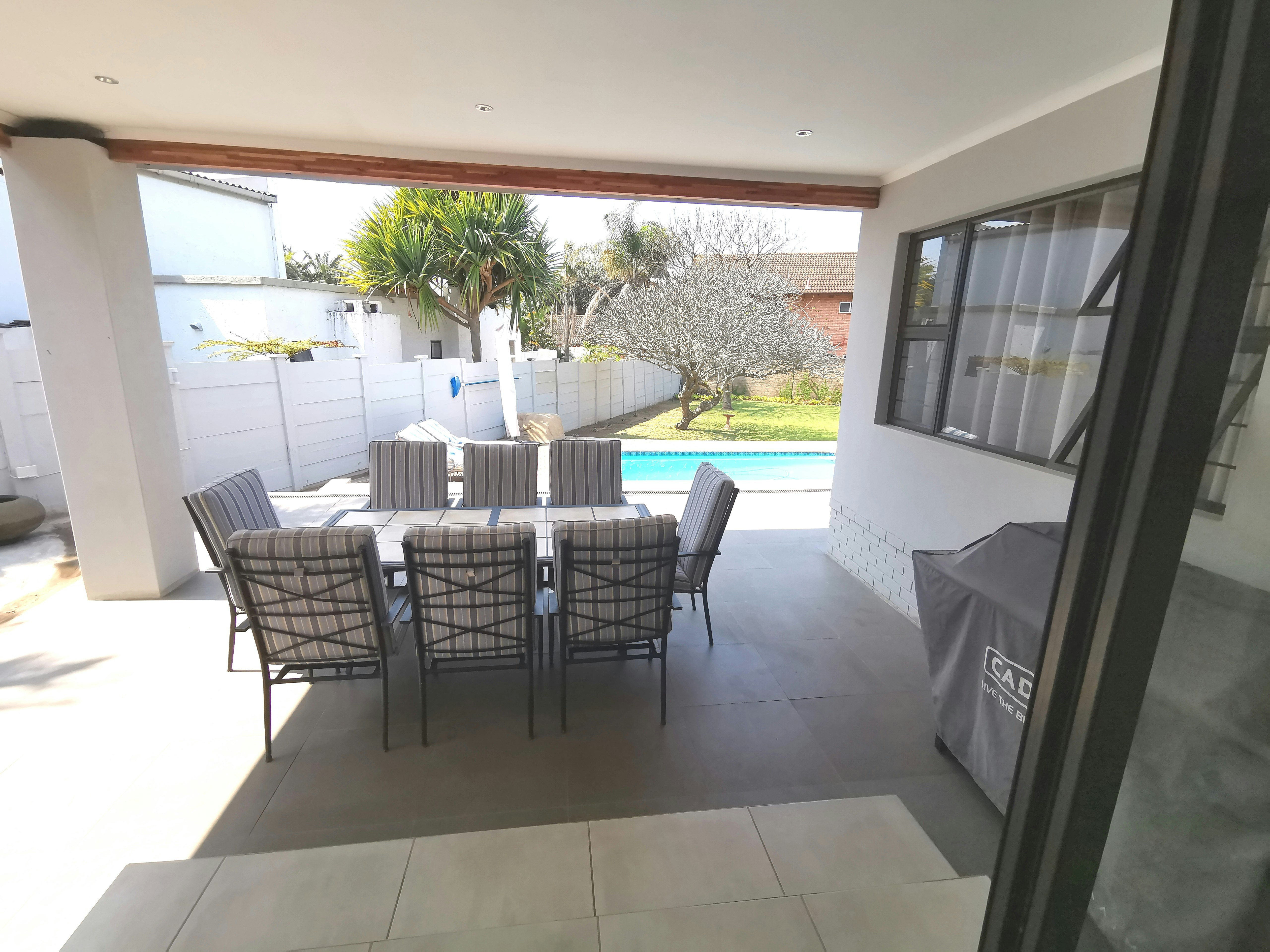 There is a large covered patio with outdoor furniture, a swimming pool with a safety cover, and an outside shower to wash off sand when guests come from the beach. There is a built-in braai and firepit, as well as a gas braai on the patio, with a pizza oven and paella grill. Alternatively a Weber braai is also available, should guests prefer to make use of it.