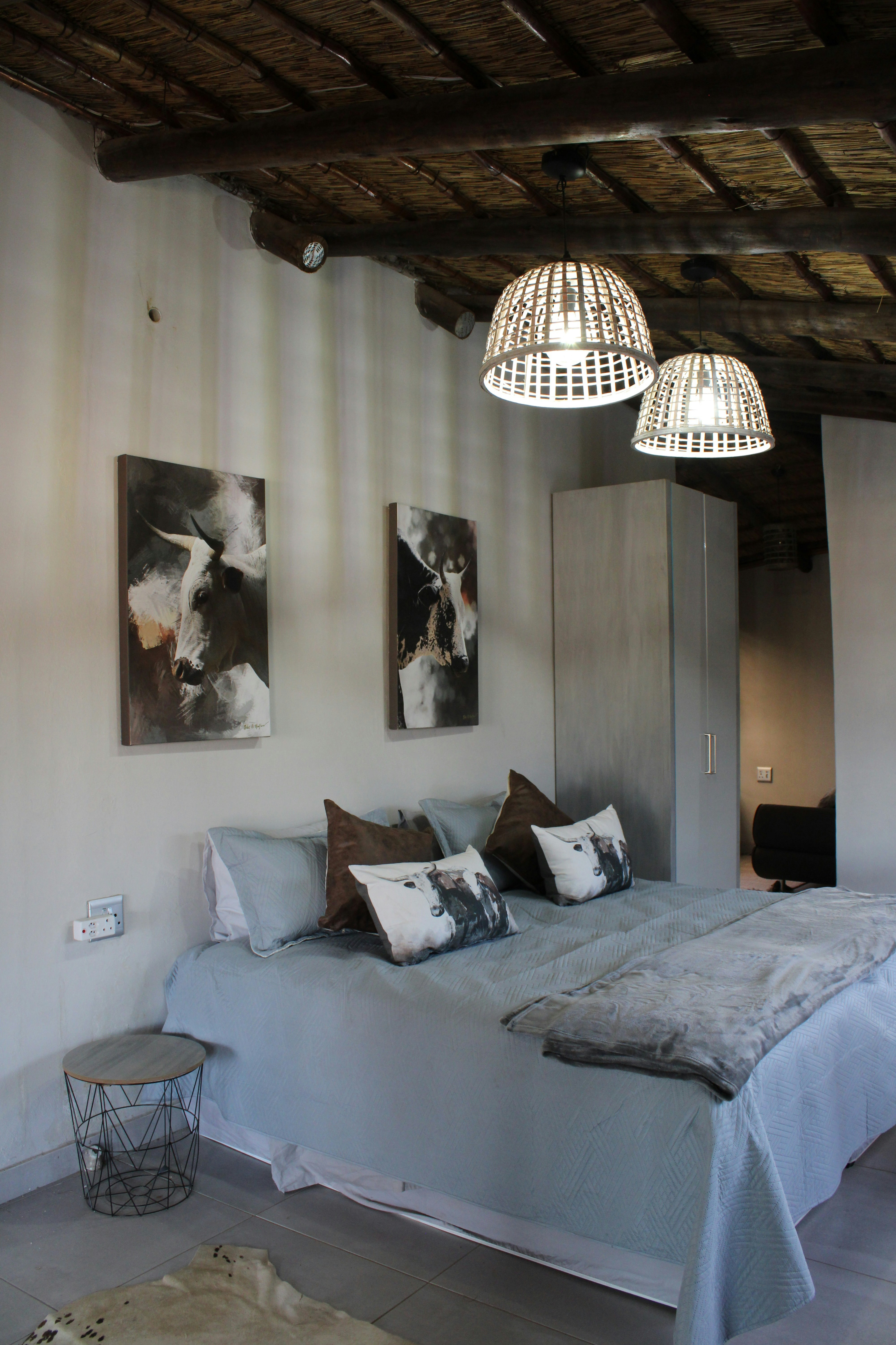 The Oryx House can sleep up to 13 people in 4 chalets, and the Baobab cottage up to 5 people in 2 chalets.