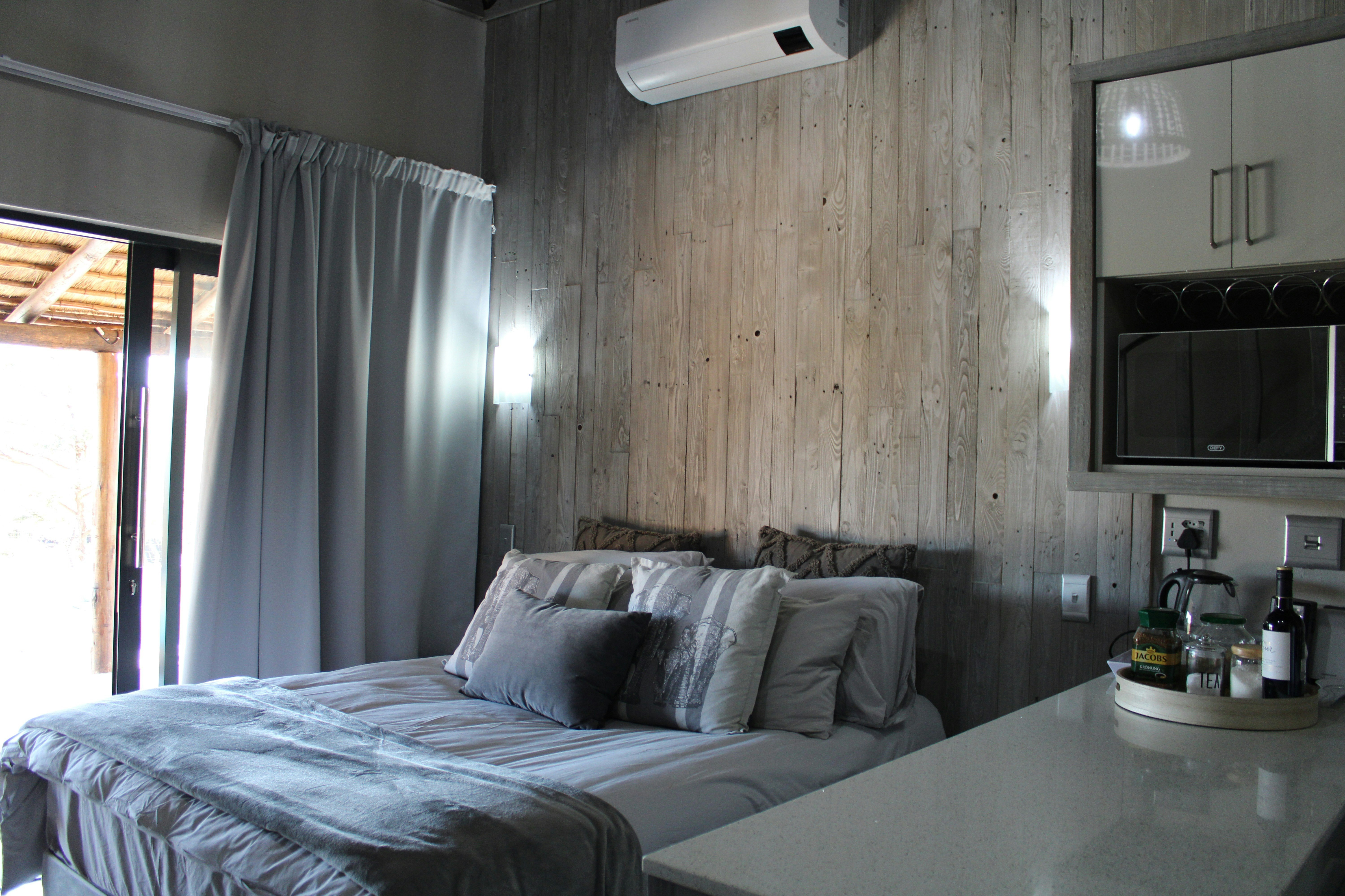 Guests can relax at the boma with a fire pit, make use of the complimentary Wi-Fi, or enjoy the beautiful views from the comfort of their balcony. They can also make use of the communal swimming pool and a Lapa that includes a built-in braai, a free-standing braai, and two picnic tables, all offering scenic views of the bushveld.