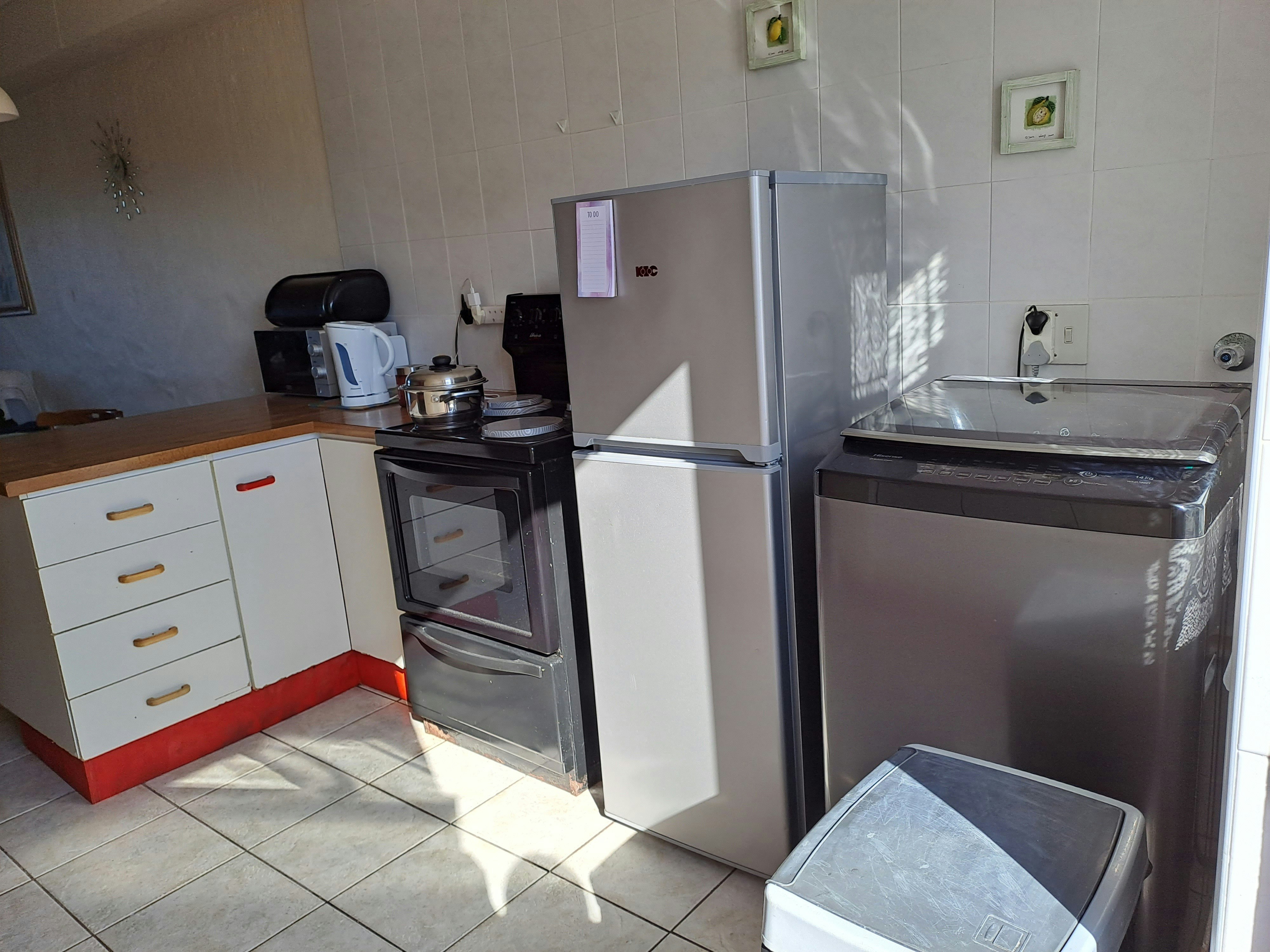 Die oopplan-leefarea het gemaklike sitplek, 'n TV met DStv, etenstafel en 'n kombuis wat met 'n yskas-vrieskas, stoof, oond, 'n mikrogolfoond en koffie- en teemaakgeriewe en wasmasjien toegerus is. Daar is braaigeriewe en veilige parkeerplek.