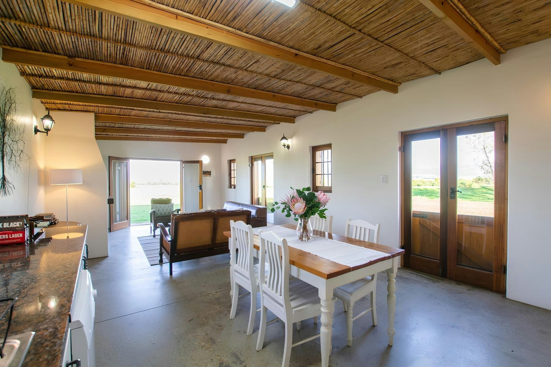 Kitchen very well equipped. Lovely bathroom. Beautiful accommodation and the kitchen is very well equipped. Massive bathroom. There was wine available for purchase. Very nice wine! It is truly a beautiful place and worth the money. The children really enjoyed the swimming pool. And we slept very comfortably. And the springbok and eland were very beautiful to watch while drinking wine on the veranda.