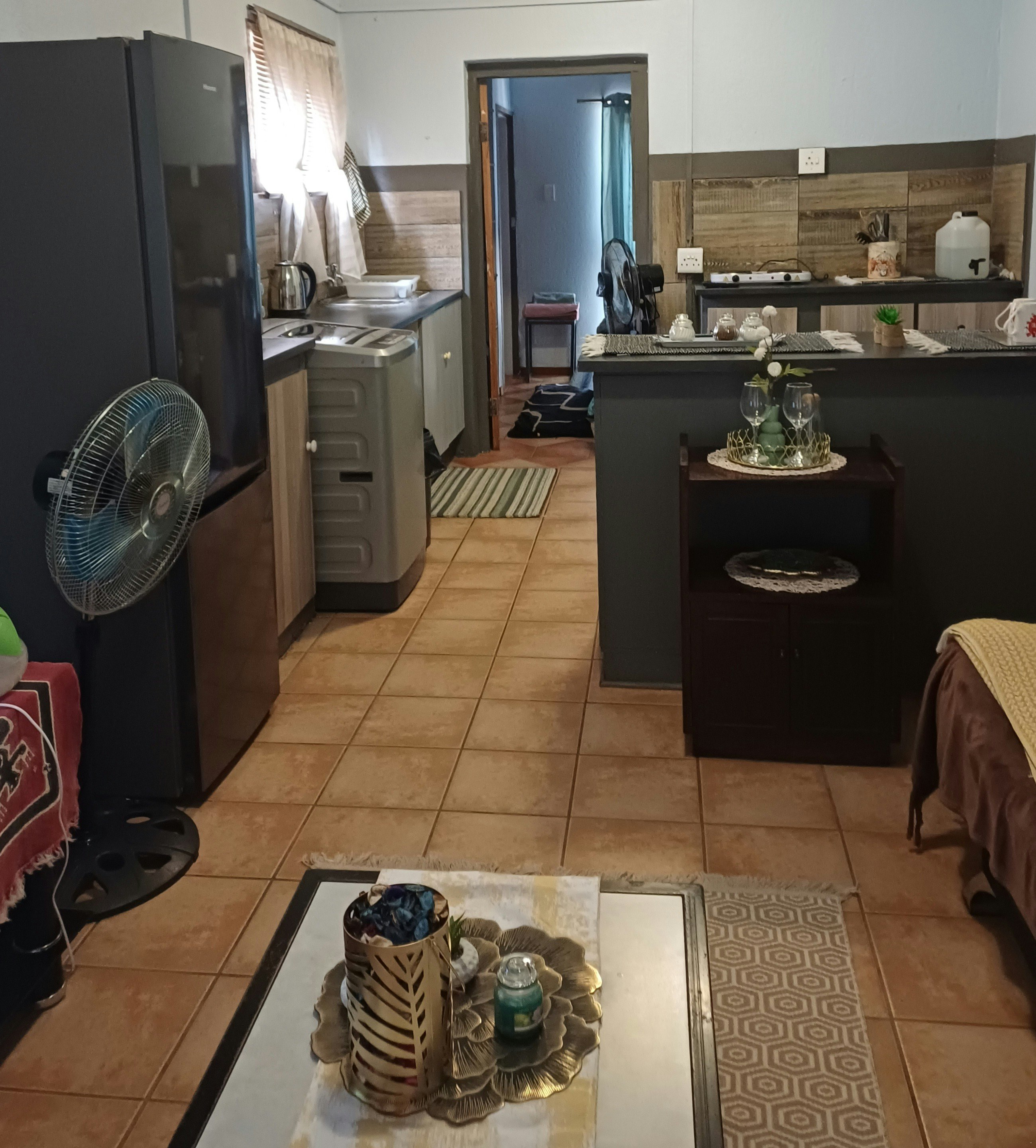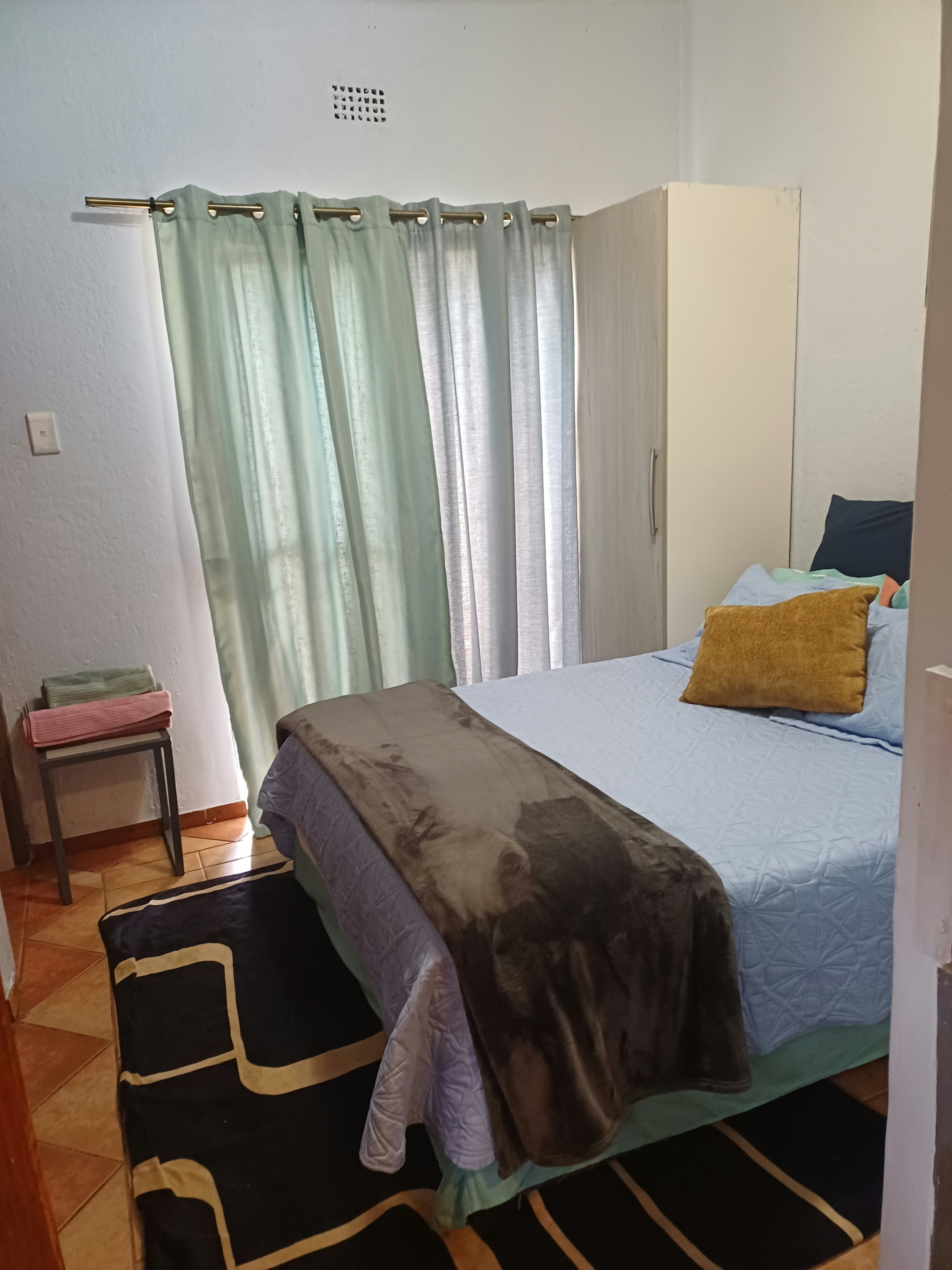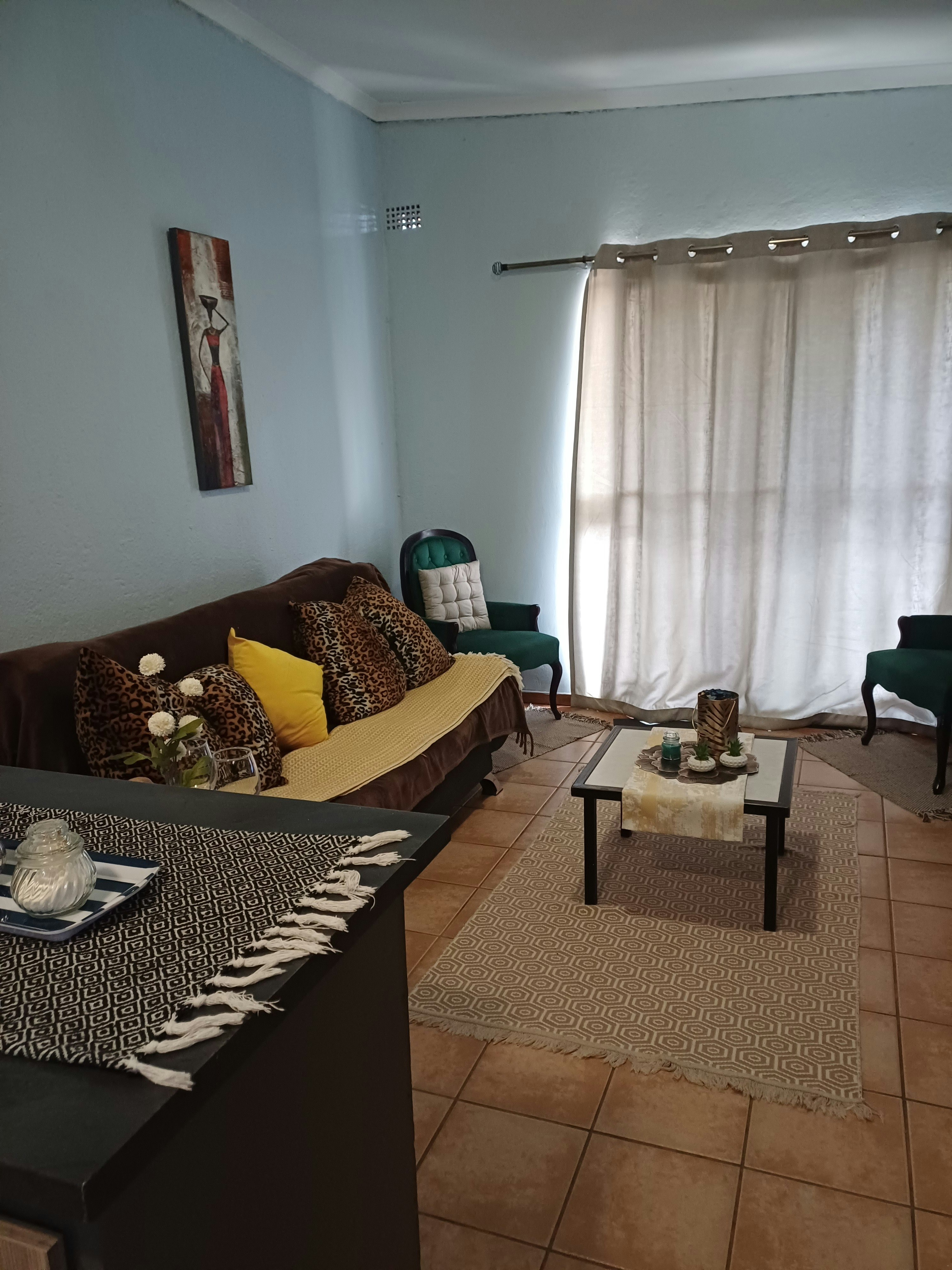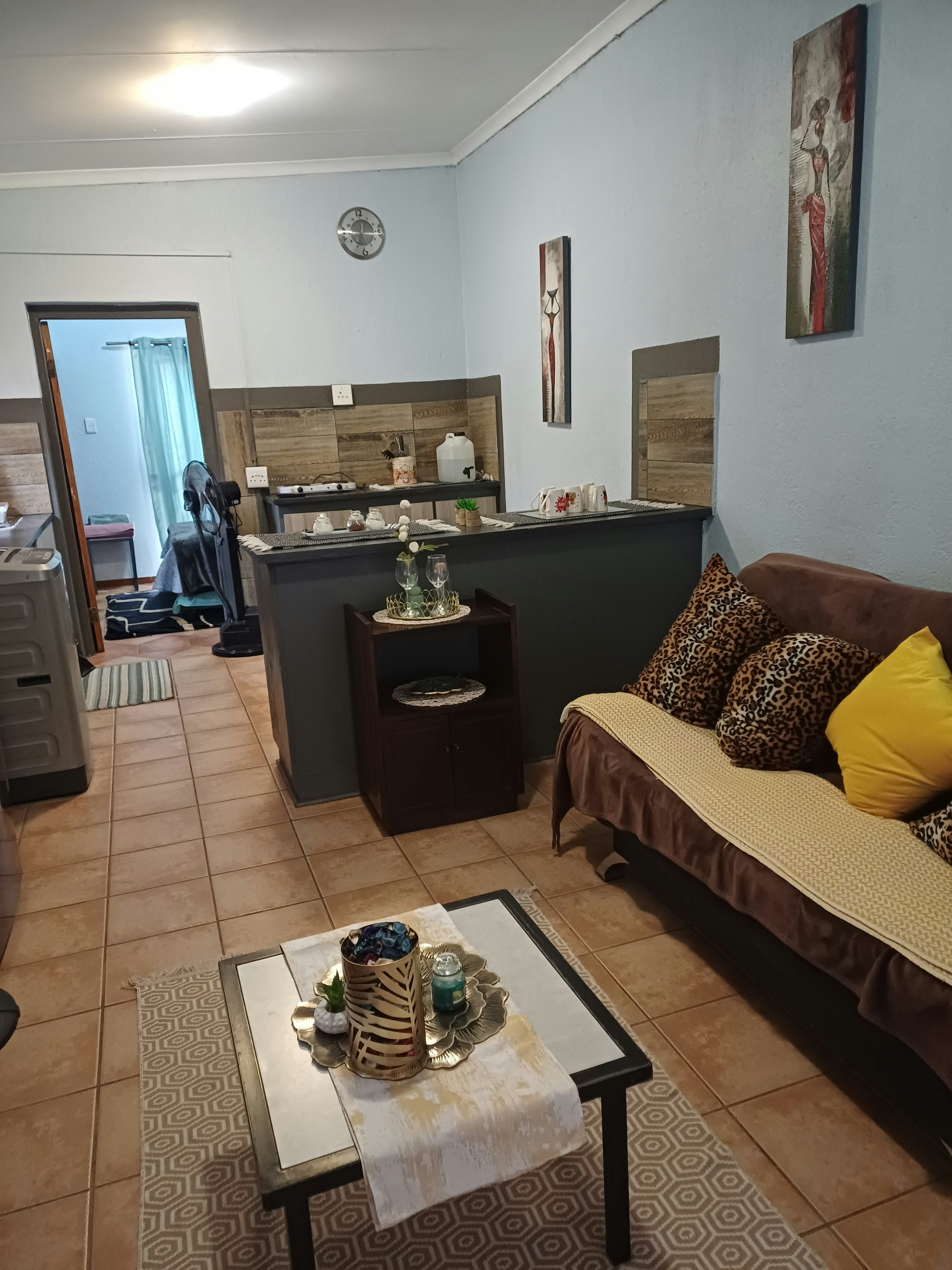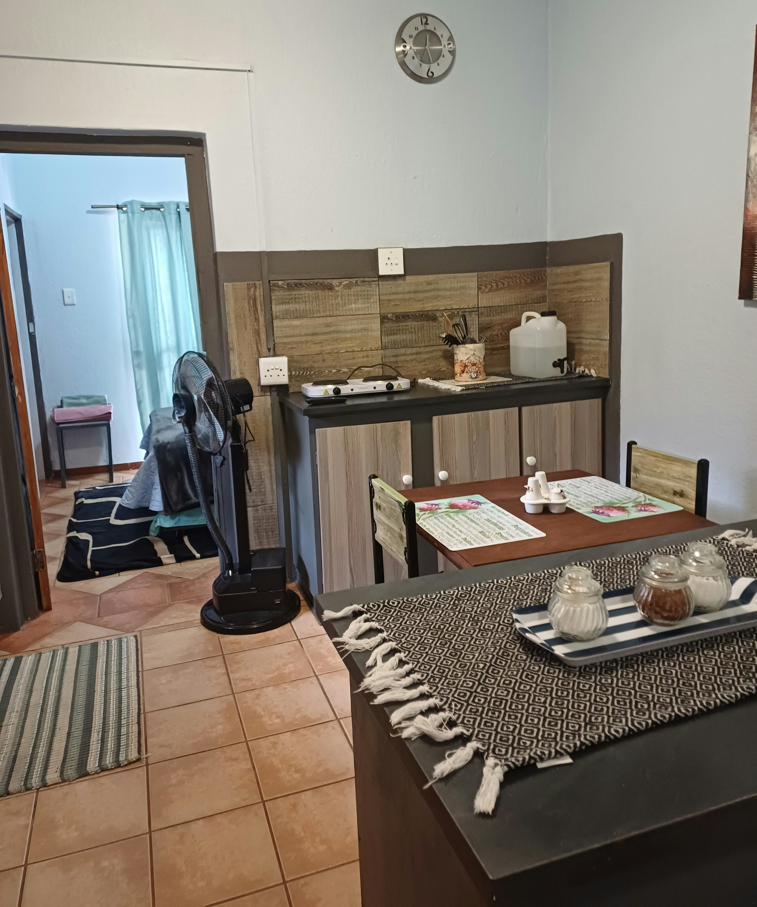The establishment offers three distinct units. Unit 1 features an open-plan lounge and kitchen, a separate bedroom with a double bed, and a bathroom with a shower. Units 2 and 3 are open-plan bachelor-style units that accommodate up to 3 guests each, furnished with a double bed and a single sleeper couch. All units include a television with OpenView channels and complimentary WiFi. The kitchenettes are equipped with basic essentials, including a fridge, microwave, two-plate stove, and all necessary crockery. Fresh linen and towels are provided for guest convenience.