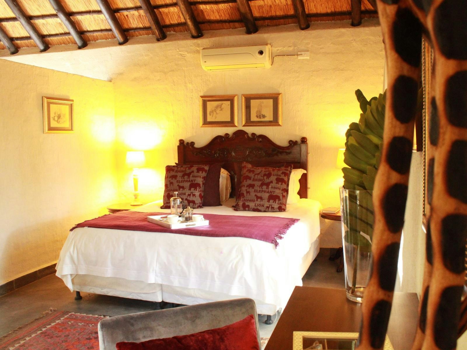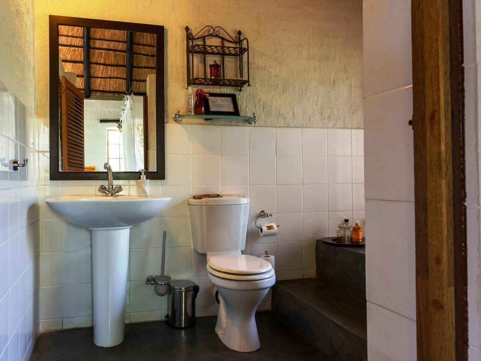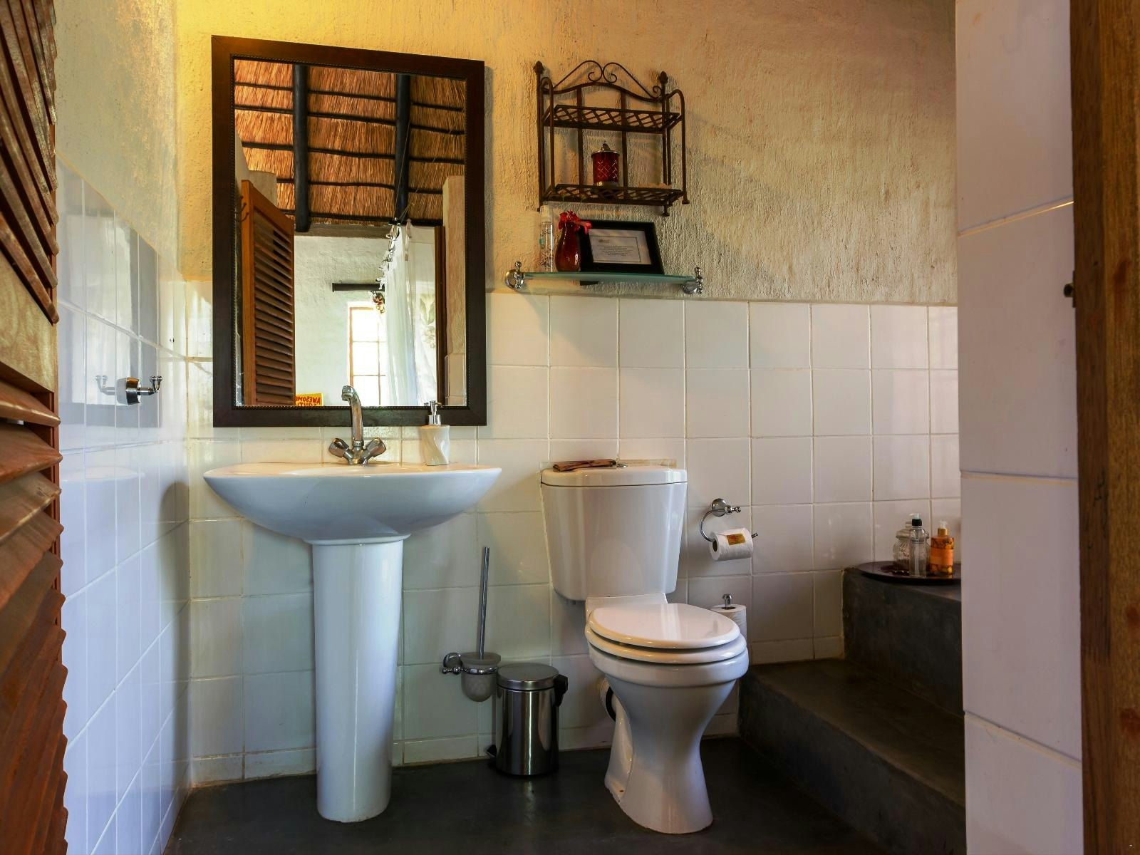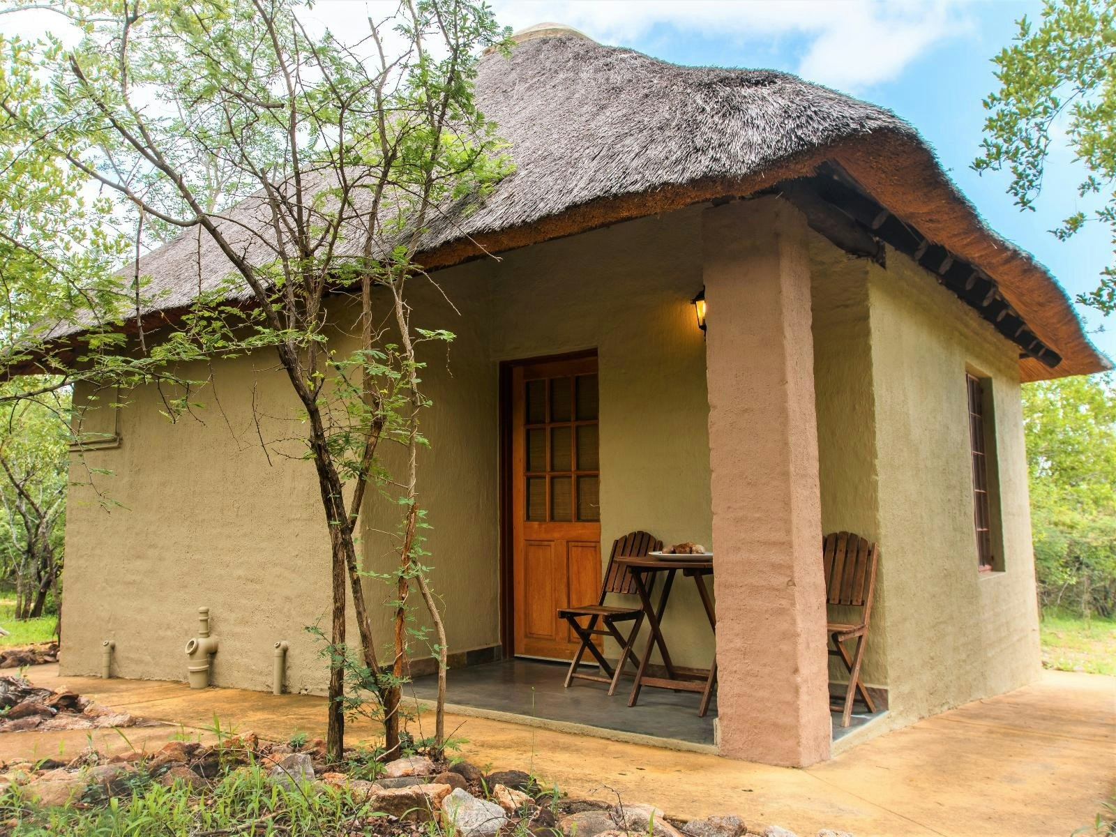 On-site facilities include a swimming pool, a lounge with a licensed bar, WiFi in shared areas, a verandah and deck for dining, and a braai boma. Breakfast and dinner are served at the suites camp, while breakfast is included for rondavel guests and dinner is available on request. Daily housekeeping is provided.