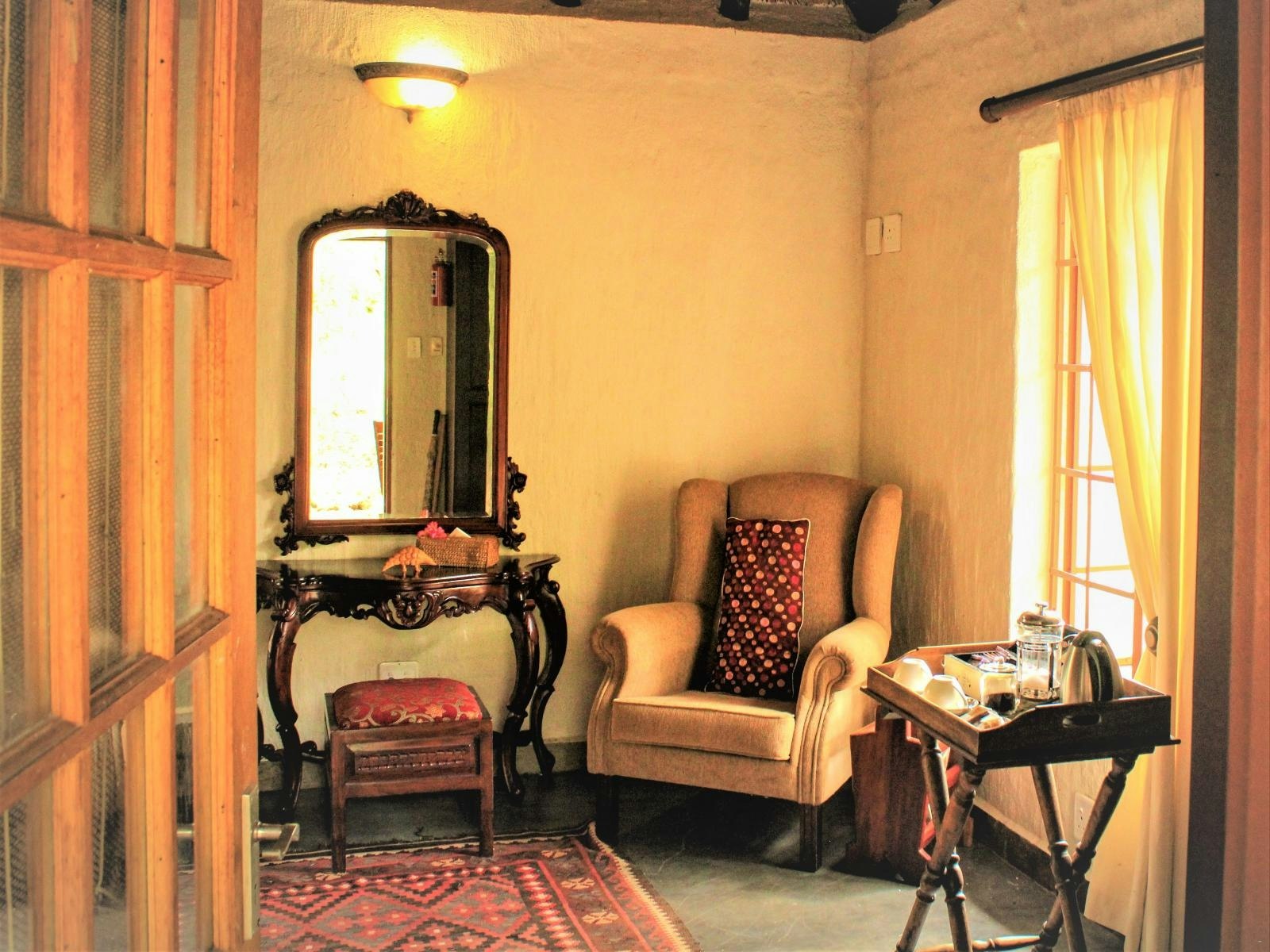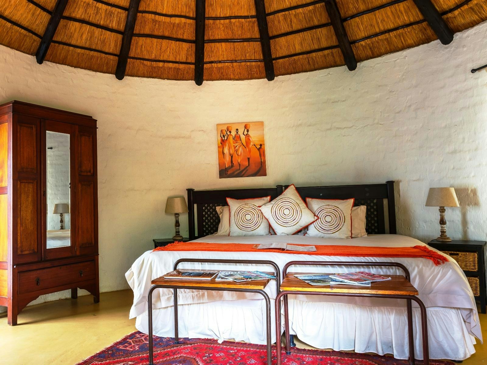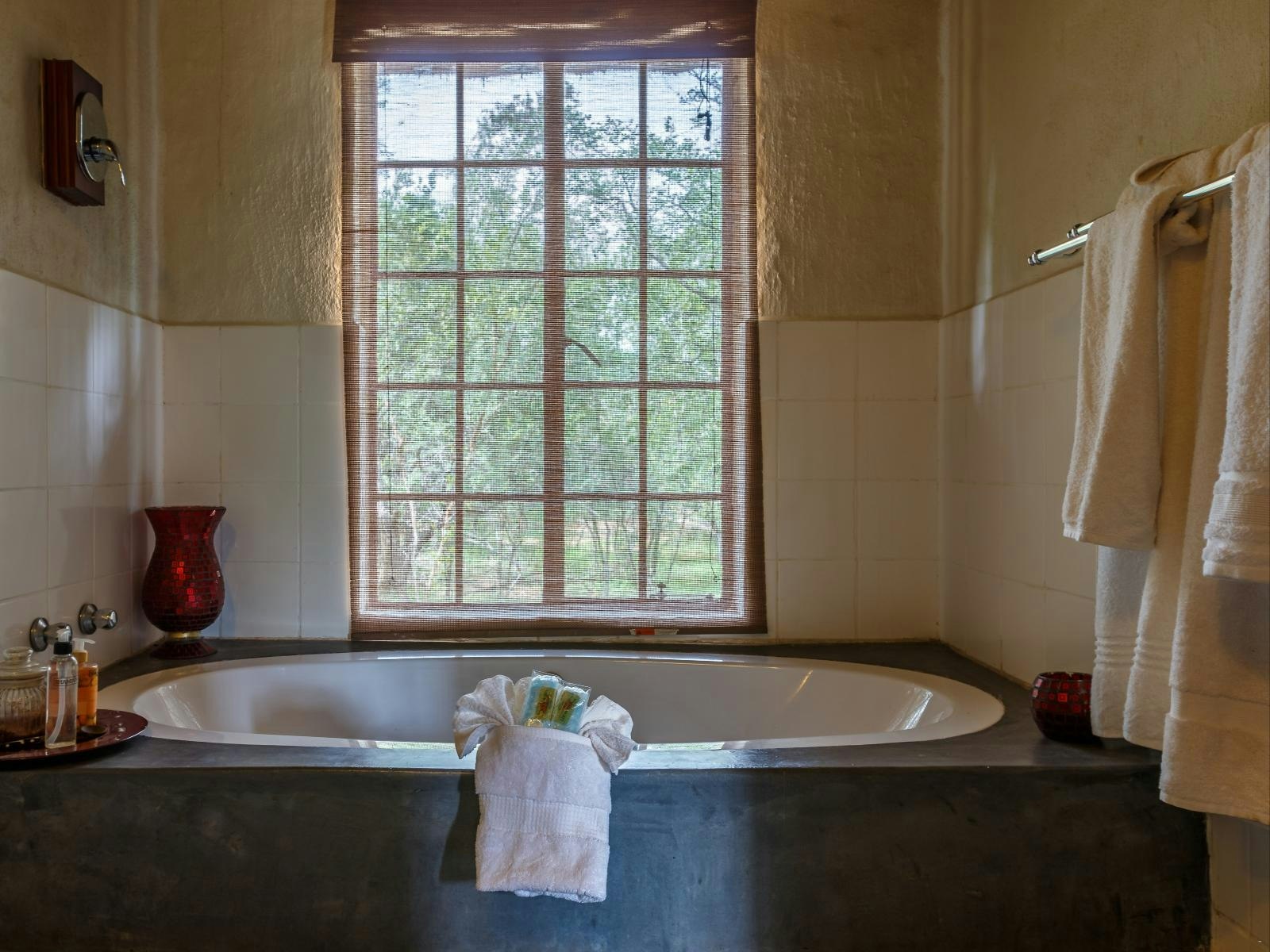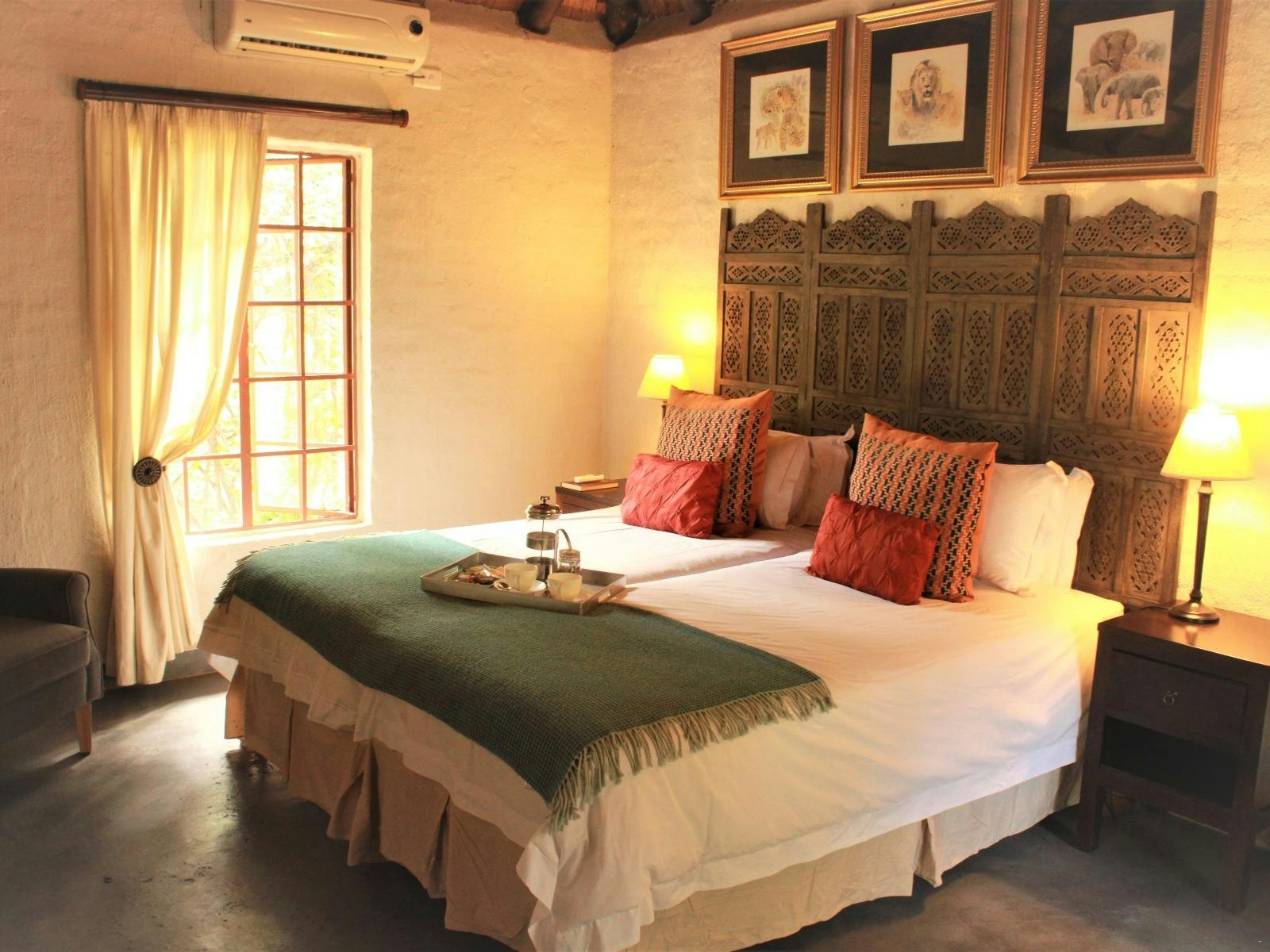 On-site facilities include a swimming pool, a lounge with a licensed bar, WiFi in shared areas, a verandah and deck for dining, and a braai boma. Breakfast and dinner are served at the suites camp, while breakfast is included for rondavel guests and dinner is available on request. Daily housekeeping is provided.