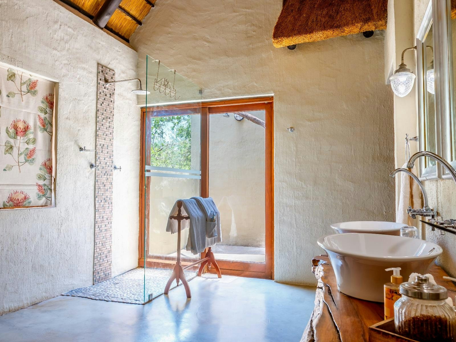Accommodation is offered in 2 camps. Shikwari Suites Camp has six luxury suites, each with a private en-suite bathroom and an outdoor shower. The suites include a mini fridge on request, tea- and coffee-making facilities, and linen and towels. Pangolin Rondavels consists of four units located approximately five hundred metres from the main lodge. Two rondavels have private bush bathrooms, and two share a separate bathroom. Each rondavel accommodates two adults and up to two children under thirteen and includes a ceiling fan, seating area, tea-and-coffee-making facilities, and a small fridge-freezer. A communal kitchenette with gas and electric hobs, ovens, and a braai area is available.