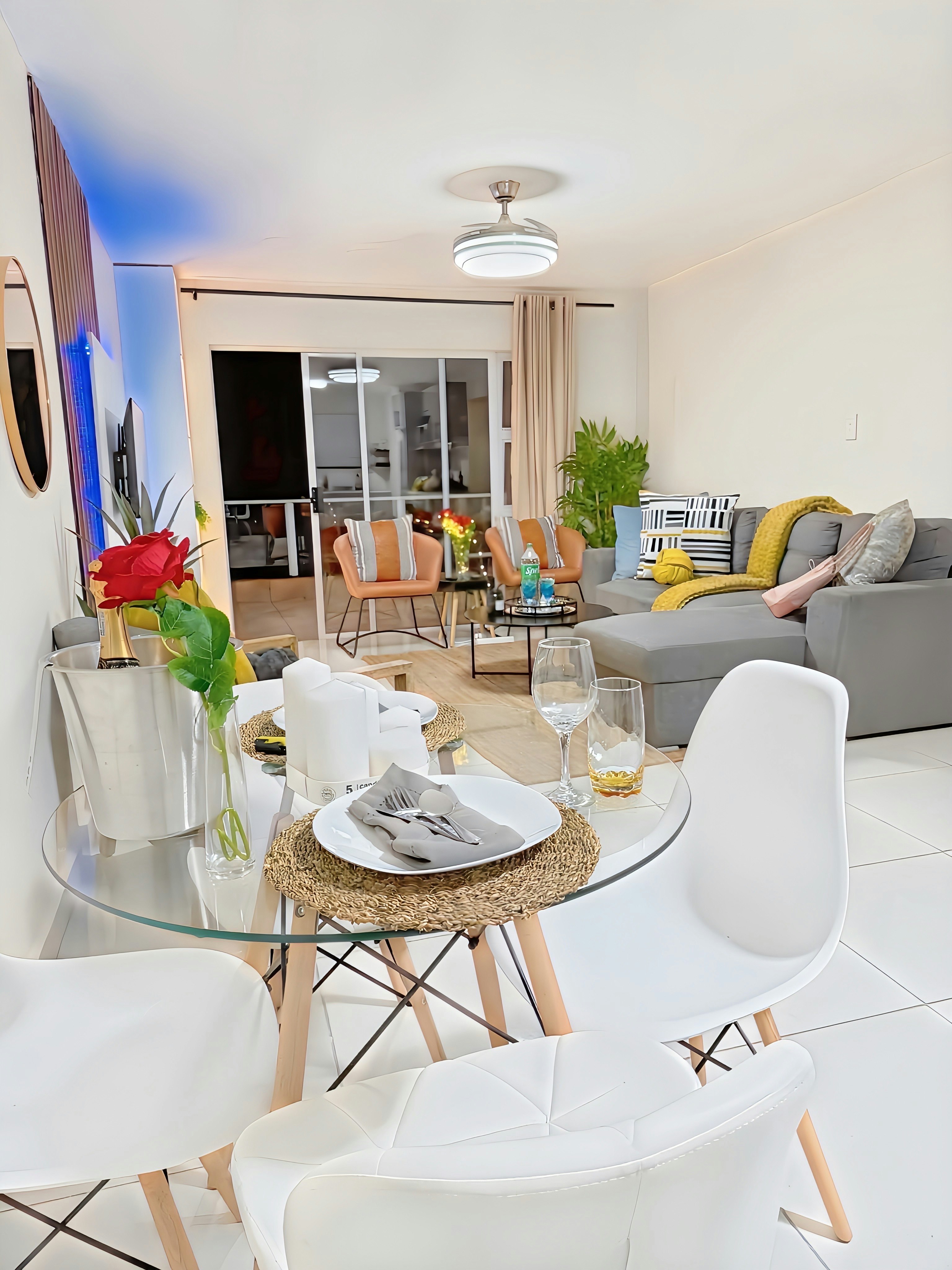 Relax on the spacious balcony with outdoor dining — perfect for enjoying meals with loved ones. Guests also have access to the complex swimming pool, ideal for a refreshing break during hot summer days.