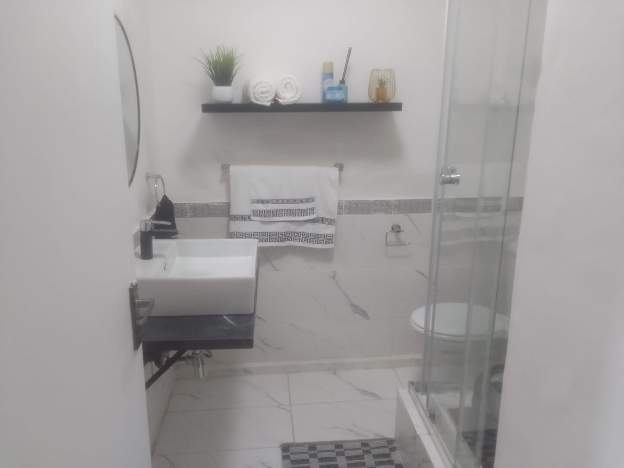 This apartment can accommodate up to 5 guests and comprises 2 bedrooms and 2 bathrooms. The main bedroom is furnished with a queen-size bed, while the second bedroom includes a bunk bed and a single bed. Guests share 2 bathrooms — one fitted with a shower, washbasin, and toilet, and the other with a bath, washbasin, and toilet.