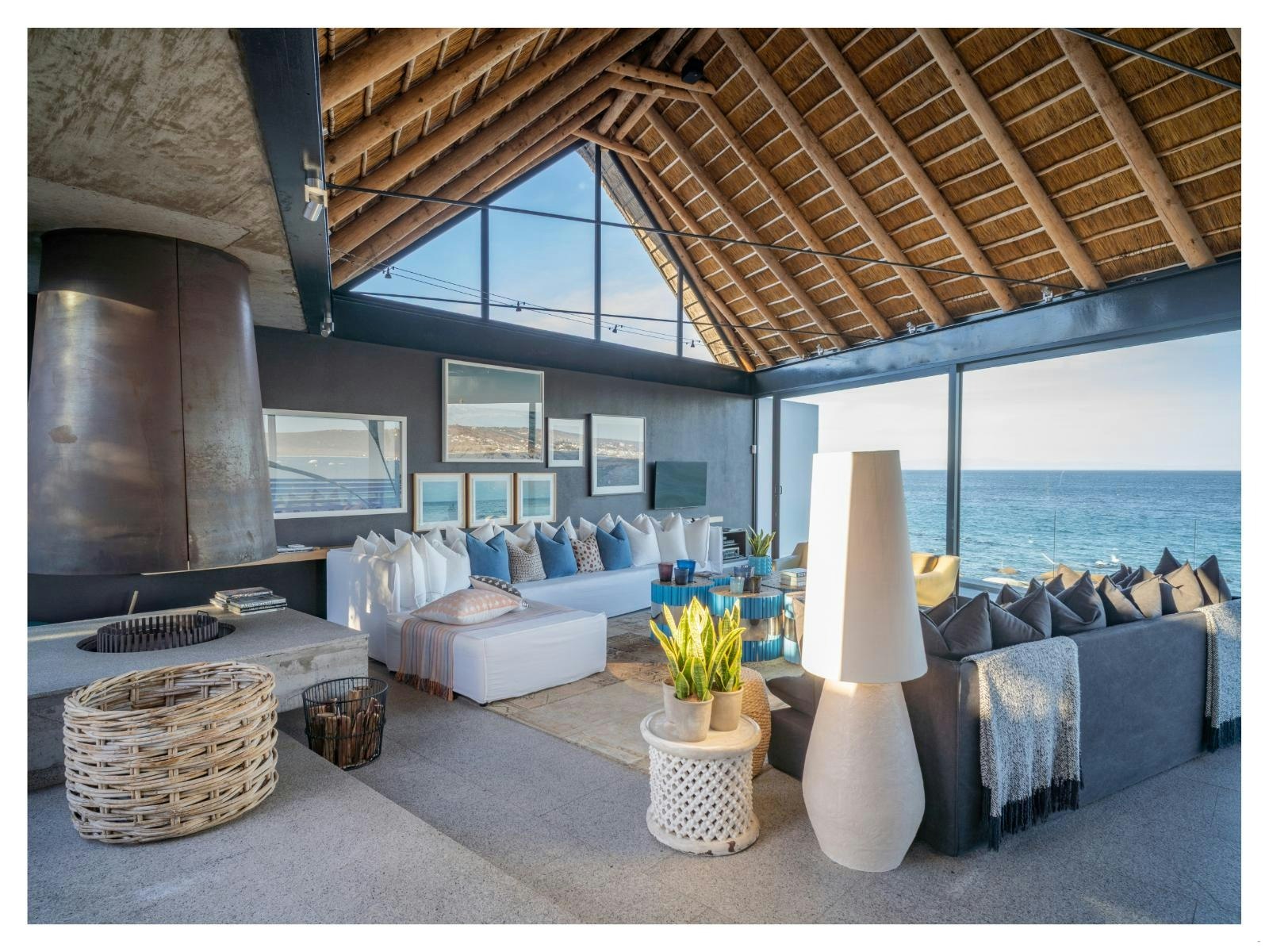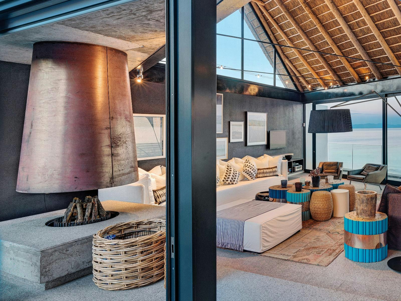 The kitchen is equipped with a fridge-freezer, stove, oven, and microwave. The living area enjoys sweeping ocean views and opens onto a secluded courtyard with a rim flow pool. For added comfort during cooler weather, underfloor heating is installed throughout the villa. Additionally, the fireplace on the upper level provides a cozy space for guests to relax. The villa also offers a TV with DStv, a DVD player, and complimentary Wi-Fi.
