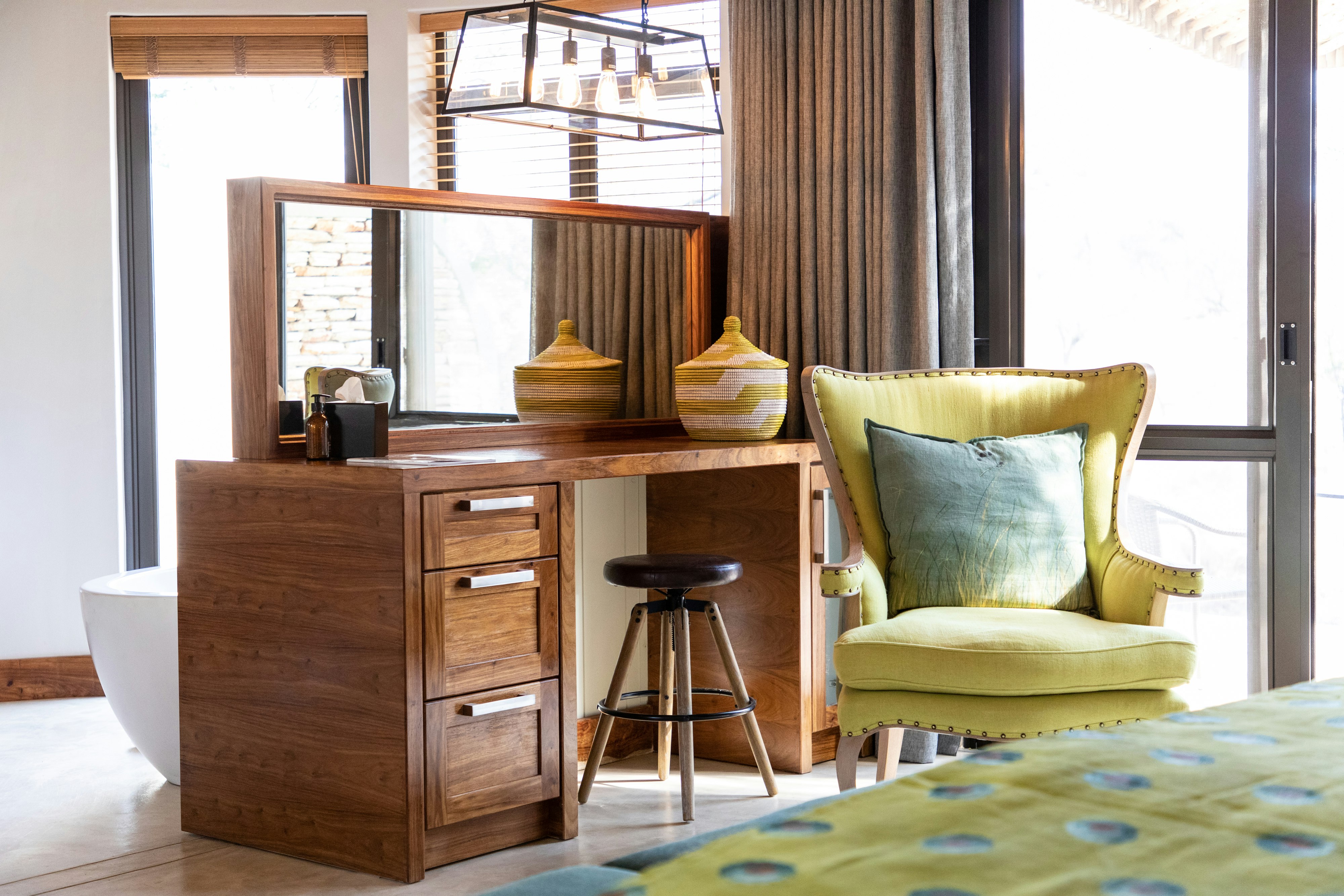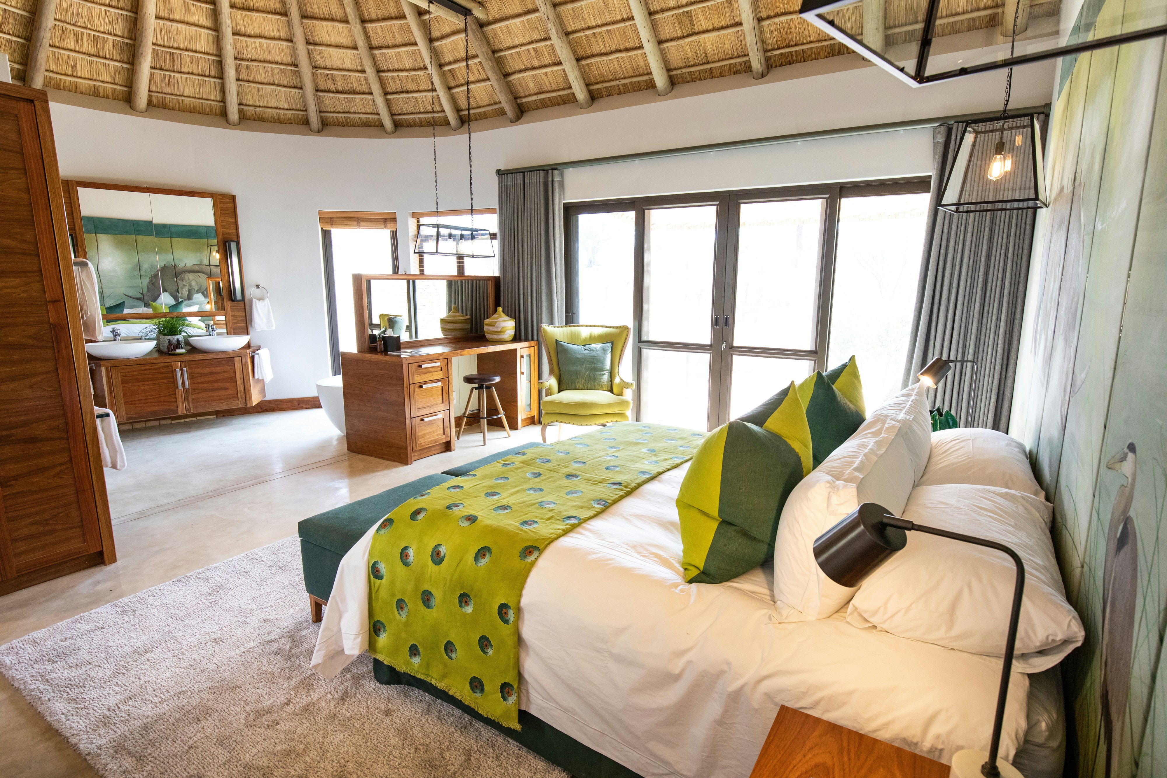 The main lodge area offers a sitting room with bar, books and board games; and overlooks the sandy river bed. The expansive convivial living spaces include an interactive kitchen, various outdoor decks, a boma and a large pool with garden views. Guests are encouraged to immerse themselves in nature and enjoy leisurely and wellness experiences such as picnics in the fever tree-dotted gardens, visits to the waterhole or a soothing massage inside the treatment rooms or on the suite decks.