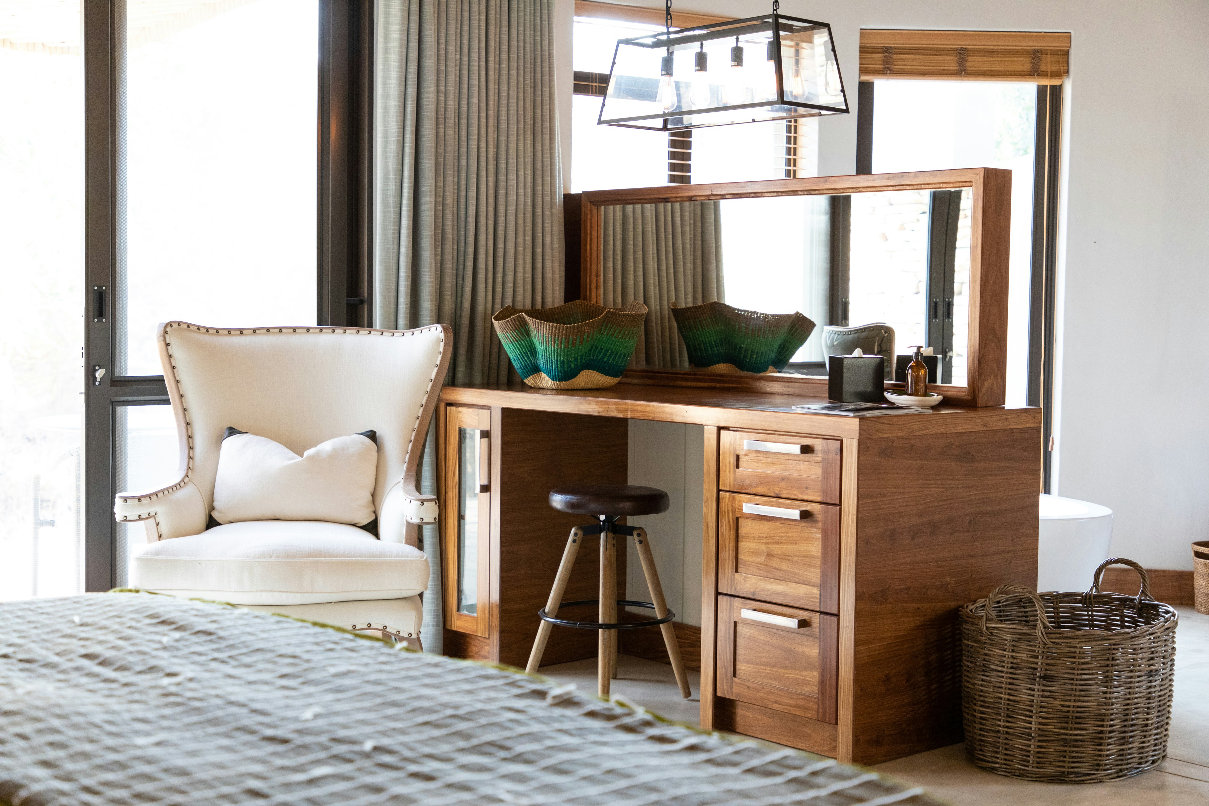 Accommodation is available in 8 luxury suites, overlooking the dry river bed, each able to accommodate 2 people. There are 2 suites which are interleading, ideal for families travelling together. Each of the 8 luxury suites contains a king-size bed, that can be converted into twin beds, along with a dressing table, minibar, air-conditioning, ceiling fan, and a full en-suite bathroom fitted with a deep soaking tub, indoor and outdoor shower, and a range of luxury amenities.